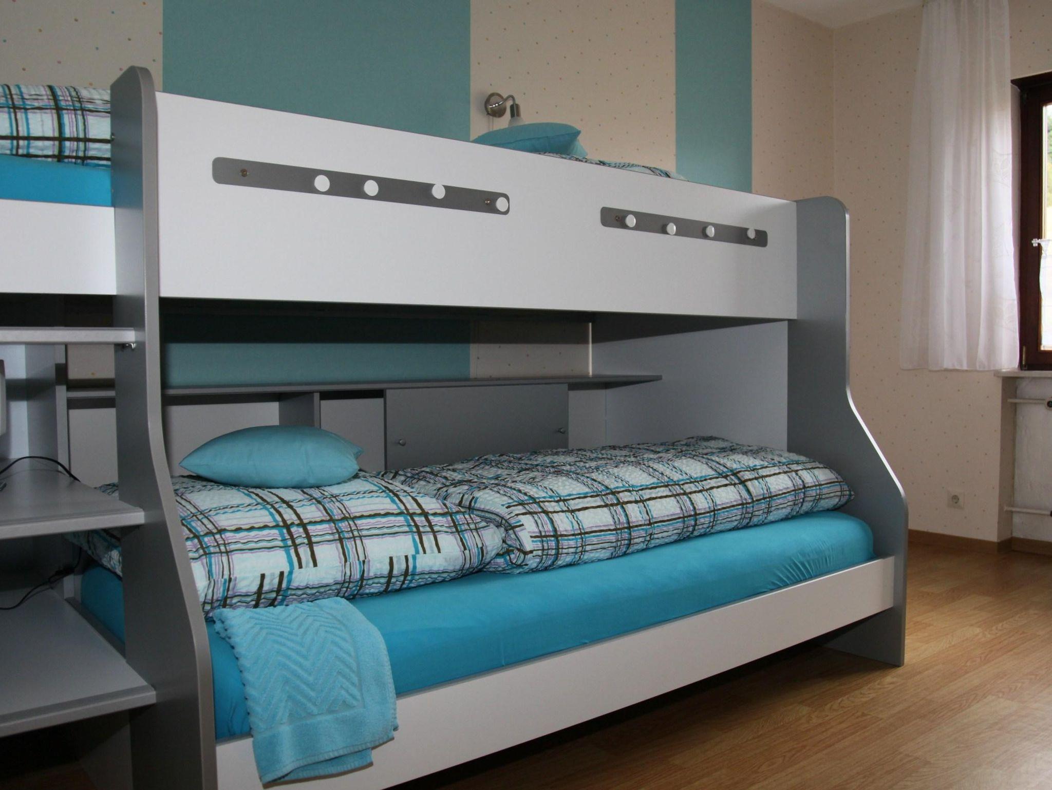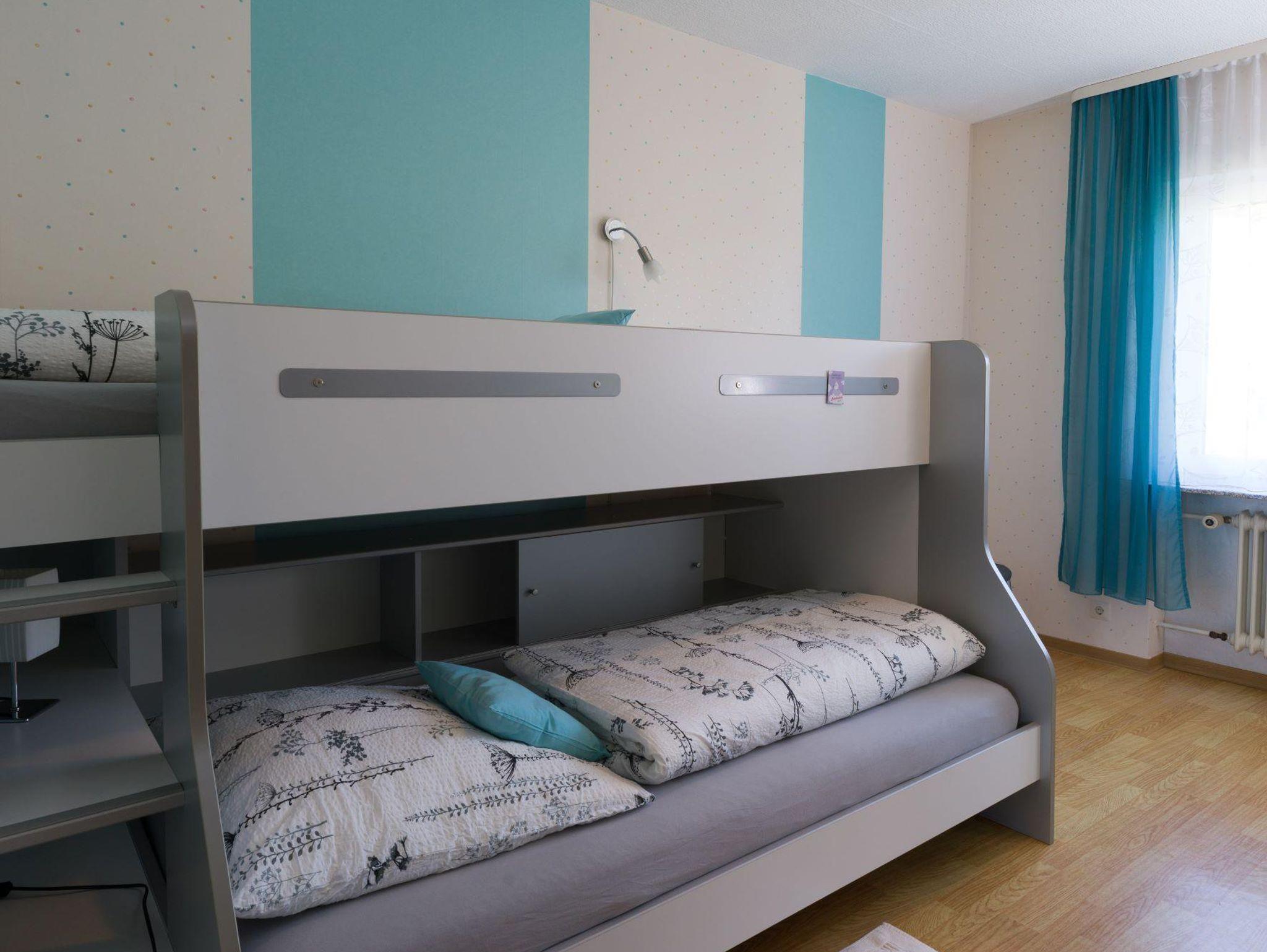 Unser Haus bietet auf einer Etage Platz für 1-6 Personen. Das gemütliche Wohnzimmer mit Flachbild-TV, DVD-Player und Zugang zum Balkon lädt zum Verweilen ein. Die komplett ausgestattete Küche mit Geschirrspüler, Kühlschrank, Herd, Backofen, Mikrowelle, Wasserkocher, Toaster und Kaffeefiltermaschine lässt keine Wünsche offen. Im Spielzimmer neben der Küche können sich die kleinen Gäste beschäftigen. Das Badezimmer ist ausgestattet mit Dusche, Badewanne, Bidet, WC und Waschbecken. Es gibt zusätzlich ein separates WC mit Waschbecken und Urinal. Das Ferienhaus verfügt über 3 Schlafzimmer mit einem Doppel, zwei Einzelbetten und einem Etagenbett. Das 2022 neu möblierte Esszimmer rundet das Gesamtbild ab. Zum Reinigen Ihrer Kleidung steht eine Waschmaschine im Keller gegen Gebühr zur Verfügung. Ein kleiner Gefrierschrank steht ebenfalls im Keller für Sie zur Nutzung bereit. Vor allem im Sommer können Sie entspannte Abende am Bostalsee oder Grillabende in unserem Garten verbringen. Bitte beachten Sie, dass keine Haustiere erlaubt sind und das Rauchen im Haus, Wohnung oder auf dem Balkon untersagt ist. Den Parkplatz vor dem Haus und WLAN können Sie kostenfrei nutzen. Sollten Sie mit Fahrrad oder Motorrad anreisen bieten wir Ihnen eine Garage zum sicheren Abstellen dieser Fahrzeuge an.