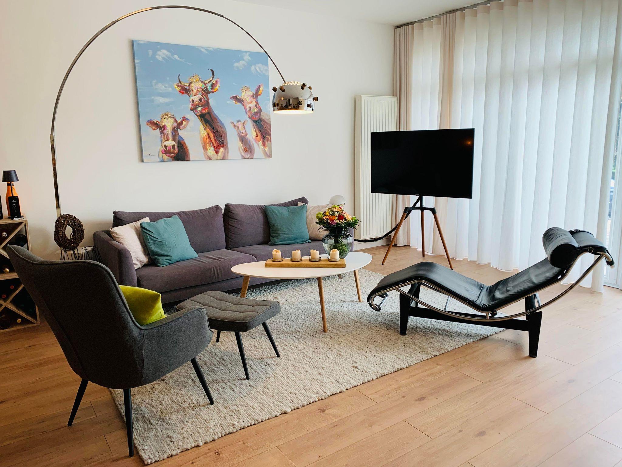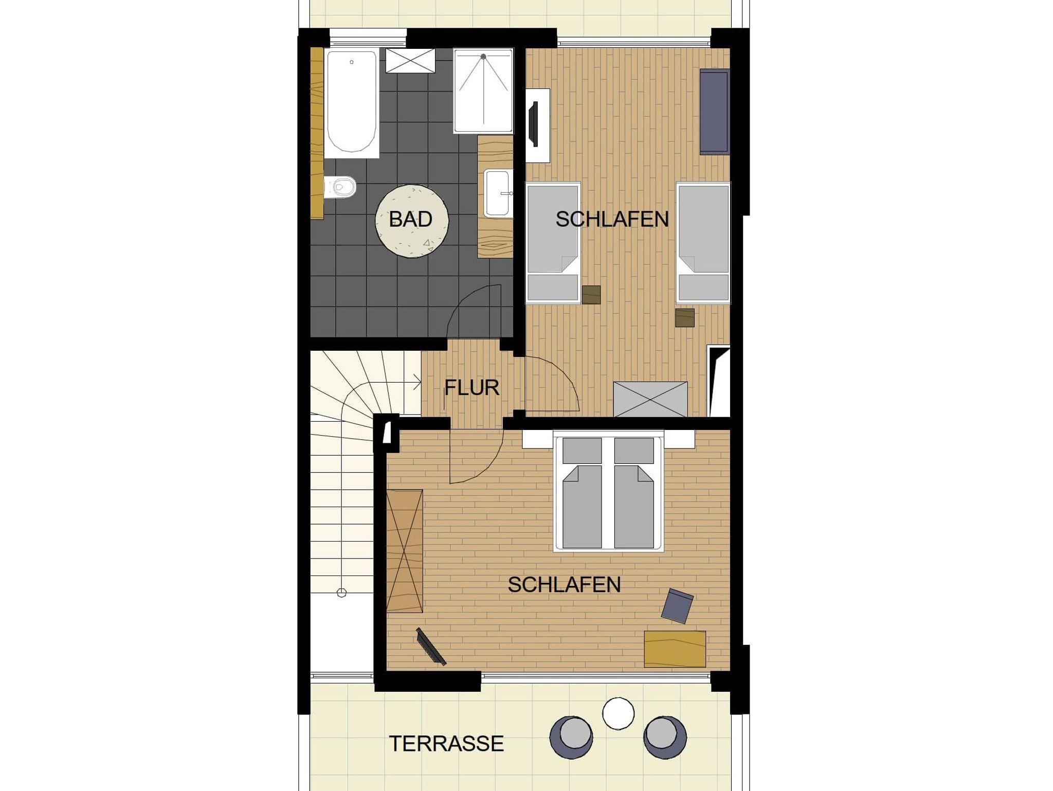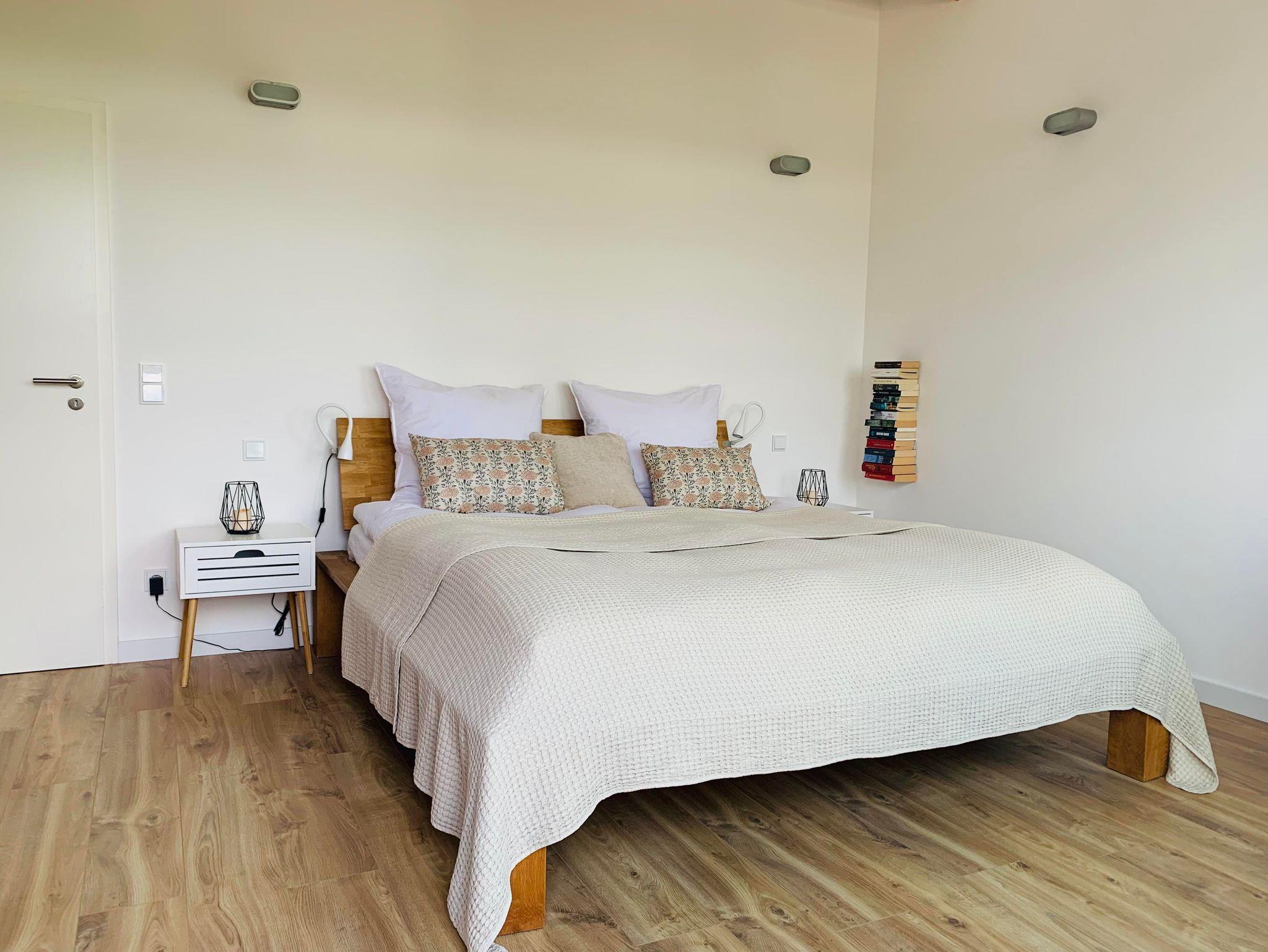 Unser Ferienhaus mit 130 m² Wohnfläche bietet Platz für 1-6 Personen. Das gemütliche Wohnzimmer mit Flachbild-TV lädt zum Verweilen ein. Die komplett ausgestattete Küche u.a. mit Geschirrspüler, Kühl-Gefrierkombination, Elektroherd und Kaffeevollautomat lässt keine Wünsche offen. Das Ferienhaus verfügt über 3 Schlafzimmer mit Doppel- und Einzelbetten. Im Erdgeschoss befindet sich ein Badezimmer mit Dusche/WC; im Obergeschoss steht ein geräumiges Badezimmer mit Dusche/WC/Badewanne/Sauna zur Verfügung. Bitte beachten Sie, dass Haustiere nur auf Nachfrage erlaubt sind.