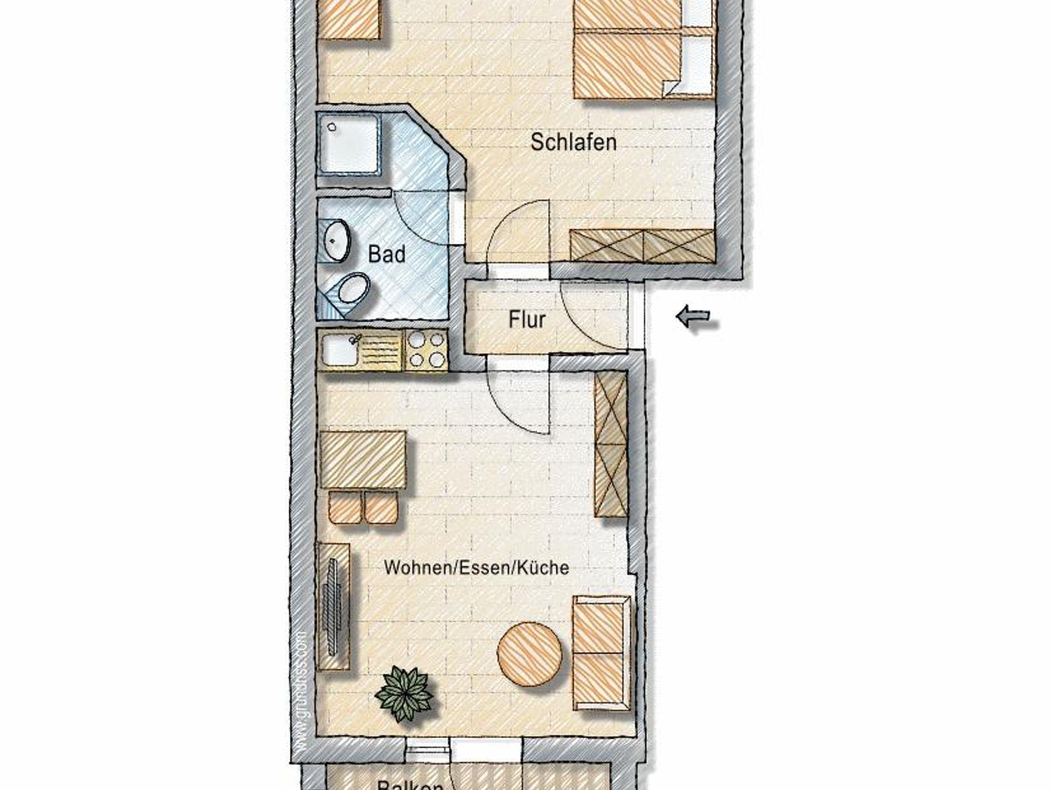 Perfekter Wohnraum für bis zu 4 Personen. Das Schlafzimmer verfügt über ein Doppelbett, sowie über ein Etagenbett mit Rutschbahn. Der großzügige Wohnraum bietet neben einer vollausgestatteten Küche, einer großen Couch und Sessel, auch eine separate Spielecke für Kinder. Der komfortable Balkon, sowie das durch zwei Türen vom Wohnraum getrennte Schlafzimmer mit Gartenblick sorgen dafür, dass Familien mit Kindern sich hier besonders wohlfühlen.