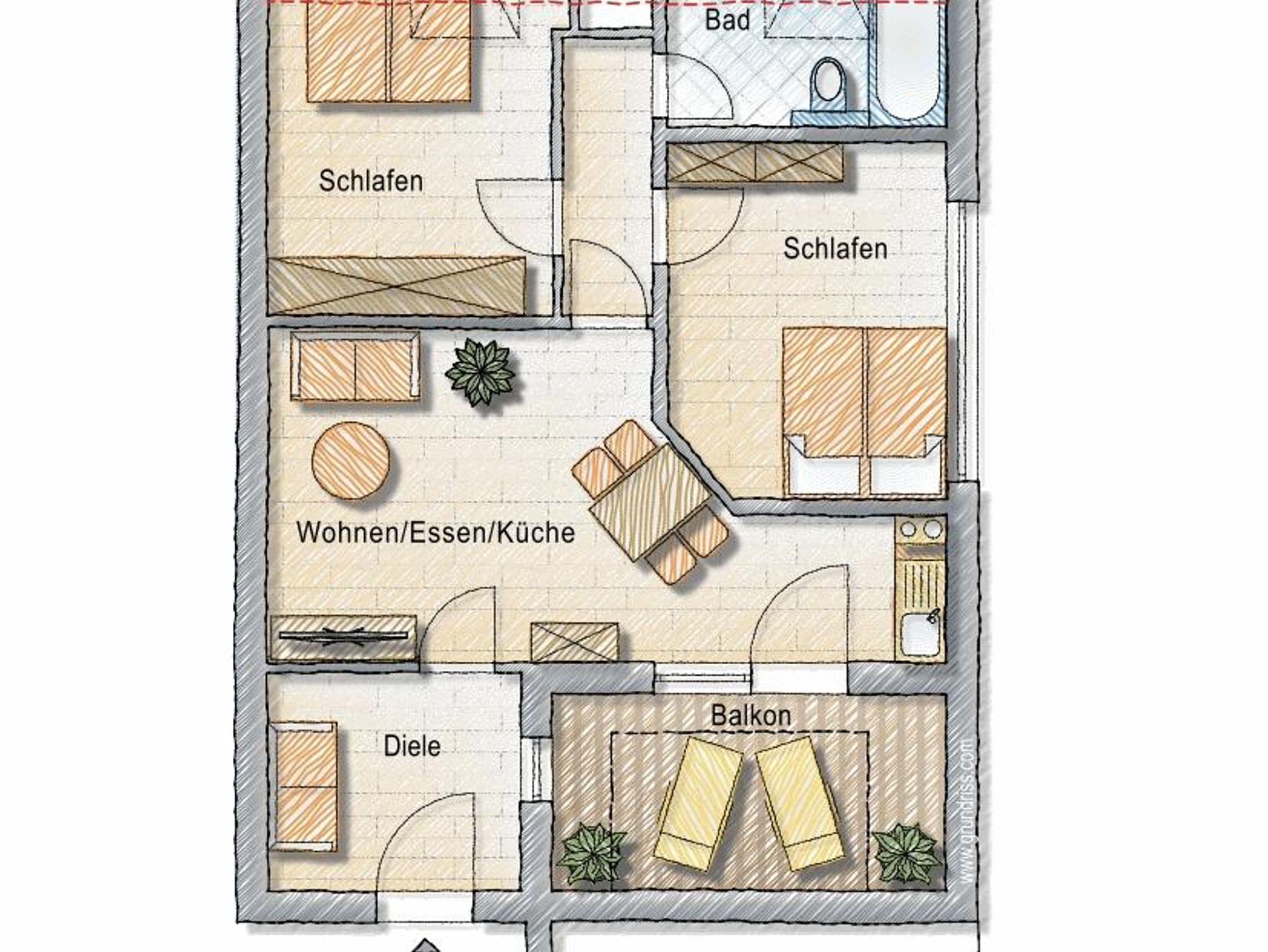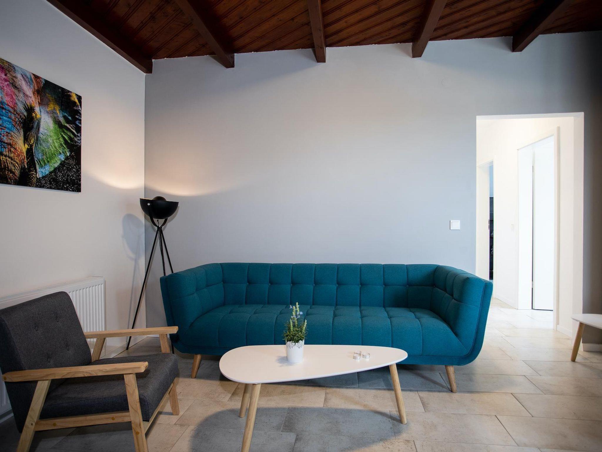 Unser größtes Apartment bietet bis zu 5 Personen Platz. Zwei Schlafzimmer mit je einem Doppelbett, sowie ein Einzelbett im Eingangsbereich sorgen dafür, dass sich hier auch größere Familien oder Gruppen wohlfühlen. Das moderne Bad verfügt über eine Badewanne und der großzüge Balkon über eine Lounge mit ausreichend Sitzplätzen. Die vollausgestattete Küche und die große Couch mit Sessel bieten perfekten Wohnkomfort bei allen Gelegenheiten.