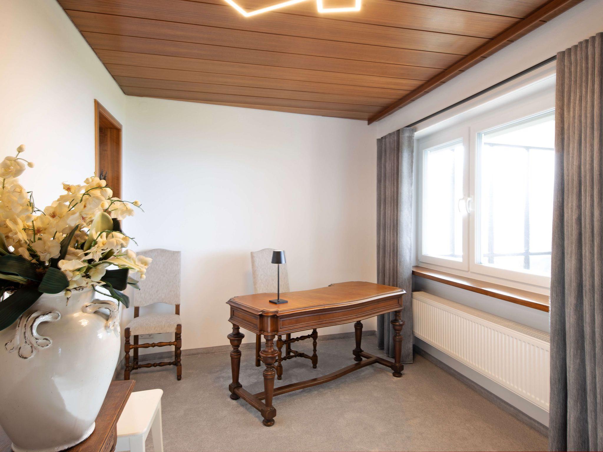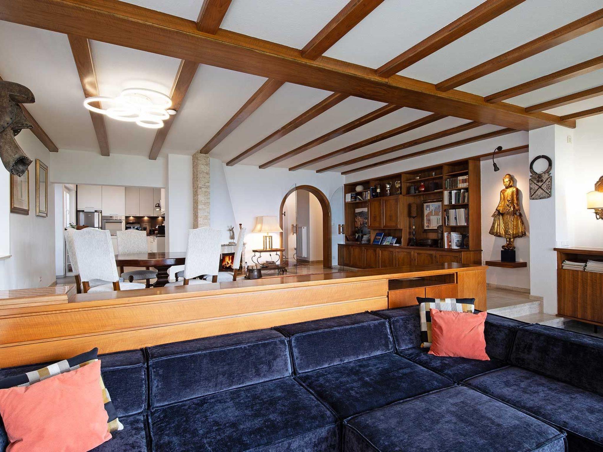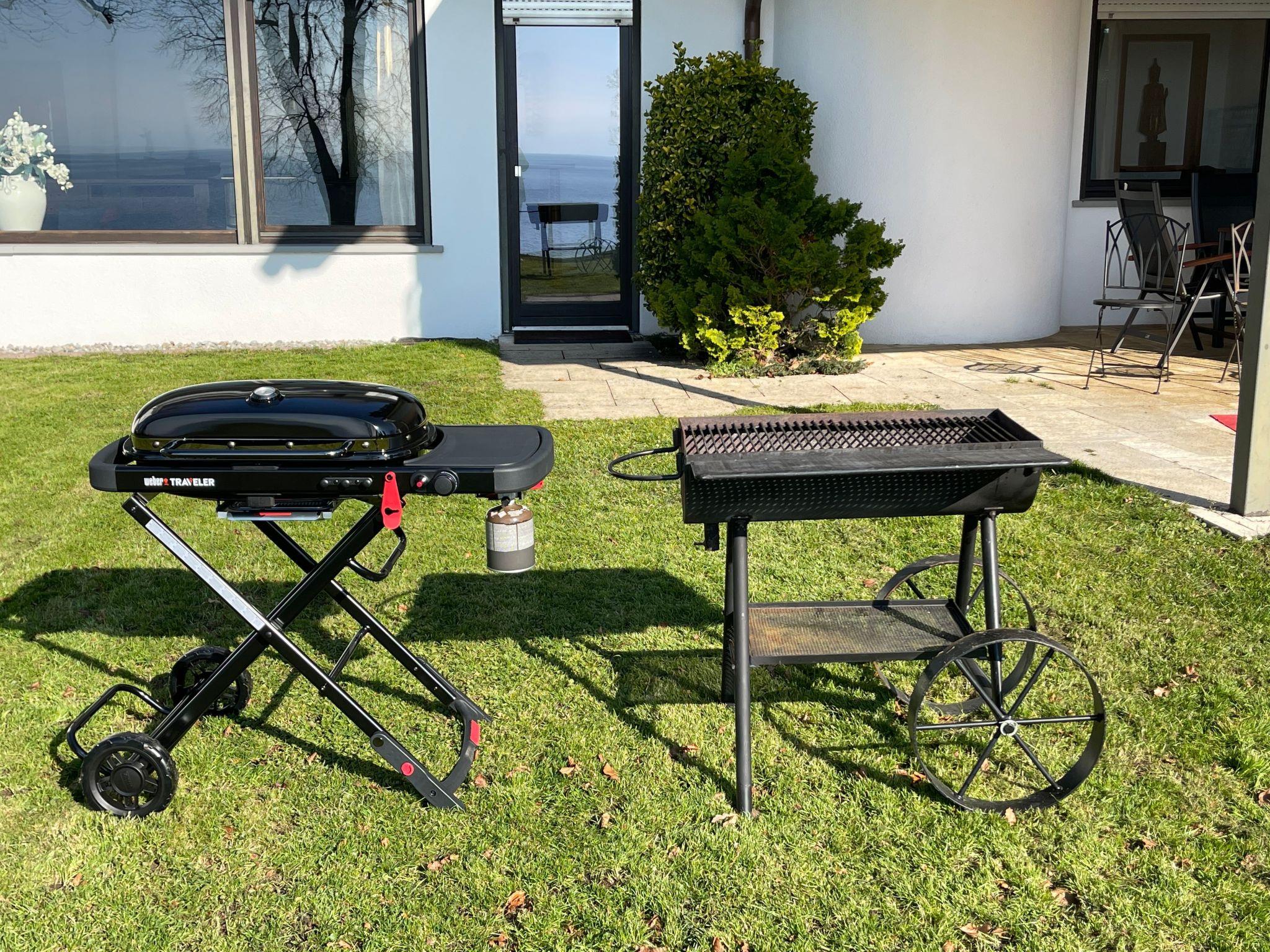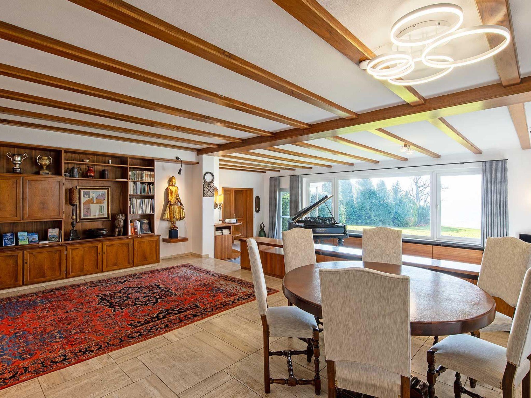 The spacious living room offers a spectacular view of the garden through the panoramic window. The sofa is very large and modular, it can be moved to transform the living room into a home cinema thanks to the 4K home cinema system with large Bluetooth speaker. Guests also have an antique grand piano at their disposal - playing the piano with a view of Lake Constance is a rare experience! From the living room, you have direct access to the spacious garden and the covered terrace, which is equipped with a table for eight people.