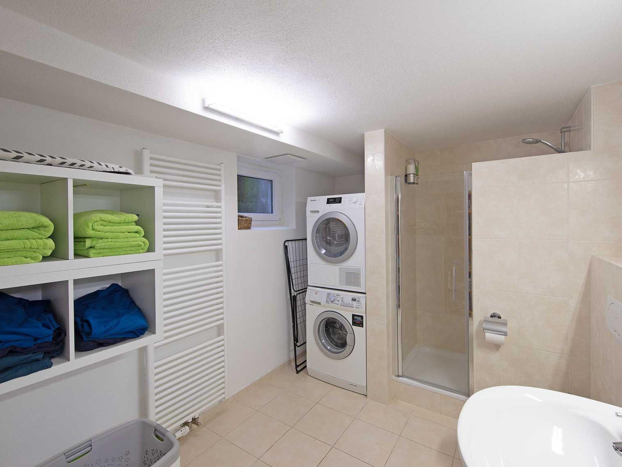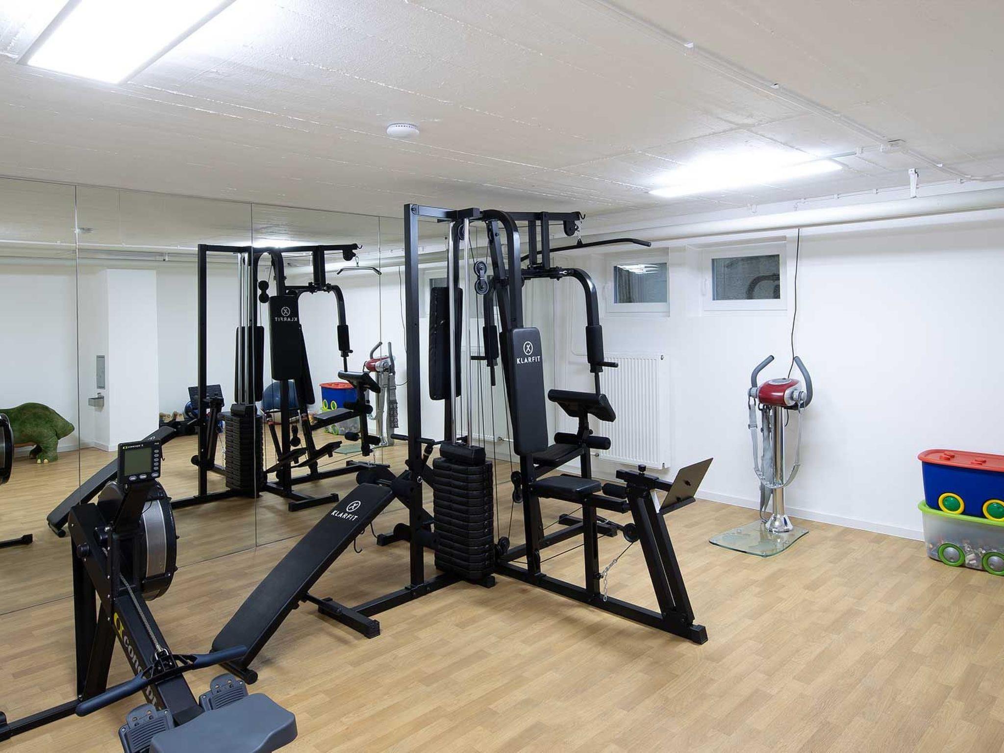 It is mainly on the ground floor, where the living and sleeping areas are located. In the basement there is a fitness room and a laundry room equipped with washing machine, tumble dryer, ironing board and a bathroom with shower.