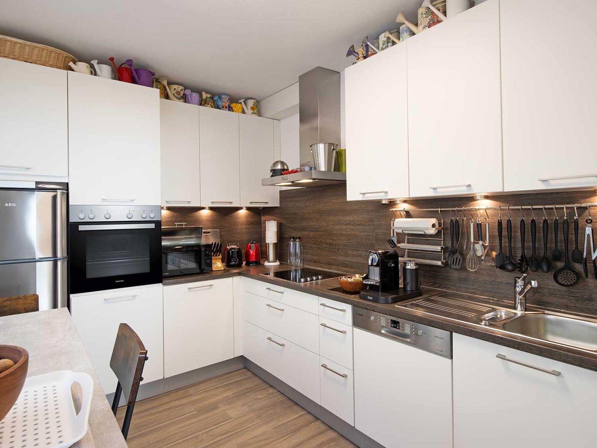 The kitchen is fully equipped: dishwasher, egg cooker, kettle, microwave, toaster, oven, fridge and freezer. There is also a coffee machine for coffee and cappuccino, a blender and a crepe maker. Everything you need for cooking (oils, vinegar, spices) as well as Nespresso capsules, various teas, sugar, salt and pepper are available.