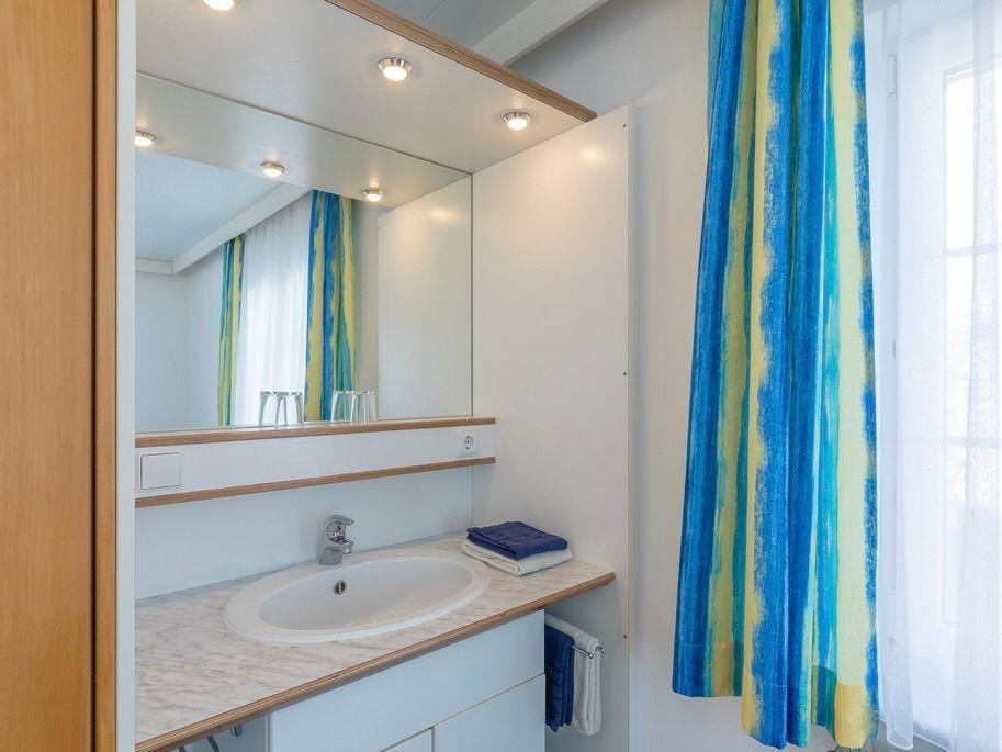 Die zwei getrennten Schlafzimmer sorgen für Privatsphäre und erholsamen Schlaf. Beide sind mit bequemen Doppelbetten und großzügigen Kleiderschränken ausgestattet. Ein zusätzliches Highlight: In einem der Schlafzimmer befindet sich ein praktischer Waschtisch.
