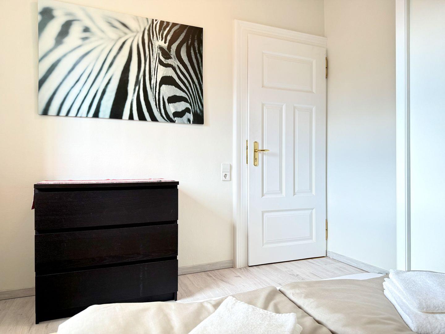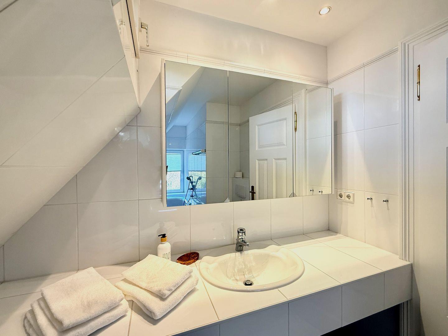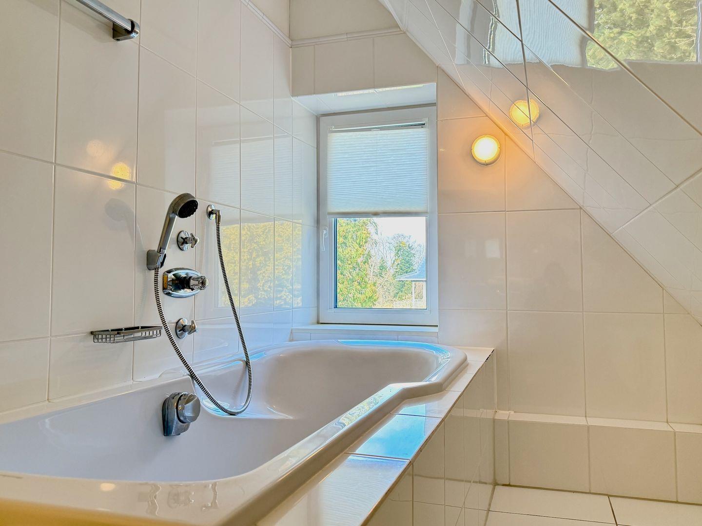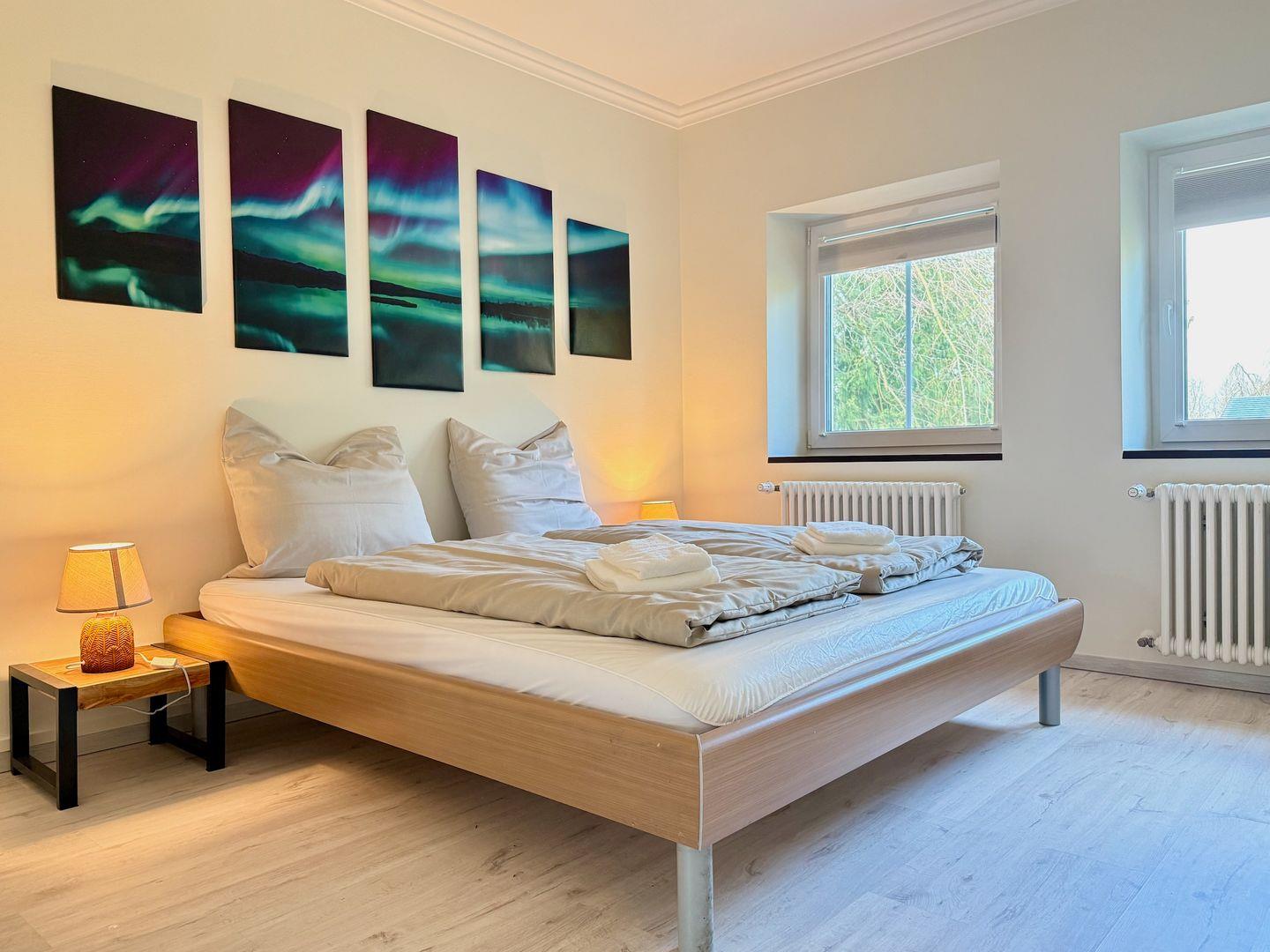 Zwei der drei Schlafzimmer sind mit einem Doppelbett ausgestattet, das dritte Schlafzimmer mit einem großzügigen Einzelbett mit 140 cm Breite und verfügen über jeweils ein eigenes, direkt angeschlossenes Bad mit WC und Badewanne. Das Bad des Elternschlafzimmers ist zusätzlich mit einem Bidet ausgestattet. Die Unterkunft bietet ideale Voraussetzungen zur Umsetzung der modernen Work-Life-Balance und verfügt über sehr gutes Internet für Ihr Homeoffice im Urlaubsdomizil mit Schreibtisch im Hauptschlafzimmer. Für längere Aufenthalte stehen eine Waschmaschine und ein Trockner zur gemeinsamen Nutzung mit anderen Ferienwohnungen zur Verfügung.