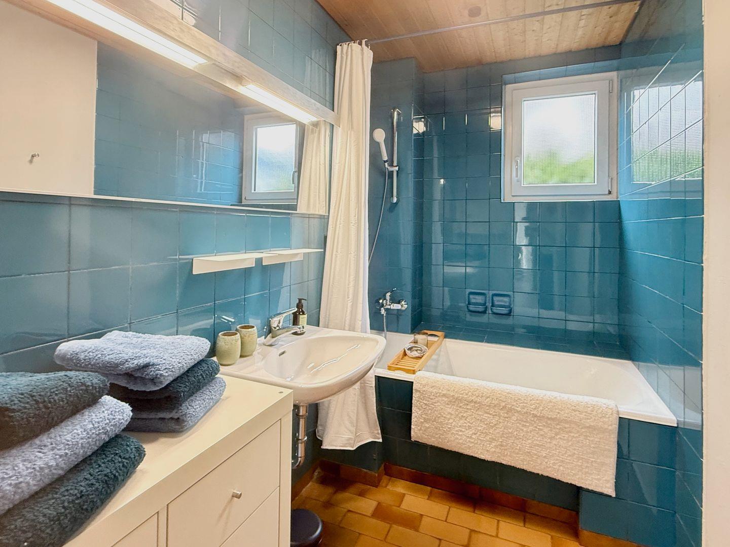 Die separate Küche ist gut ausgestattet und bietet alles für eine unkomplizierte Selbstversorgung, darunter Cerankochfeld, Spülmaschine, Kühlschrank sowie Nespresso-Maschine, Wasserkocher und Toaster. Bettwäsche, Handtücher und eine Erstausstattung sind selbstverständlich vorhanden.