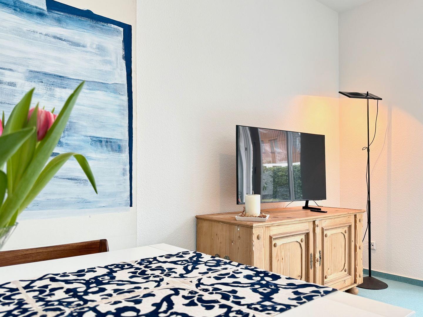 Die Ferienwohnung SeeZeit1 verbindet eine besonders strandnahe Lage mit gemütlichem Wohnkomfort – perfekt für eine erholsame Auszeit am Bodensee.