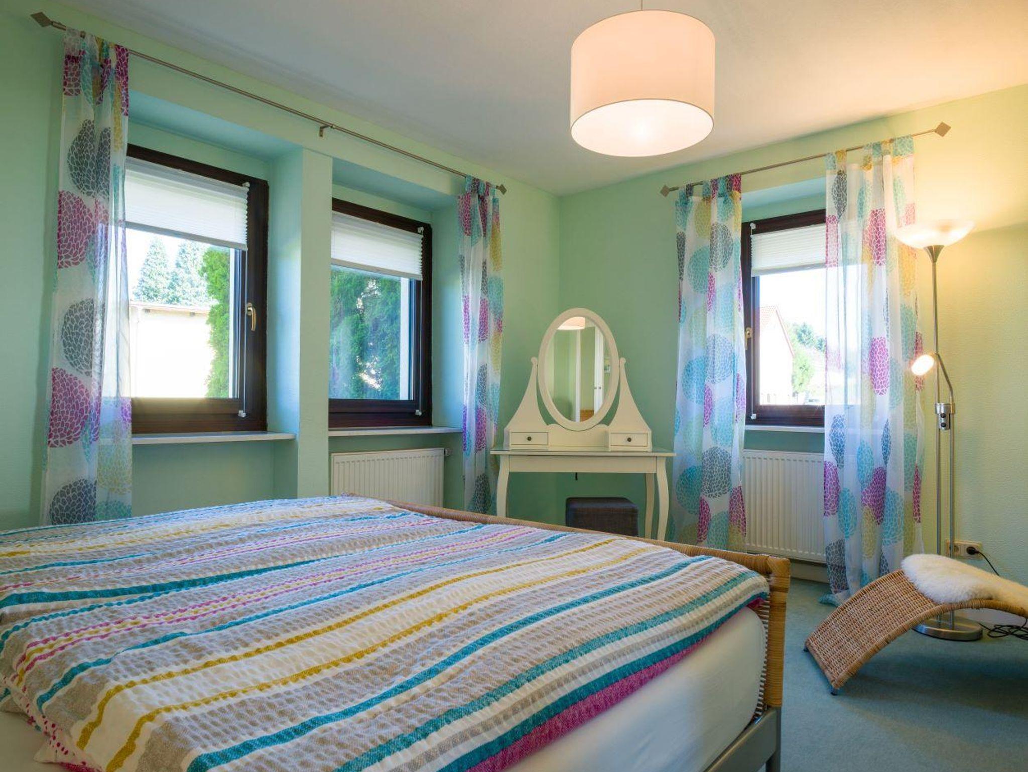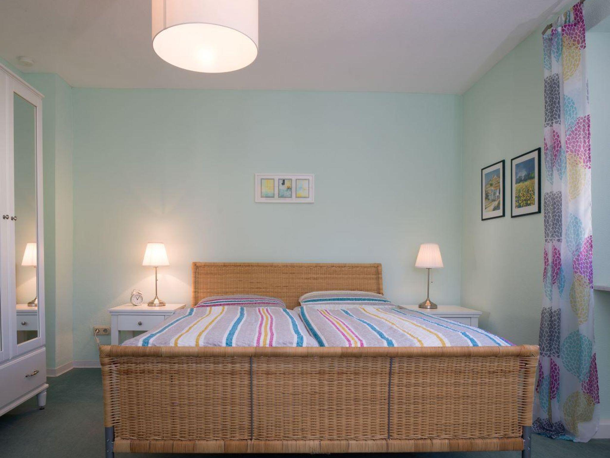 Unsere Ferienwohnung Flieder (85 m2) hat zwei Schlafzimmer, eine Wohnküche, ein Wohnzimmer und ein modern eingerichtetes Bad mit bodengleicher Dusche. Eins der Schlafzimmer verfügt über ein Doppelbett, das zweite über ein ausziehbares Bett. Die gemütlich eingerichtete Wohnküche ist voll ausgestattet mit allem, was Sie für einen angenehmen Aufenthalt benötigen (Herd mit Backofen, Kühlschrank mit Gefrierfach, Geschirrspülmaschine, Kaffeemaschine, Mikrowelle, Toaster). Bettwäsche, Handtücher und Geschirrtücher werden gestellt. Unser großer Garten lädt Sie bei schönem Wetter zum Verweilen ein.