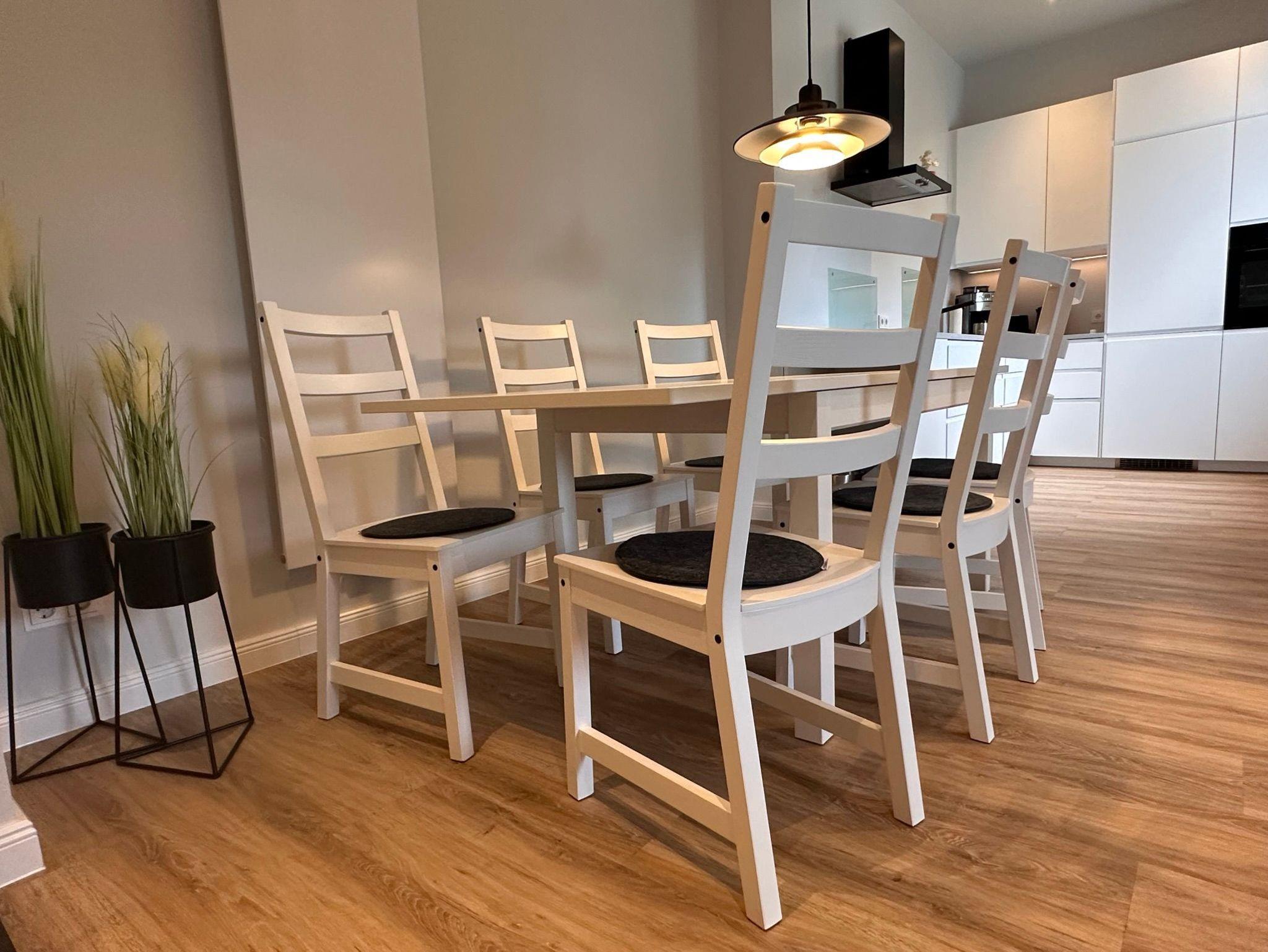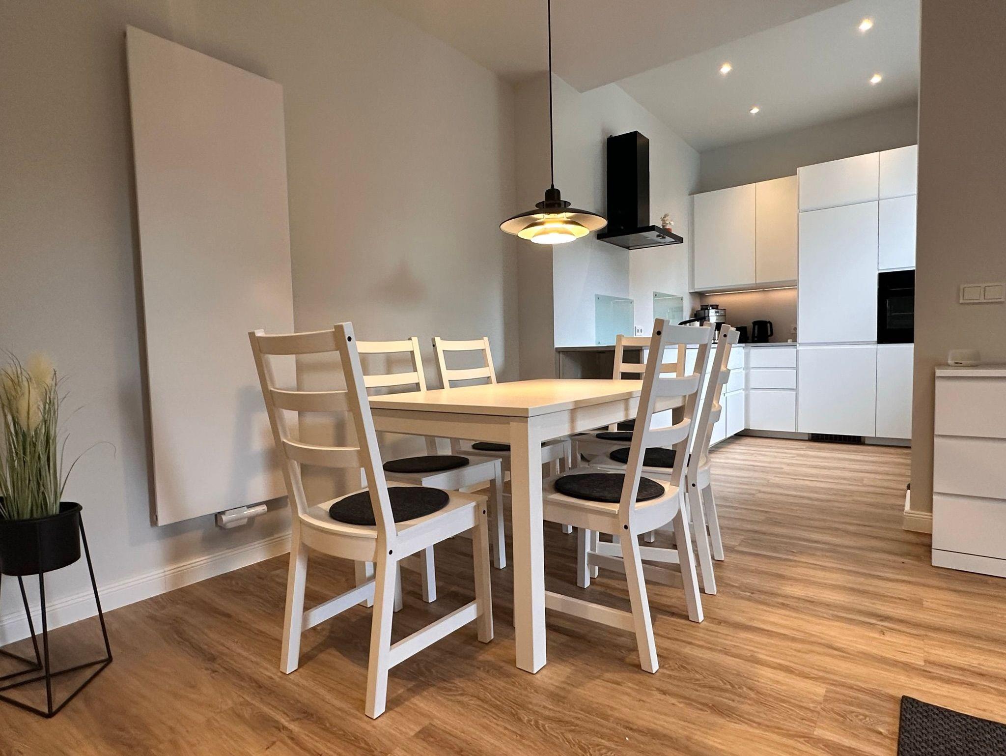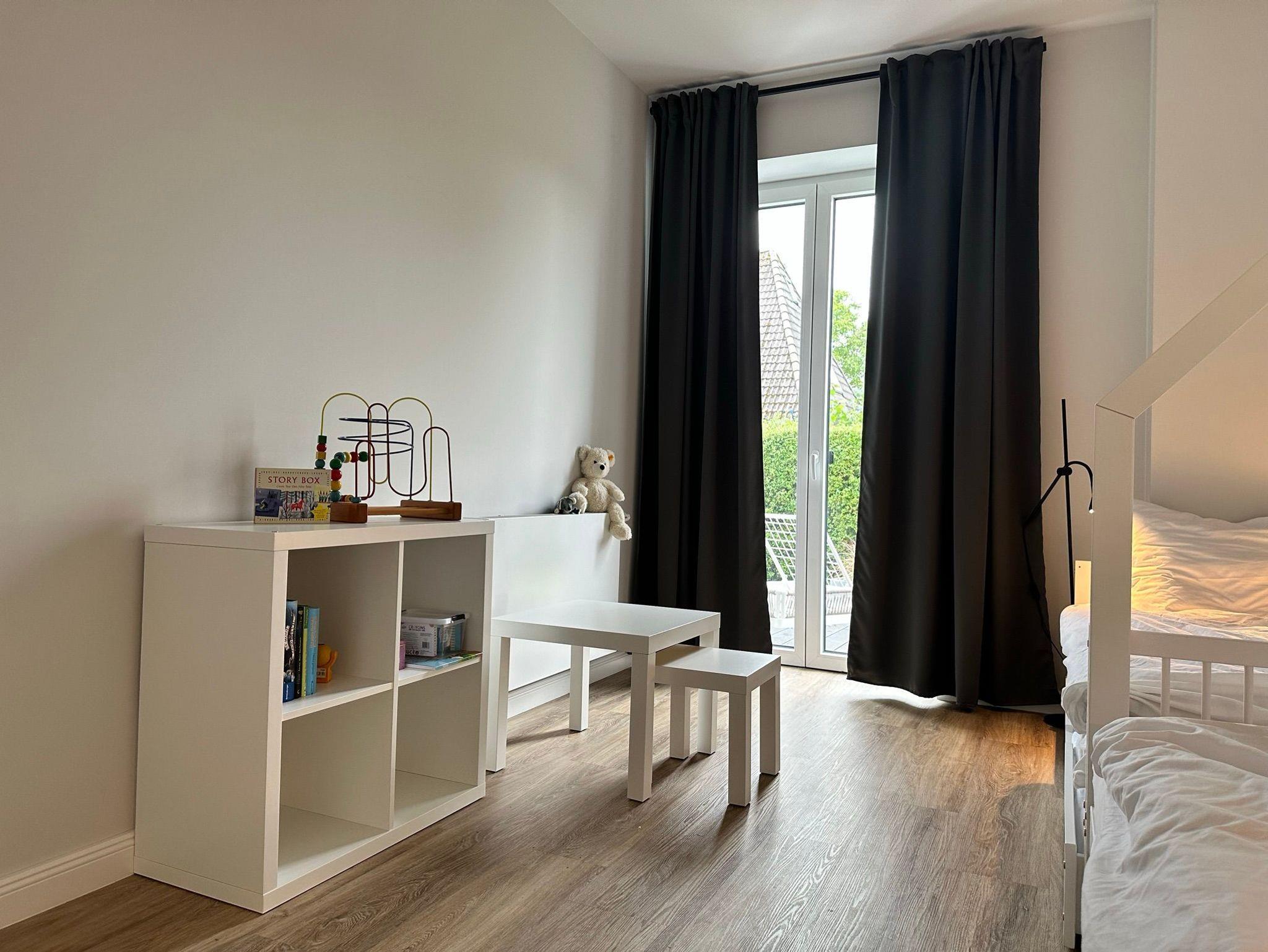 Ideal für große Familien ist das Apartment „Matthias Claudius“ im Erdgeschoss des Landhauses. Die helle und charmante Wohnung (ca. 84 m²) besticht durch sehr viel Liebe zum Detail: 3 großzügige Räume mit hohen Decken und einem tollen Lichteinfall durch die doppelflügigen und bodentiefen Fensterelementen in allen Räumen.