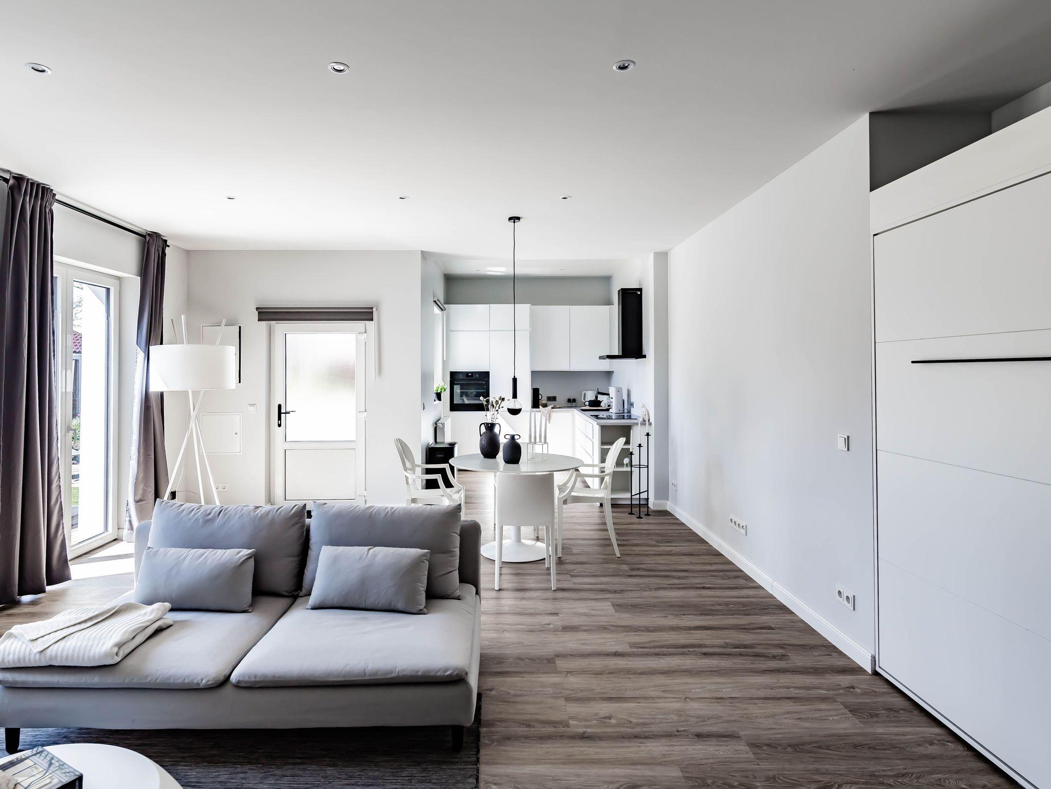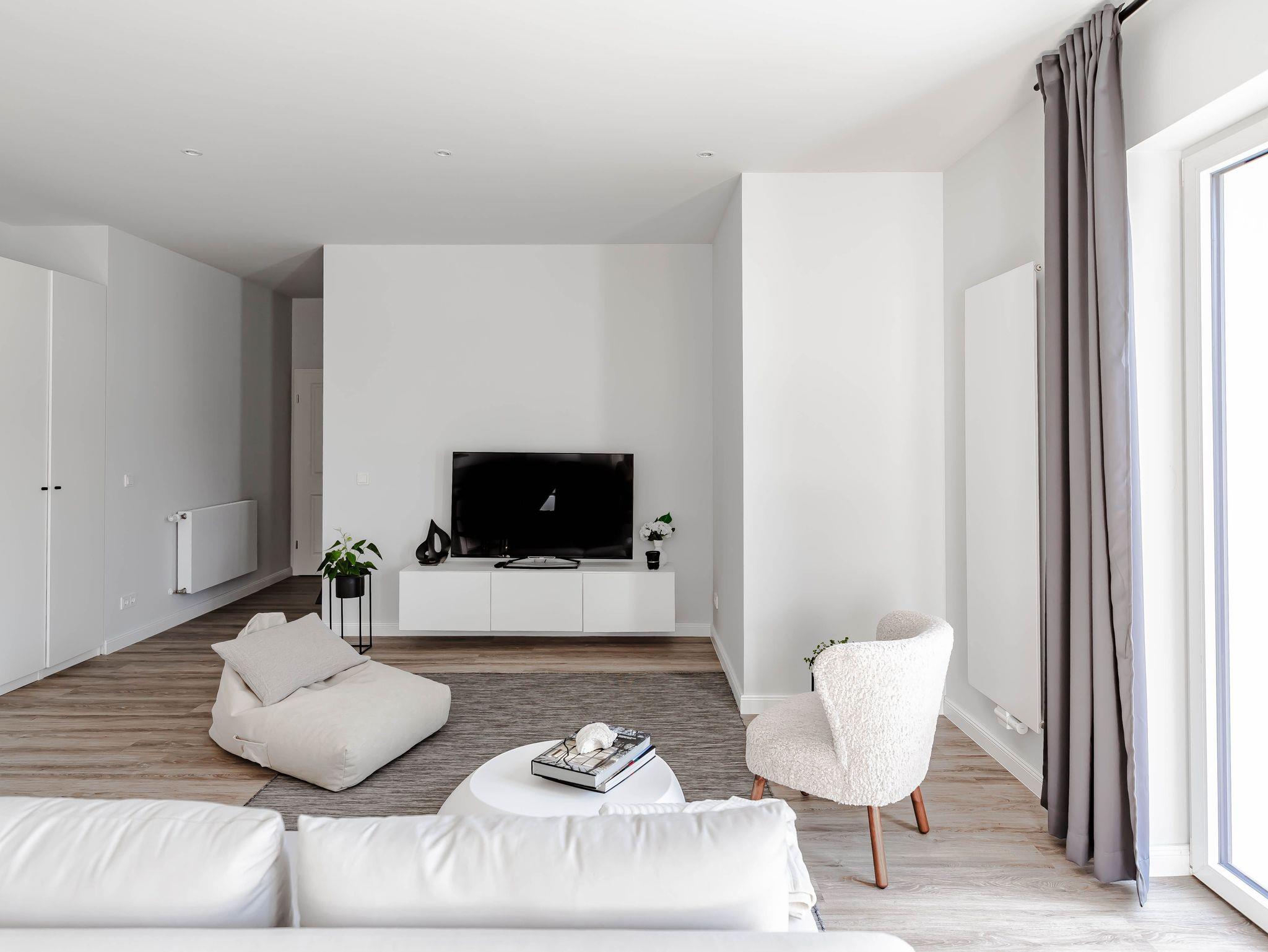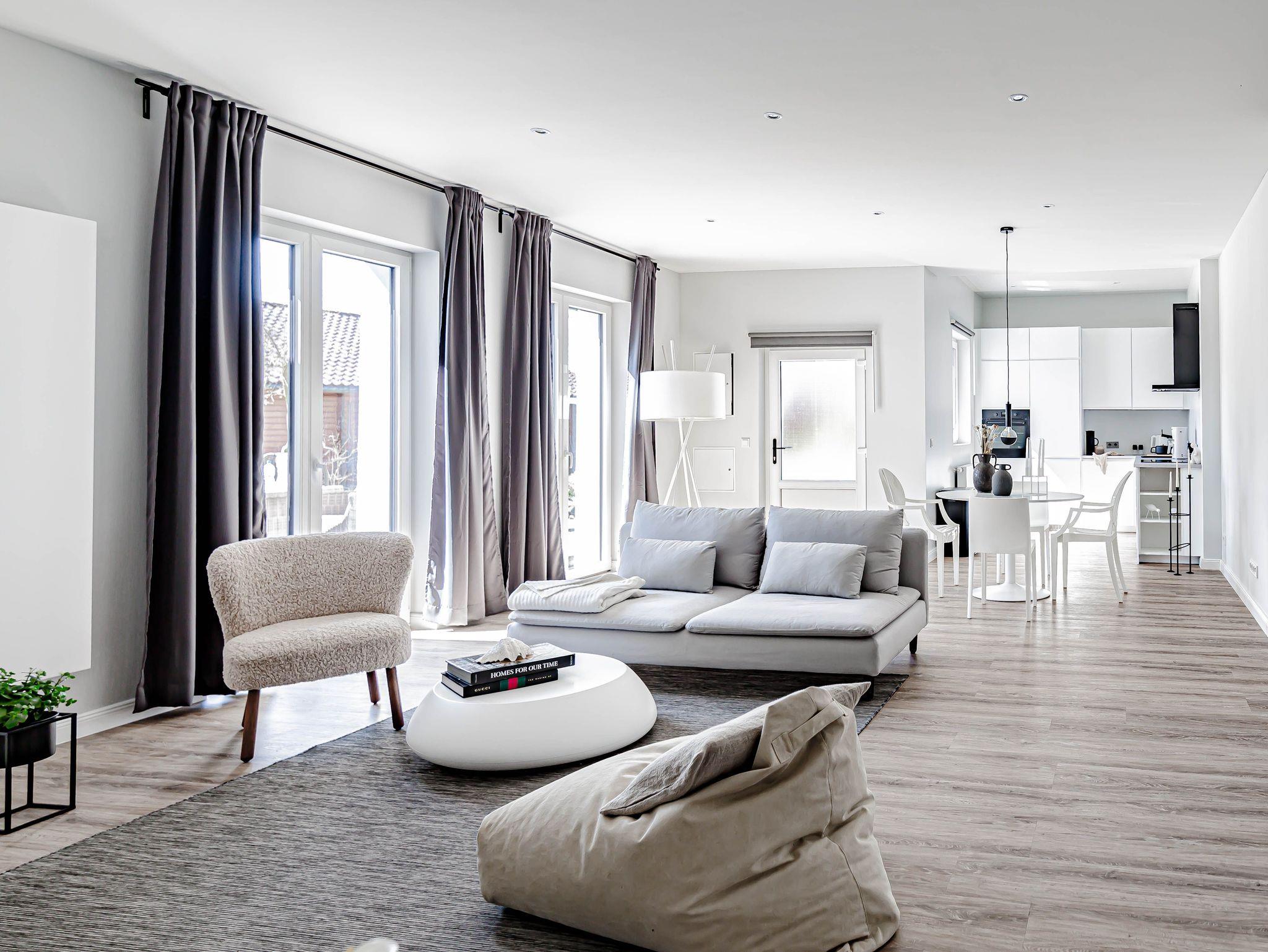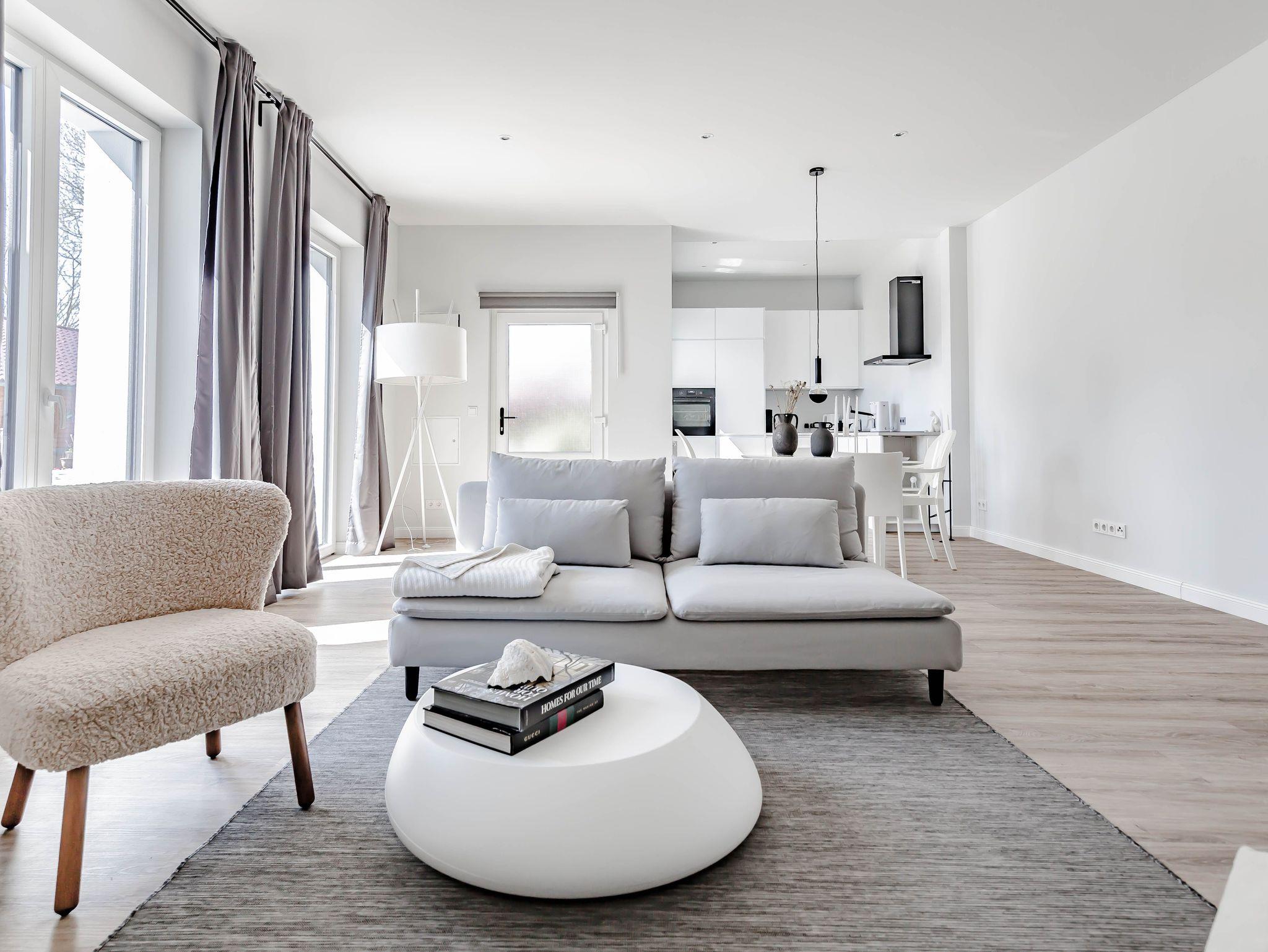 Die chic möblierte Wohnung ist in einem modernen, cleanen Wohndesign gestaltet. Sie