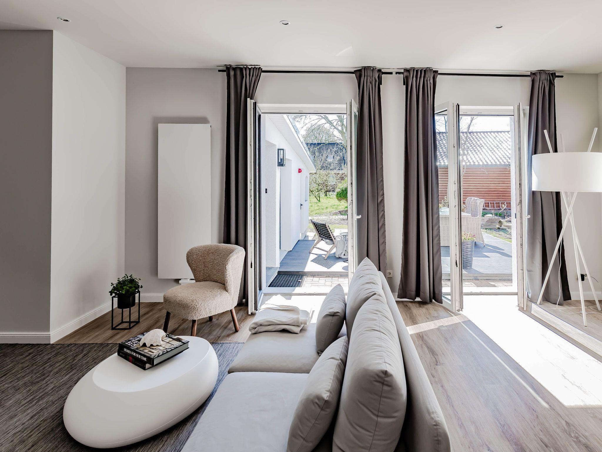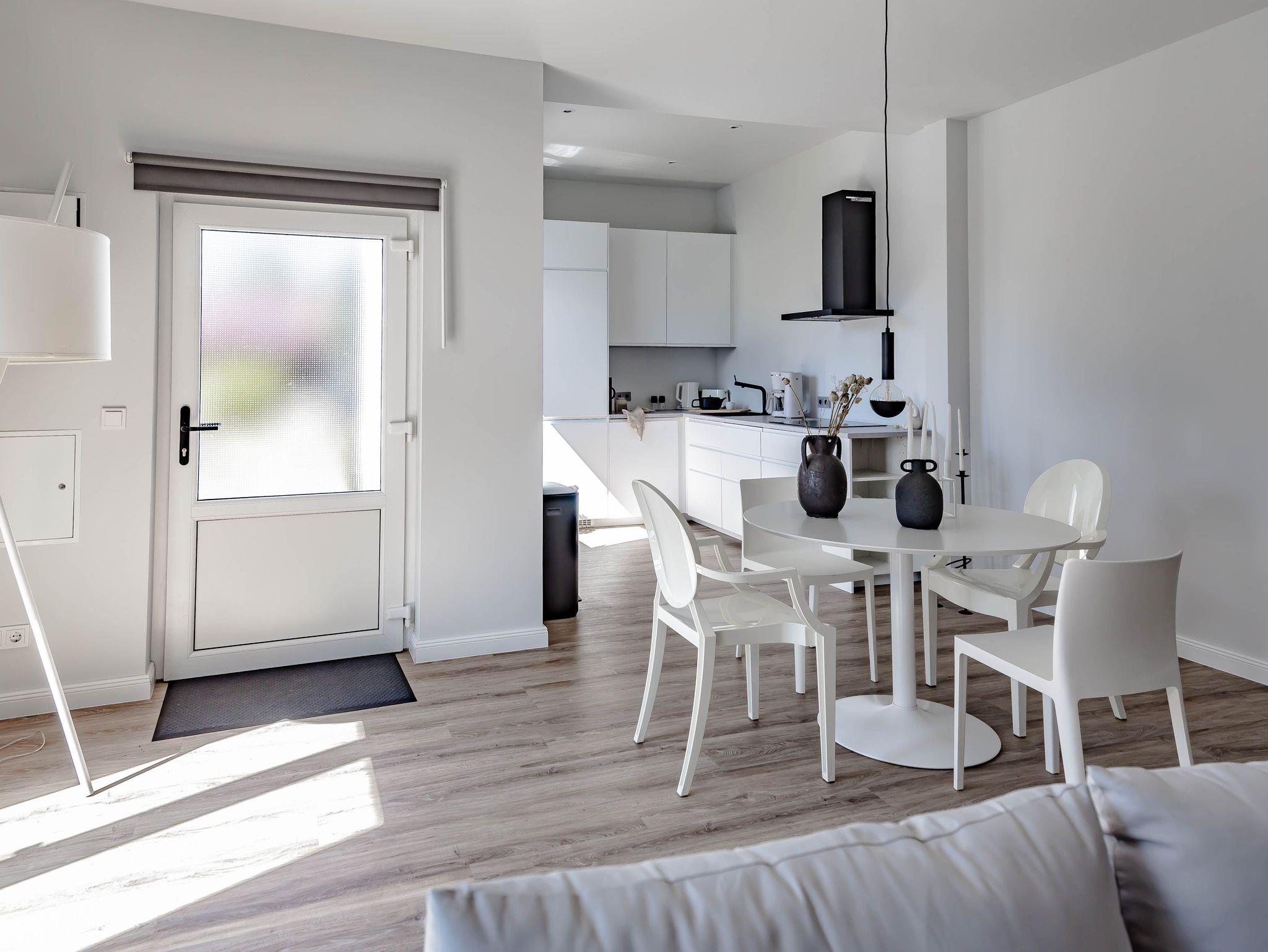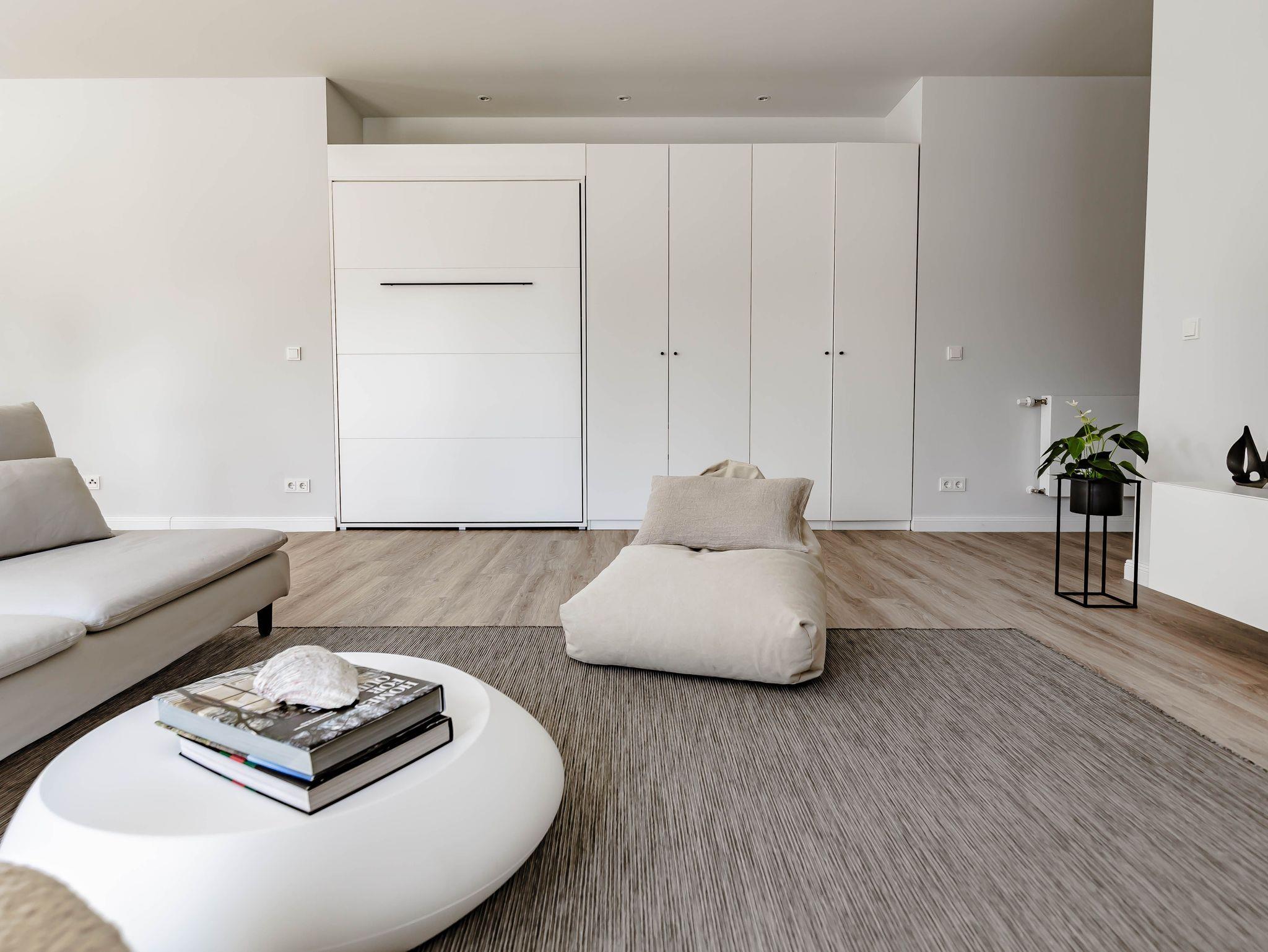 Die chic möblierte Wohnung ist in einem modernen, cleanen Wohndesign gestaltet. Sie