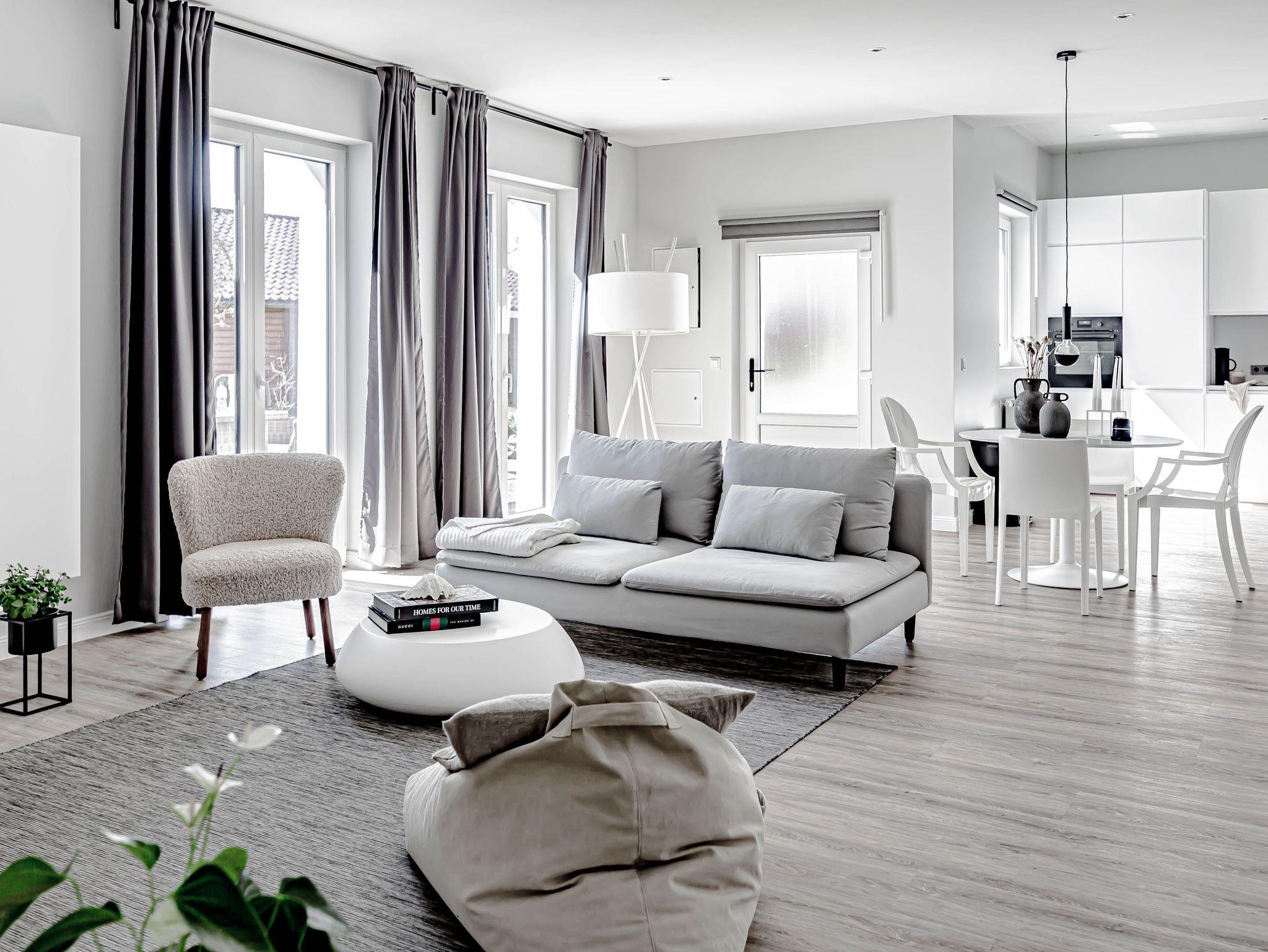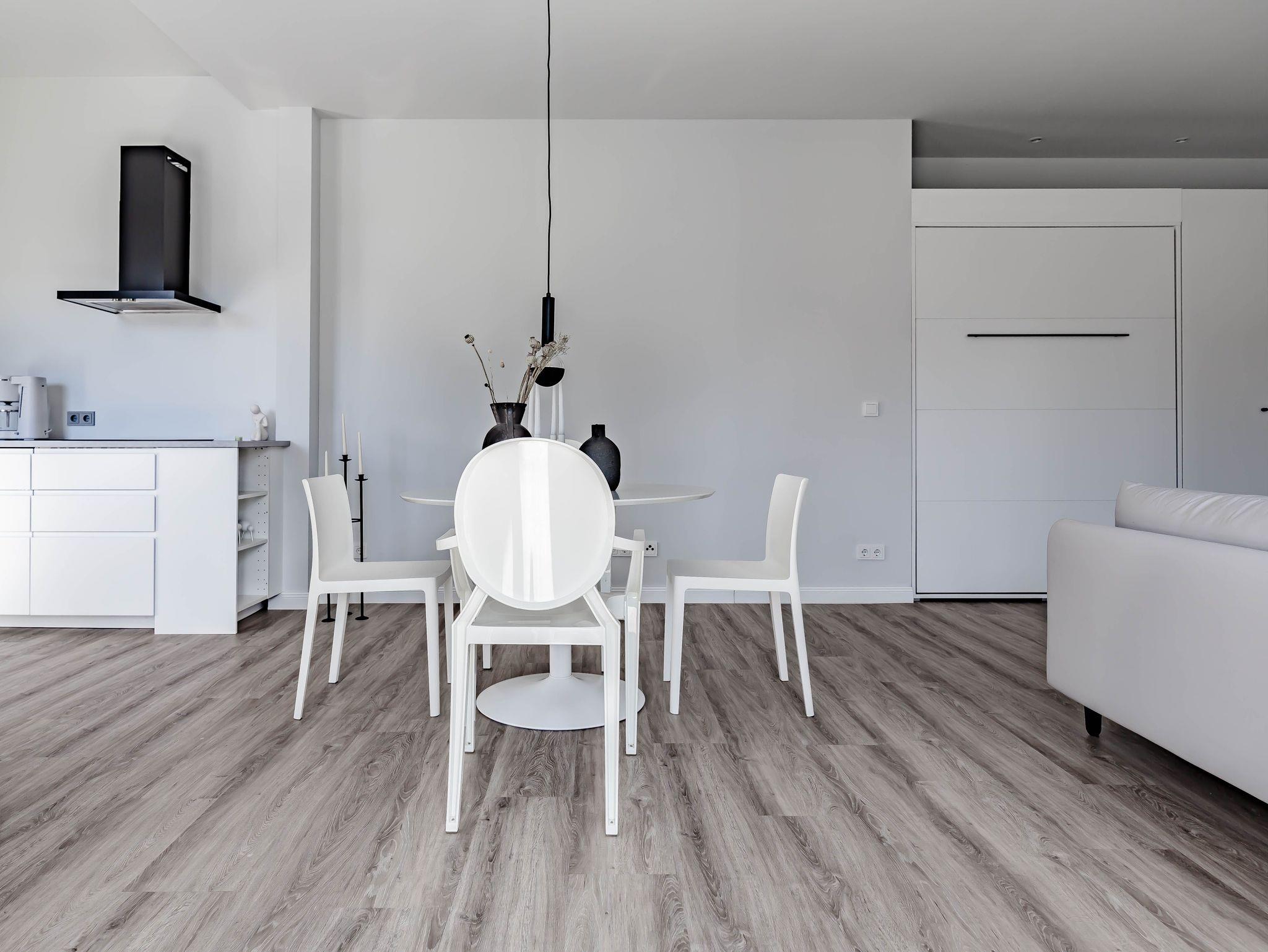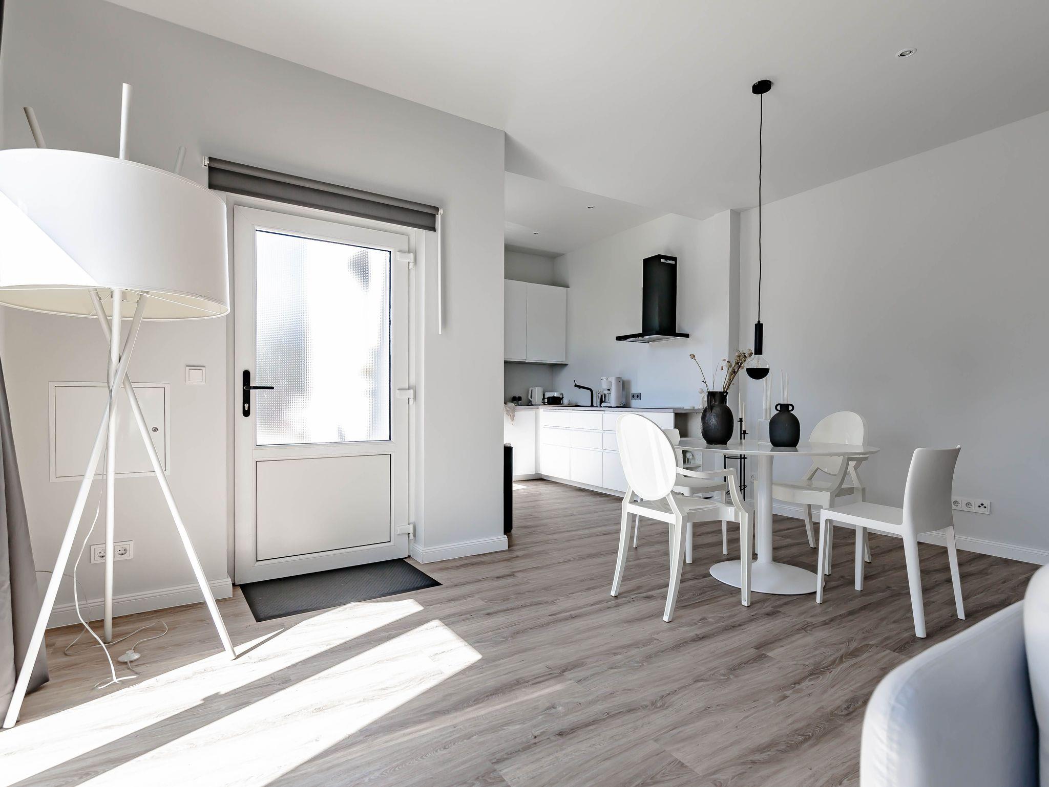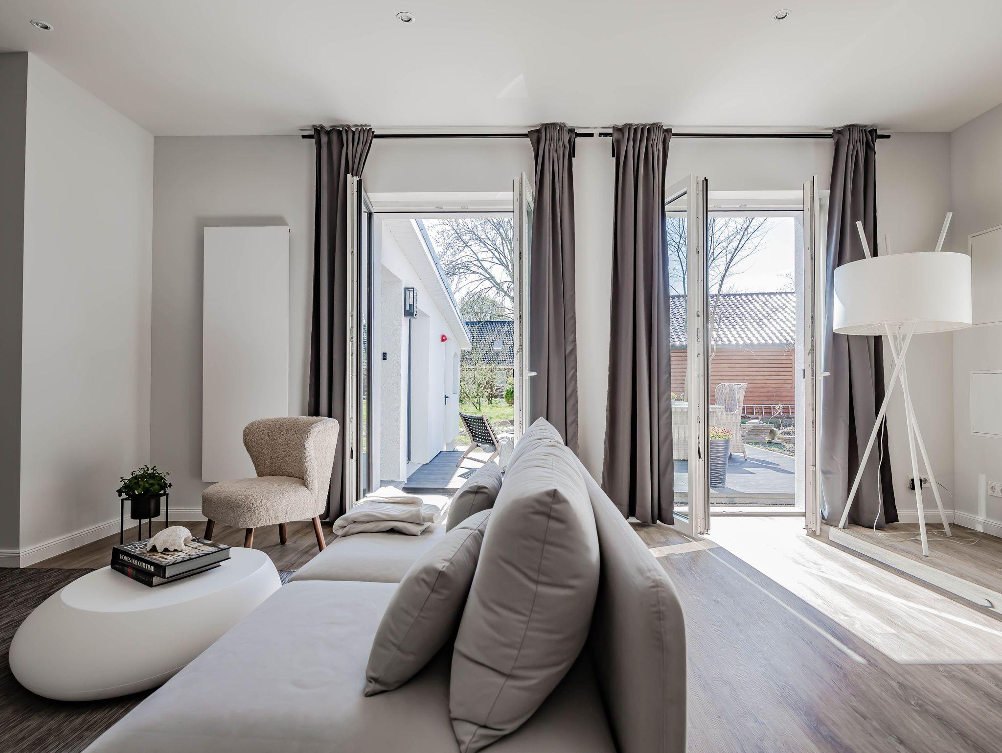 Die chic möblierte Wohnung ist in einem modernen, cleanen Wohndesign gestaltet. Sie