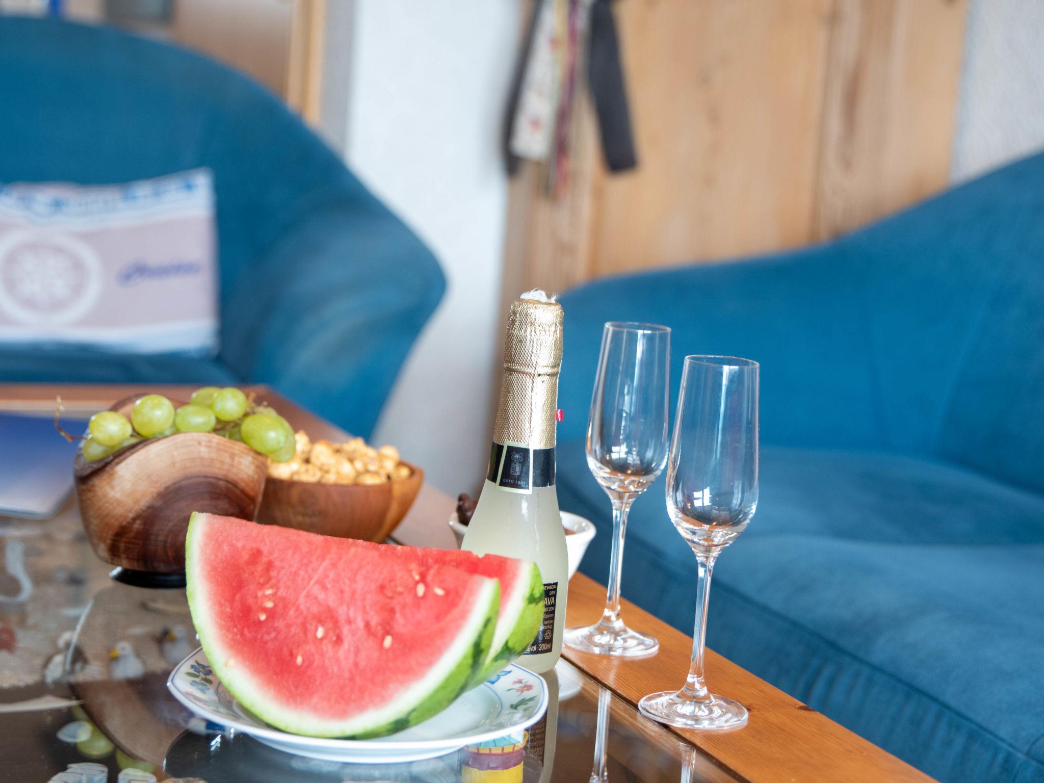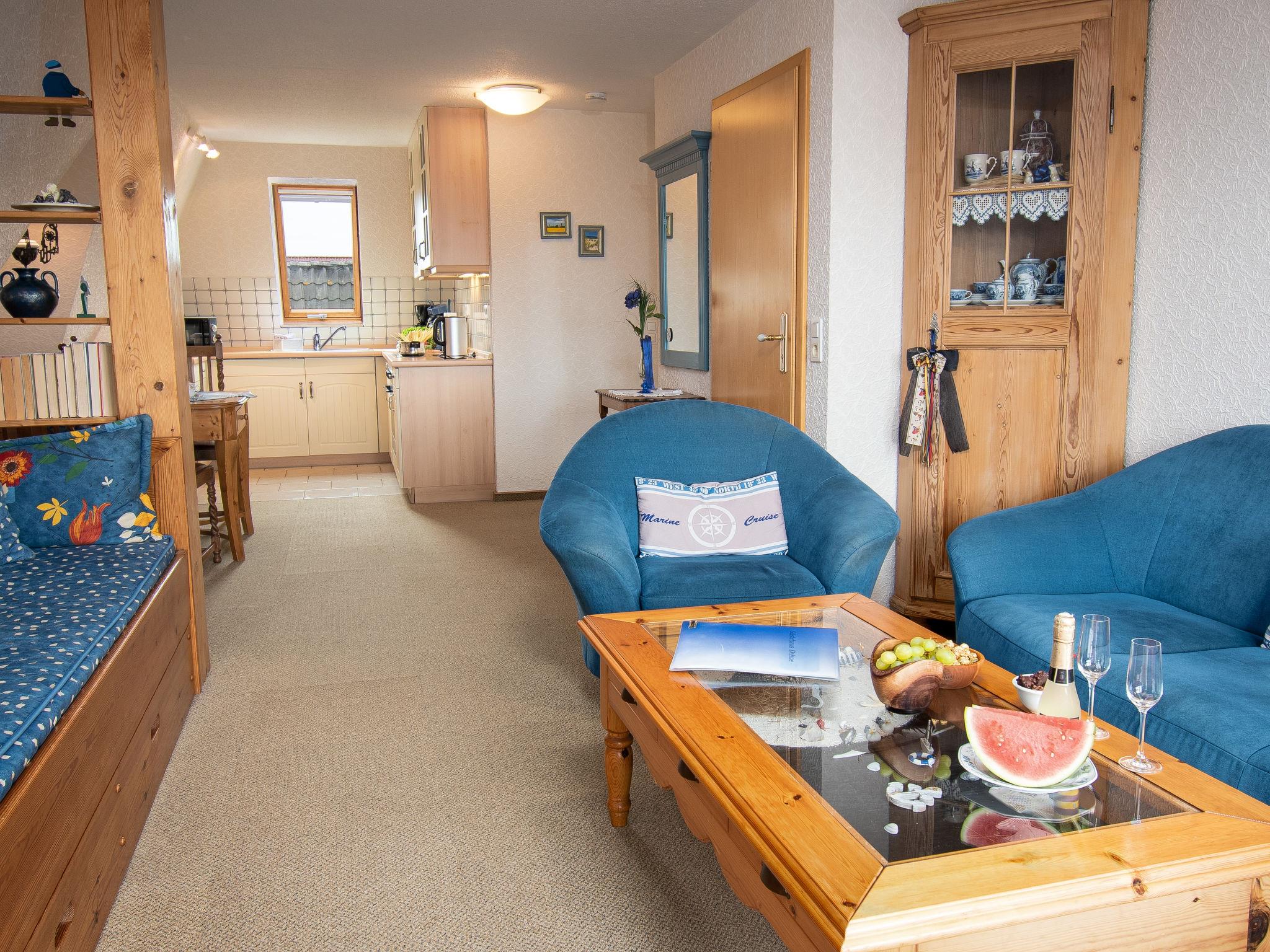 2-room apartment 60 m2 on 3rd floor. Cosy furnishings: living/dining room 24 m2 with satellite TV (flat screen), hi-fi system. Exit to the balcony. 1 room 10 m2 with 1 double bed (2 x 90 cm, length 200 cm). Open kitchen (oven, dishwasher, 4 ceramic glass hob hotplates, toaster, kettle, microwave, electric coffee machine). Shower/WC. Balcony. Balcony furniture. Facilities: telephone (extra), children's high chair (extra), hair dryer. Please note: non-smokers only. Smoke alarm.