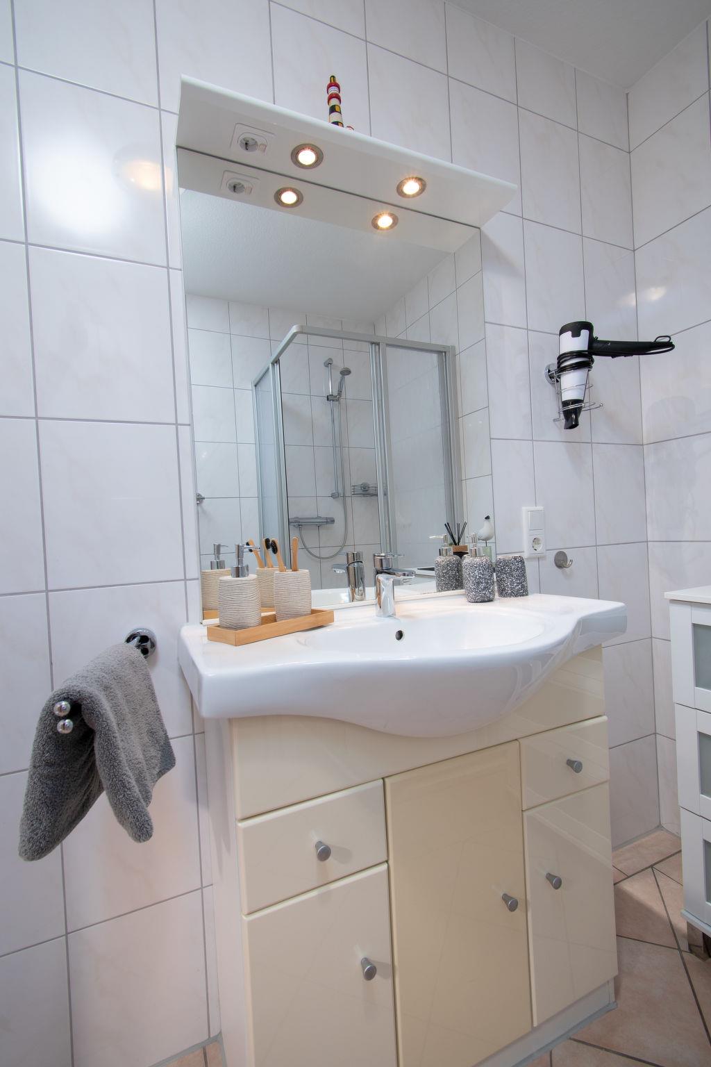 Apartment house. In the centre, 1 km from the sea, 1 km from the beach. In the house: central heating system. Parking at the house. Supermarket 500 m, restaurant 10 m, bakery 250 m, café, bus stop 200 m, railway station "Norddeich" 1 km, ferry 1 km, sandy beach 1 km, outdoor swimming pool 14 km, indoor swimming pool 800 m. Golf course (18 hole) 8 km, surf school 1 km, tennis 2.5 km, children's playground 800 m.