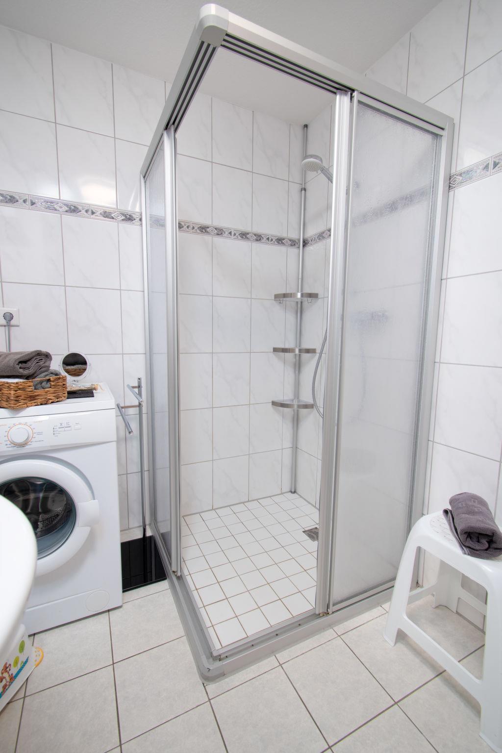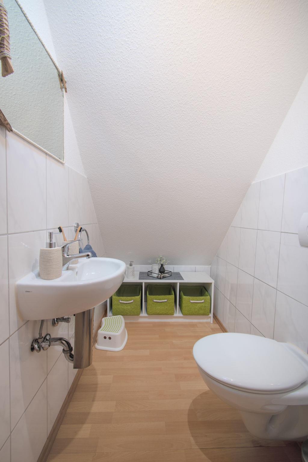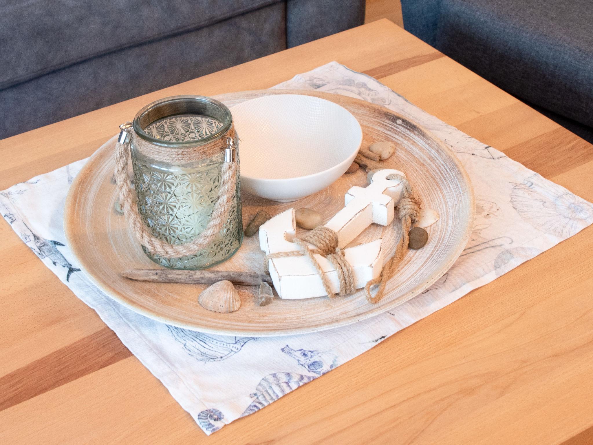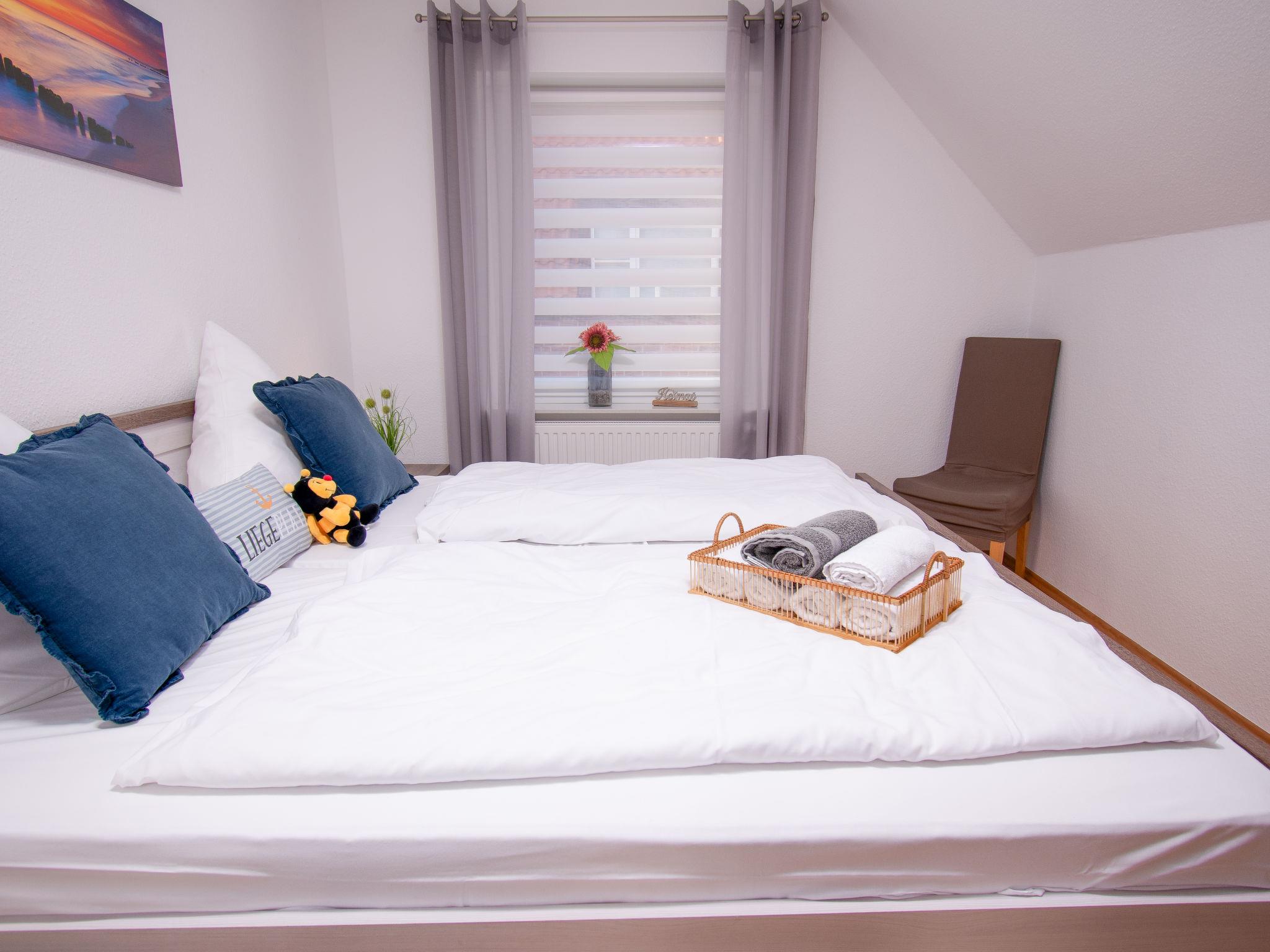 "Seegras", 4-room apartment 74 m2 on 2 levels on 1st floor. Spacious, partly with sloping ceilings, comfortable and modern furnishings: living/dining room 32 m2 with satellite TV (flat screen), radio, DVD and DVD collection available. Exit to the balcony. 1 room 10 m2 with 1 double bed (2 x 90 cm, length 200 cm). Kitchenette (oven, dishwasher, 4 ceramic glass hob hotplates, toaster, kettle, microwave, freezer, electric coffee machine, Capsules for coffee machine (Senseo) extra). Shower/WC. Underfloor heating. Top floor: 1 room 6 m2 with 1 bed and satellite TV (flat screen). 1 room 6 m2 with 1 bed. Sep. WC. Balcony furniture. Facilities: washing machine, iron, children's high chair, hair dryer. Internet (WiFi, free). Please note: non-smokers only. Smoke alarm. Sockets for e-bikes available in the garden shed. TV is a SMART TV.