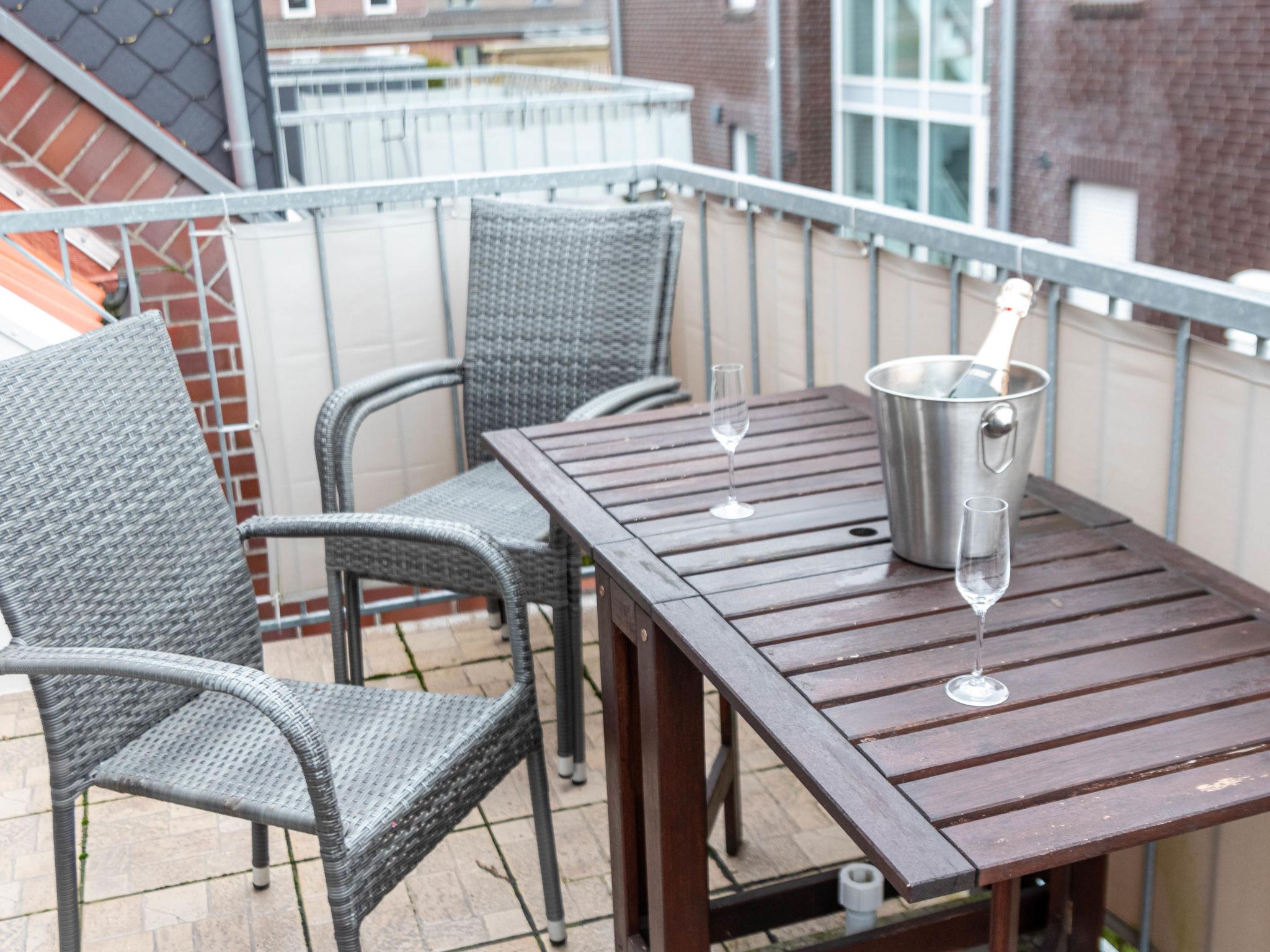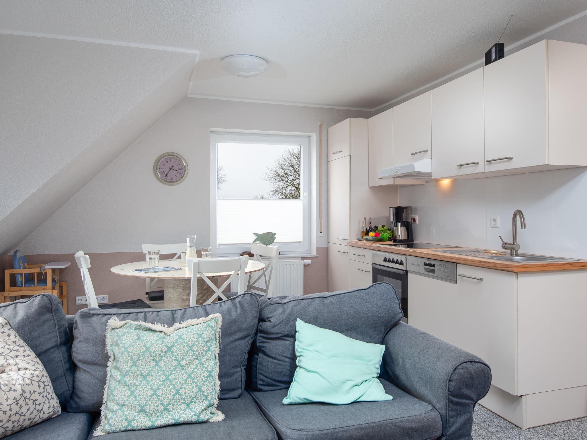 "Meeresrauschen", 3-room apartment 64 m2 on 2 levels on 1st floor. Modern and tasteful furnishings: living/dining room 27 m2 with satellite TV (flat screen). Exit to the balcony. 1 double bedroom 8 m2. Kitchenette (oven, dishwasher, 4 ceramic glass hob hotplates, toaster, kettle, microwave, electric coffee machine). Shower/WC. Top floor: 1 room 10 m2, with sloping ceilings with 2 beds and satellite TV (flat screen), DVD. Balcony furniture. Facilities: washing machine, iron, children's high chair, hair dryer. Internet (WiFi, free). Please note: non-smokers only. Smoke alarm.
