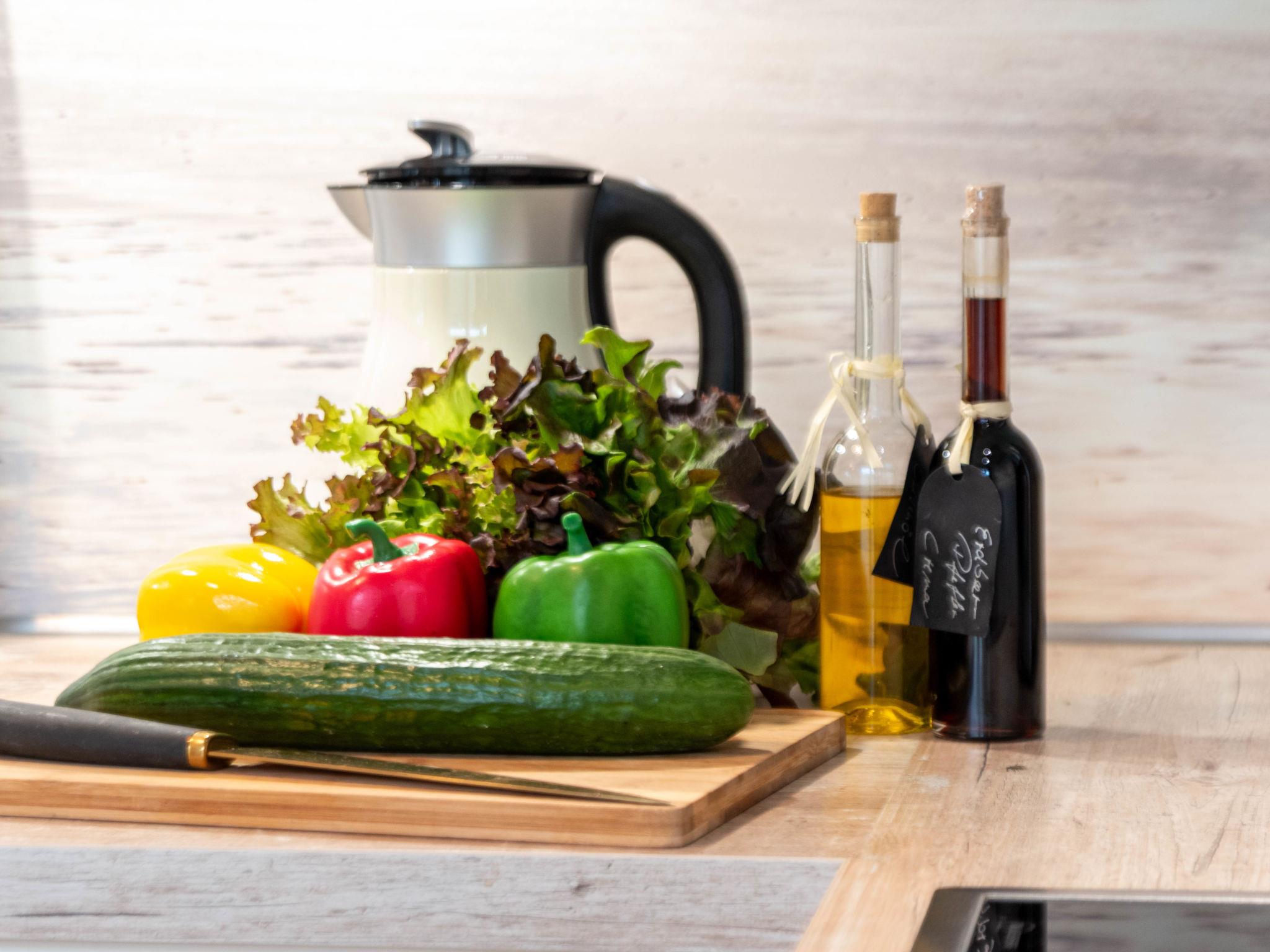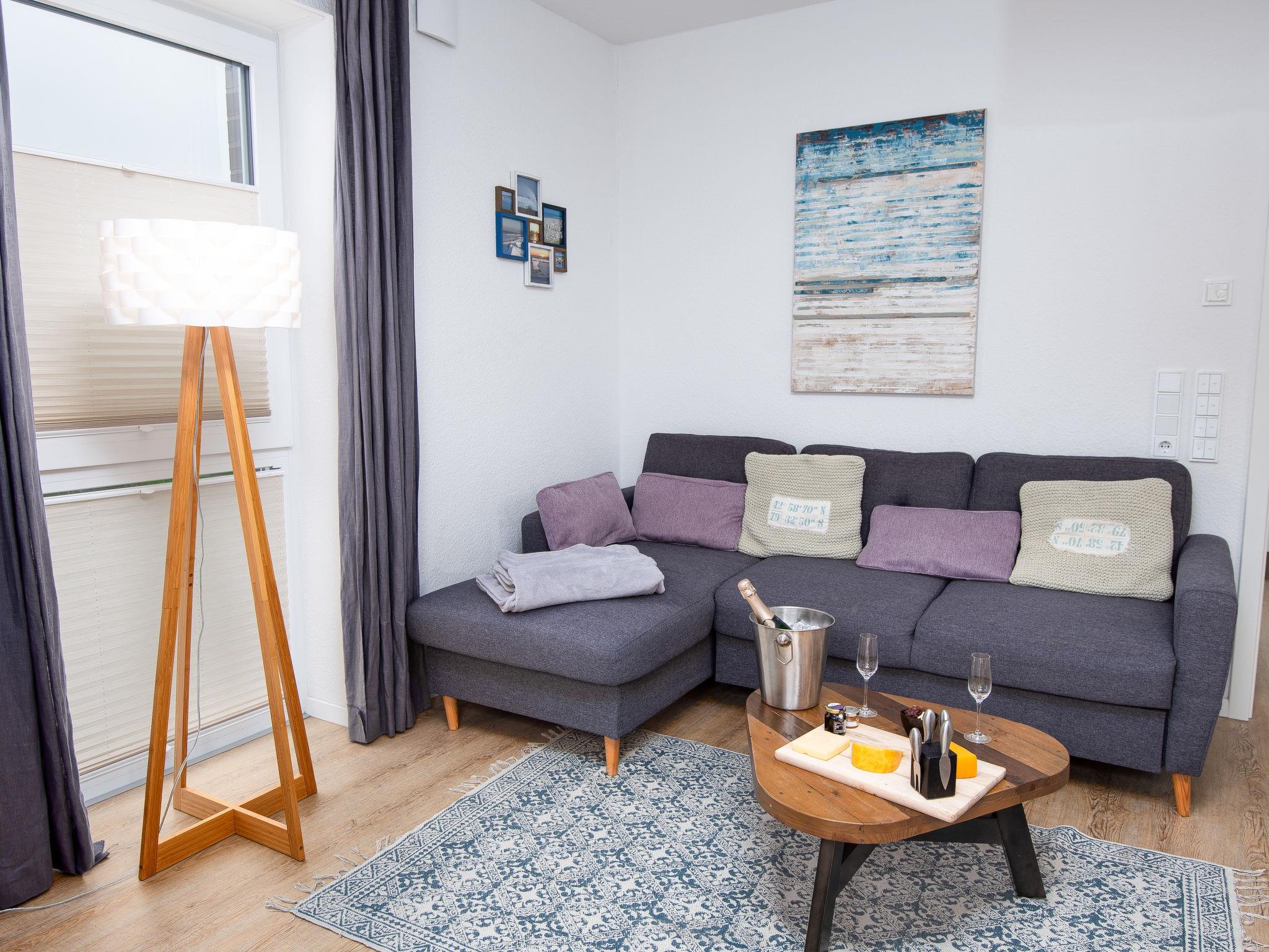 "Ankerplatz", 2-room apartment 55 m2 on 2nd floor. Partly with sloping ceilings, modern and tasteful furnishings: living/dining room 22 m2 with 1 double sofabed (180 cm, length 200 cm), cable TV (flat screen), radio and hi-fi system. Exit to the balcony. 1 room 12 m2 with 1 double bed (2 x 90 cm, length 200 cm), cable TV (flat screen). Kitchenette (oven, dishwasher, 4 ceramic glass hob hotplates, toaster, kettle, microwave, electric coffee machine). Shower/WC. Balcony 8 m2. Balcony furniture, deck chairs (2), box-room. Facilities: washing machine, iron, children's high chair (extra), hair dryer. Internet (WiFi, free). Please note: non-smokers only. Smoke alarm. Lockable bicycle shed on the property.