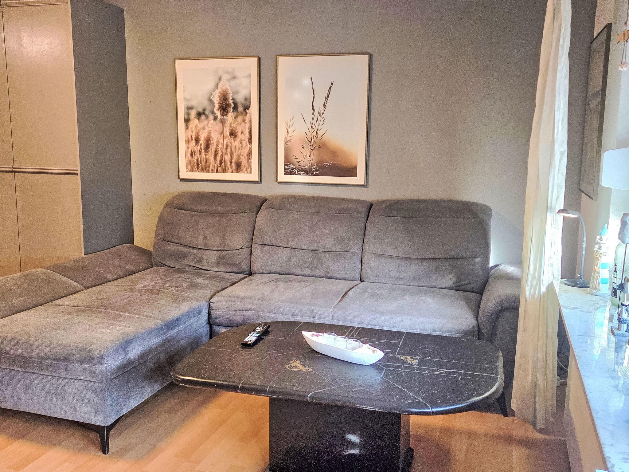 3-room terraced house 75 m2 on 2 levels. Cosy furnishings: living/dining room with satellite TV (flat screen), radio. Exit to the terrace. Kitchenette (oven, 4 ceramic glass hob hotplates, toaster, kettle, microwave, electric coffee machine). Shower, sep. WC. Top floor: 1 room with 1 double bed and satellite TV (flat screen). 1 room with 2 beds. Terrace. Terrace furniture. Facilities: washing machine, children's high chair, baby cot (extra). Internet (WiFi, free). Please note: non-smoking house. Smoke alarm.