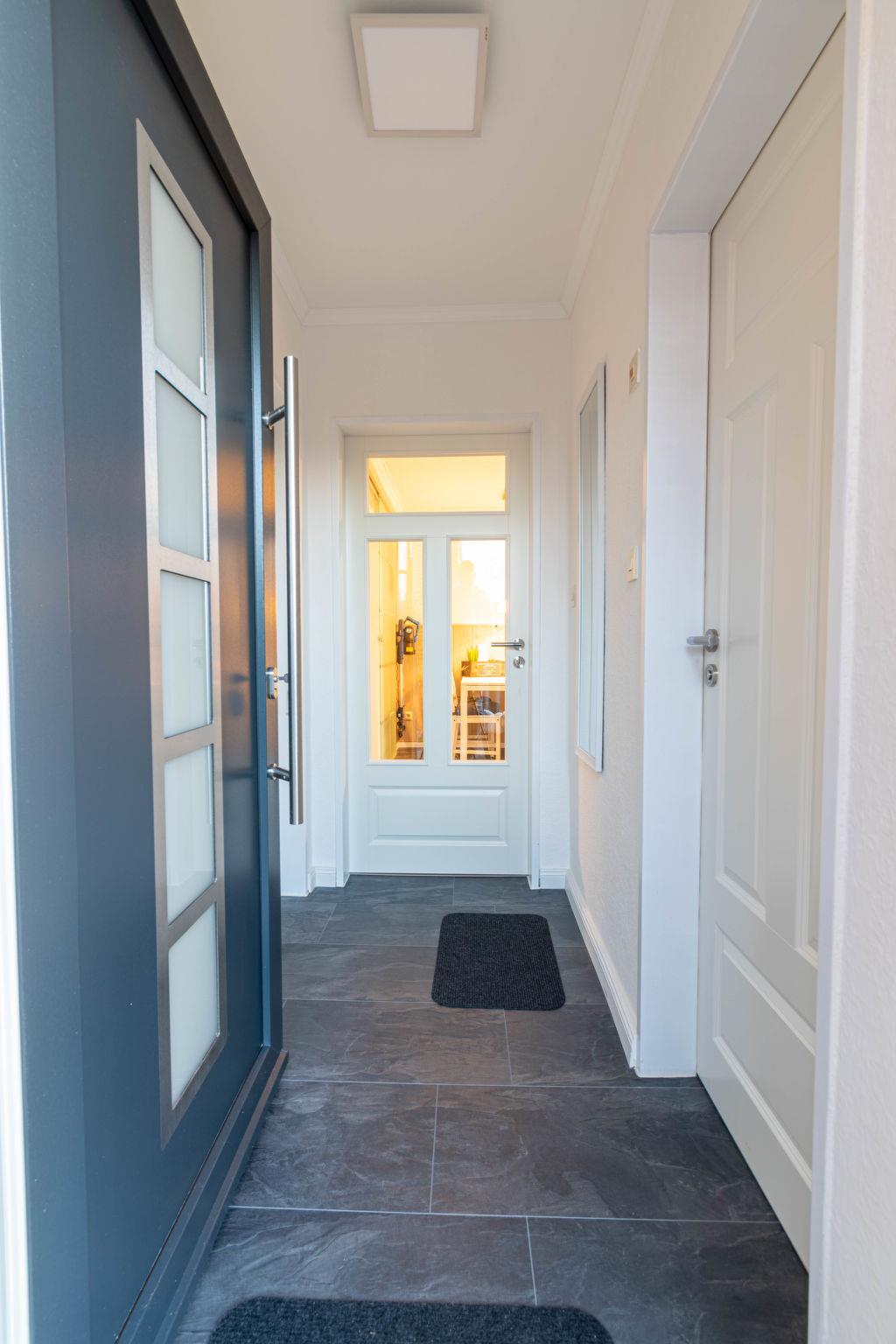 Apartment house. In the resort, 500 m from the centre, in a quiet position, 1.1 km from the sea, 1.1 km from the beach. In the house: central heating system. Parking at the house. Supermarket, restaurant 400 m, bakery 550 m, café, bus stop 250 m, railway station "Norddeich" 2 km, ferry 2 km, sandy beach 1.1 km, outdoor swimming pool 14 km, indoor swimming pool 650 m. Golf course (18 hole) 8.5 km, surf school 1.5 km, minigolf 650 m.