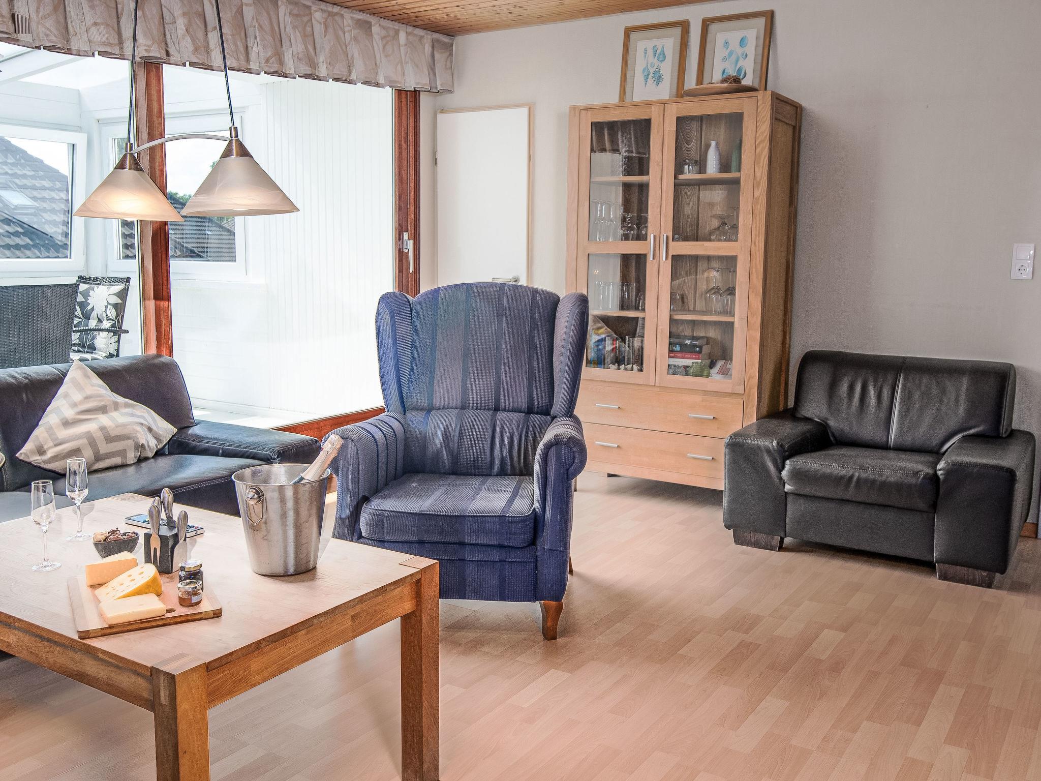 "Seeteufel", 4-room apartment 120 m2 on 2 levels, on the upper floor. Living room 23 m2 with satellite TV (flat screen), radio. Kitchen 12 m2 (oven, dishwasher, 4 ceramic glass hob hotplates, toaster, kettle, microwave, electric coffee machine) with dining nook. Exit to the balcony. Shower/WC, double hand-basin. Top floor: 2 rooms 16 m2, with sloping ceilings, each room with 1 double bed (2 x 90 cm, length 200 cm). 1 room 13 m2, with sloping ceilings with 2 beds (90 cm, length 200 cm). Sep. WC. Balcony furniture, conservatory. Facilities: children's high chair, baby changing unit. Internet (WiFi, free). Please note: non-smokers only. Maximum 1 pet/ dog allowed. Smoke alarm. Access to the winter garden through the living room.