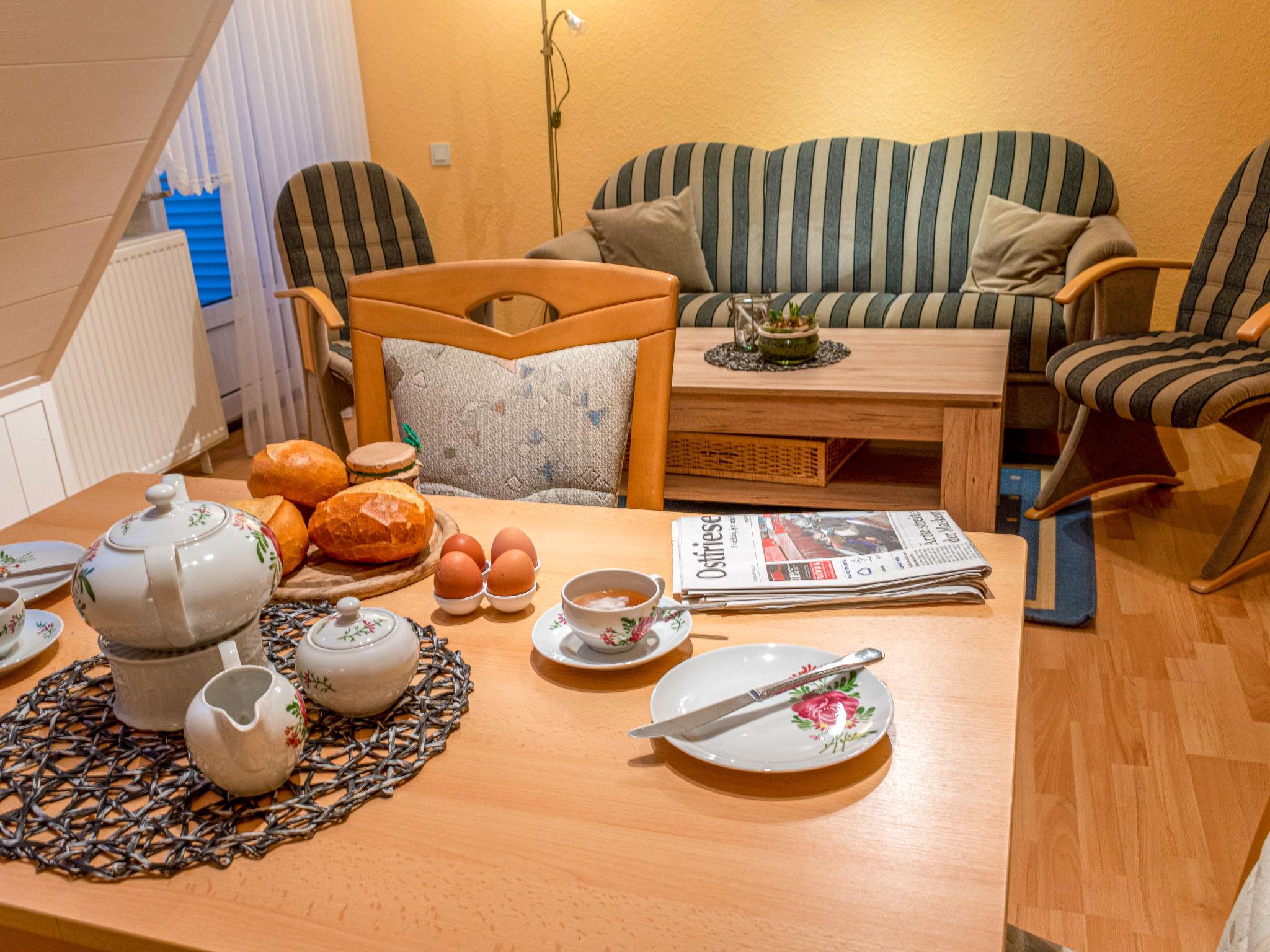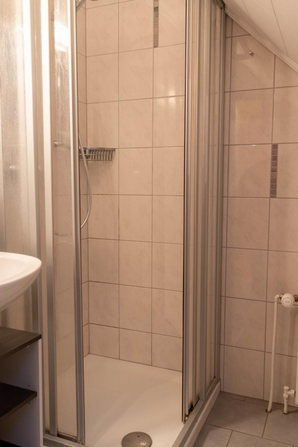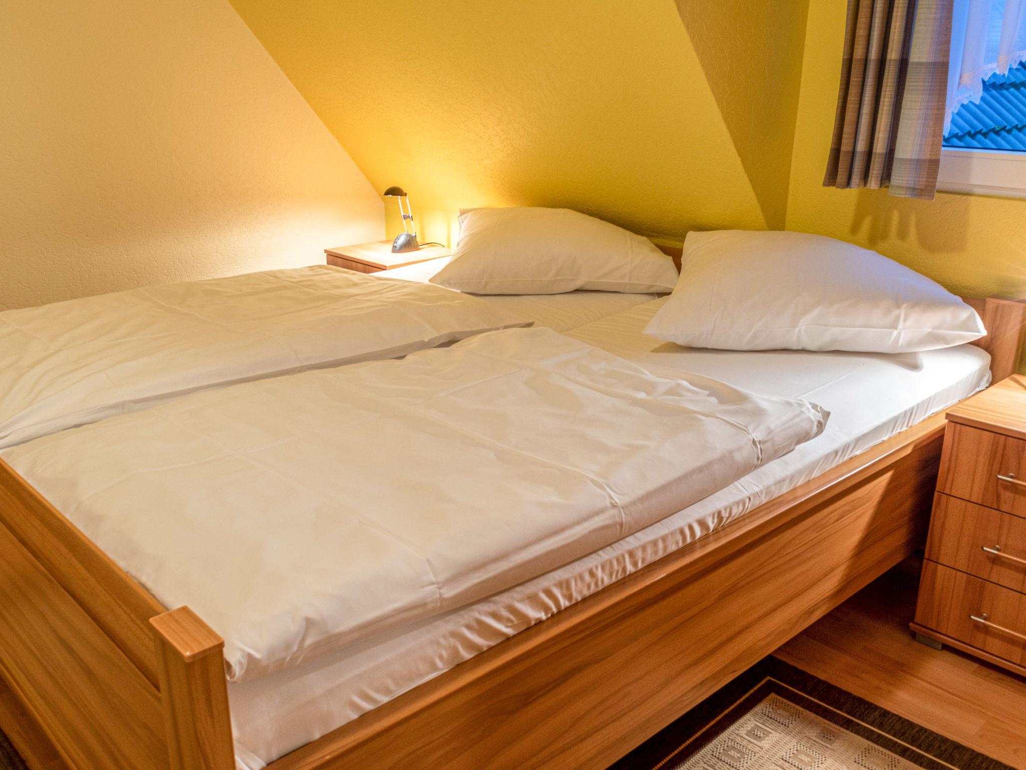 3-room apartment 50 m2, on the upper floor. Living/dining room 15 m2, with sloping ceilings with cable TV (flat screen), radio. Walk-through room 7 m2, with sloping ceilings with 1 double bed (2 x 90 cm, length 200 cm). 1 double bedroom 8 m2, with sloping ceilings with 1 double bed (2 x 90 cm, length 200 cm). Kitchenette (4 hot plates, toaster, kettle, microwave, electric coffee machine). Shower/WC. Small balcony. Balcony furniture. Facilities: children's high chair (extra). Internet (WiFi, free). Please note: fridge without freezer, non-smokers only.