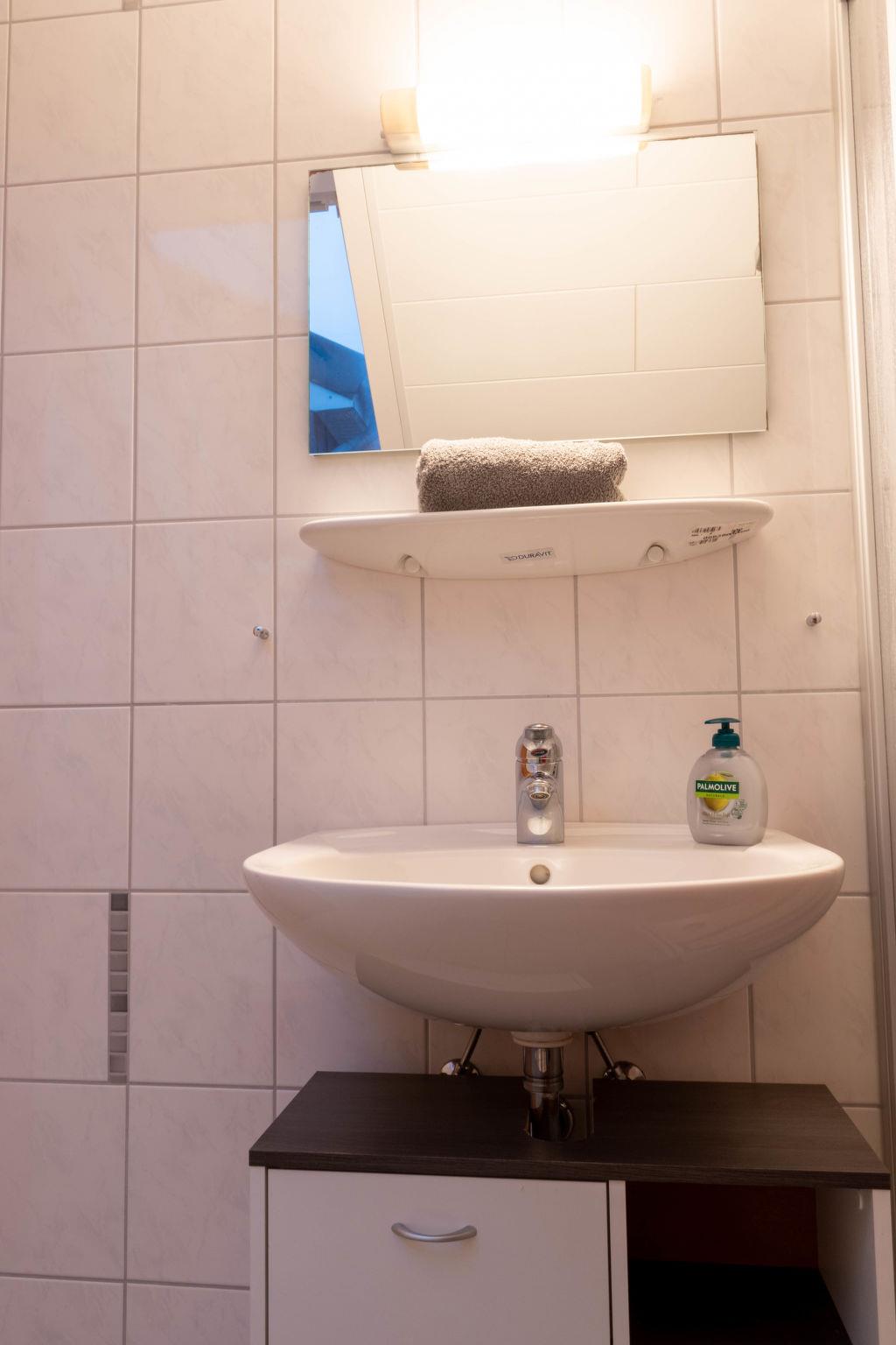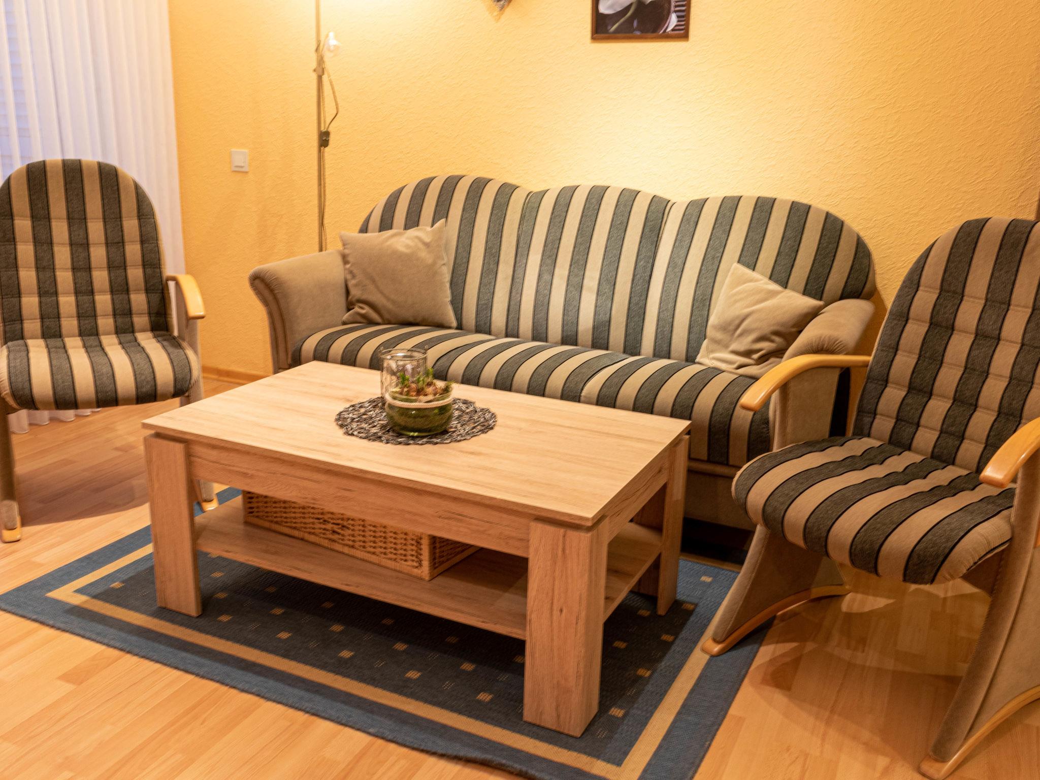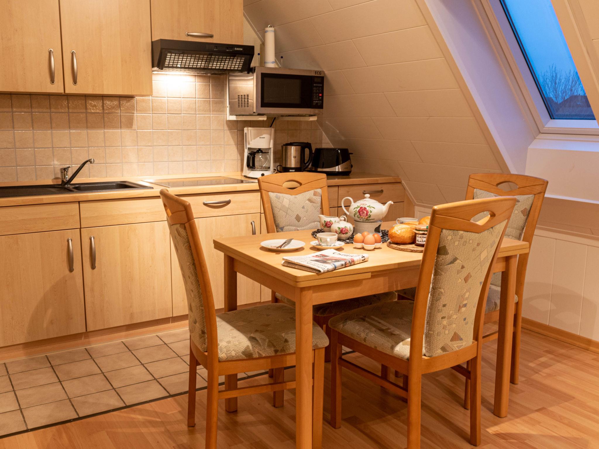 3-room apartment 50 m2, on the upper floor. Living/dining room 15 m2, with sloping ceilings with cable TV (flat screen), radio. Walk-through room 7 m2, with sloping ceilings with 1 double bed (2 x 90 cm, length 200 cm). 1 double bedroom 8 m2, with sloping ceilings with 1 double bed (2 x 90 cm, length 200 cm). Kitchenette (4 hot plates, toaster, kettle, microwave, electric coffee machine). Shower/WC. Small balcony. Balcony furniture. Facilities: children's high chair (extra). Internet (WiFi, free). Please note: fridge without freezer, non-smokers only.