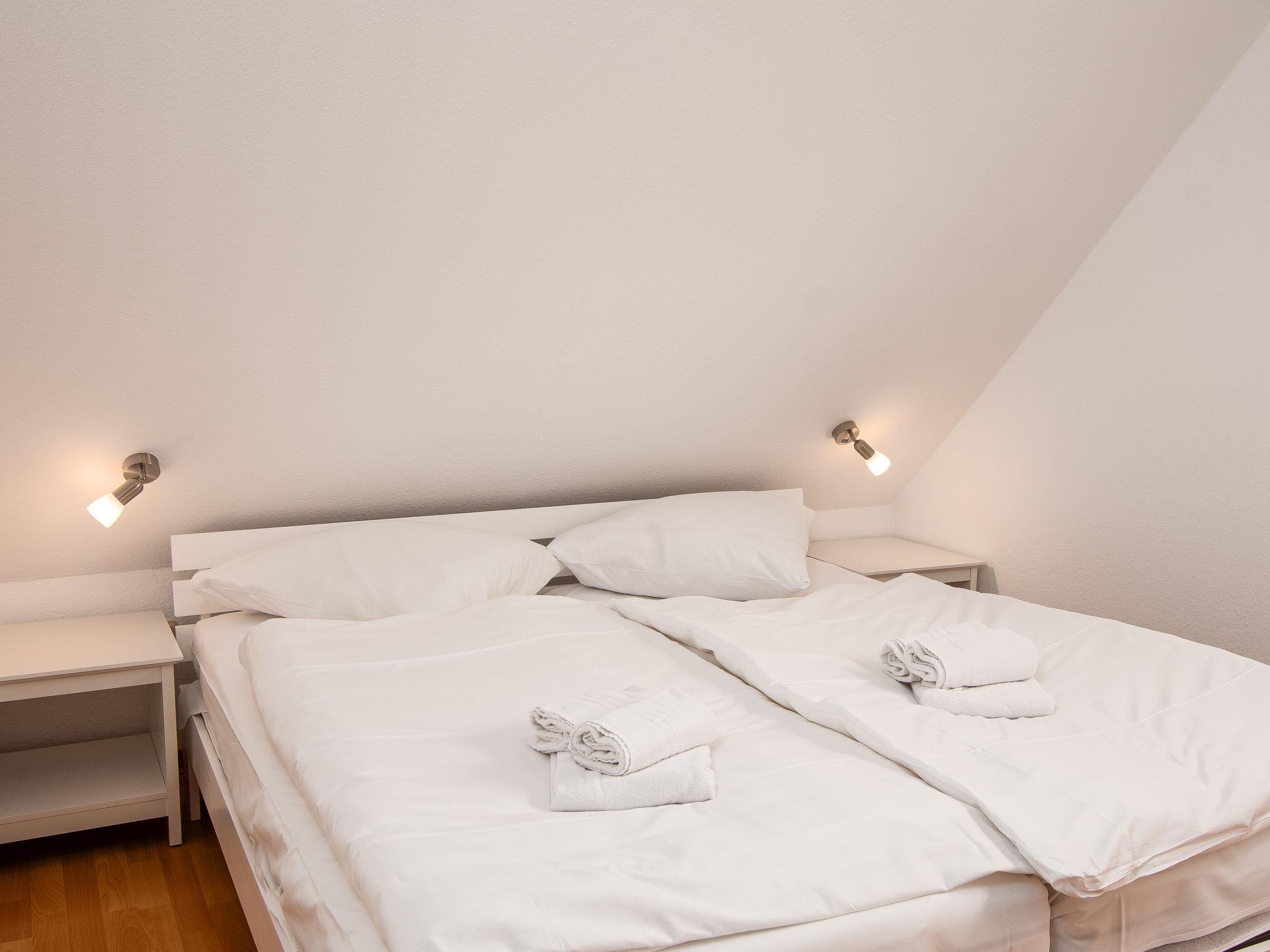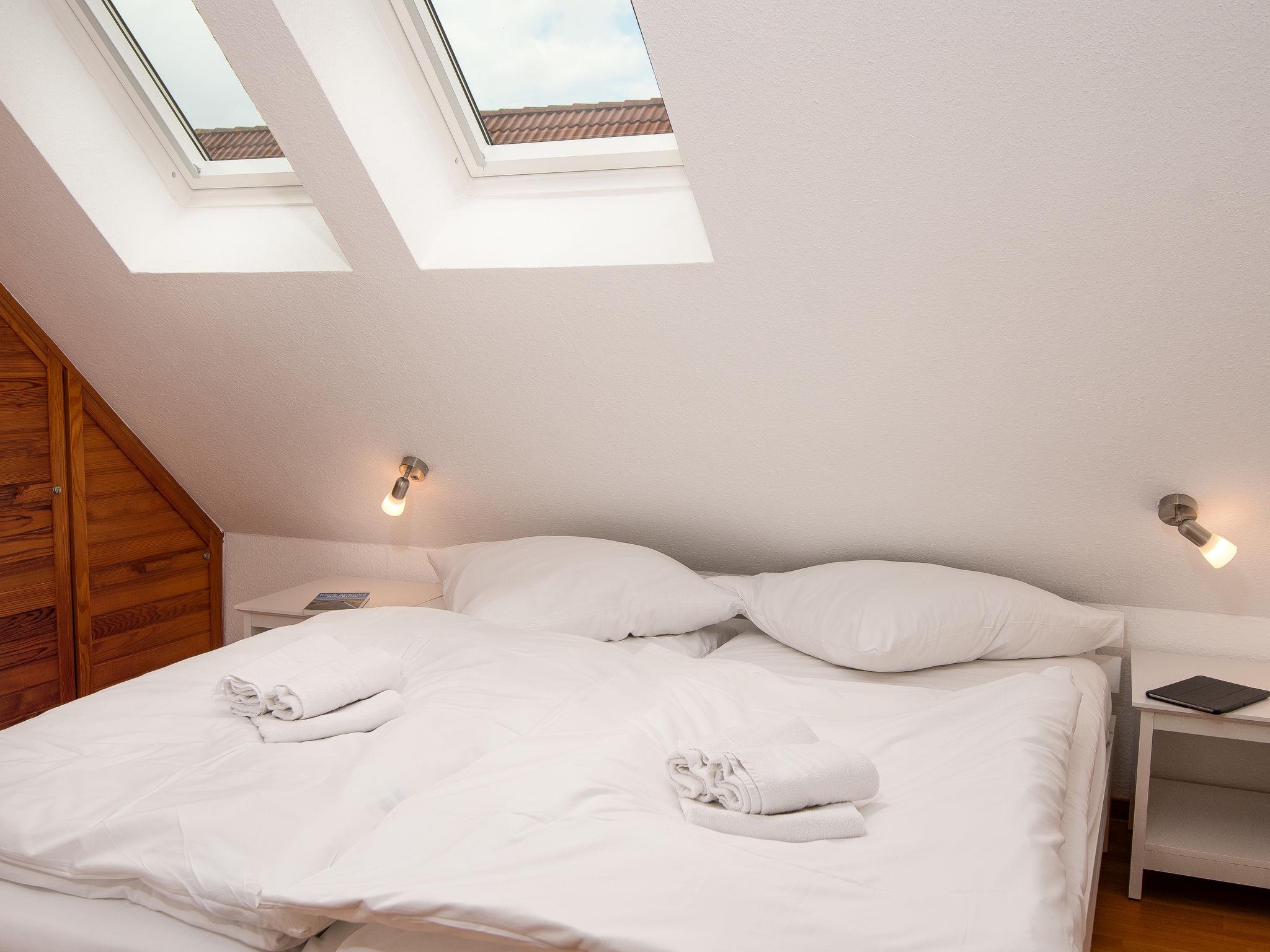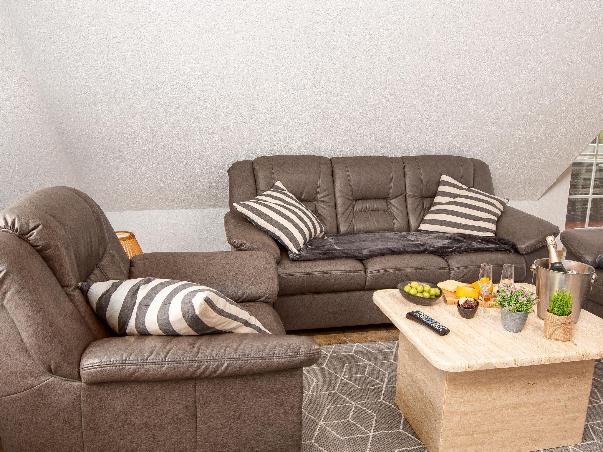 "Schönfelder", 4-room apartment 55 m2 on 2 levels. Object suitable for 4 adults + 2 children. Partly renovated in 2024, cosy furnishings: living/dining room 30 m2 with cable TV (flat screen). Exit to the balcony. 2 rooms 7 m2, each room with 1 double bed. Small kitchen (4 hot plates, oven, dishwasher, toaster, kettle, electric coffee machine, combination microwave). Shower/WC. Upper floor: 1 small room 5 m2, with sloping ceilings with 2 beds. Bath/WC. Small balcony. Balcony furniture. Facilities: washing machine, iron, children's high chair. Internet (WiFi, free). Parking at the house. Please note: non-smokers only. Smoke alarm.