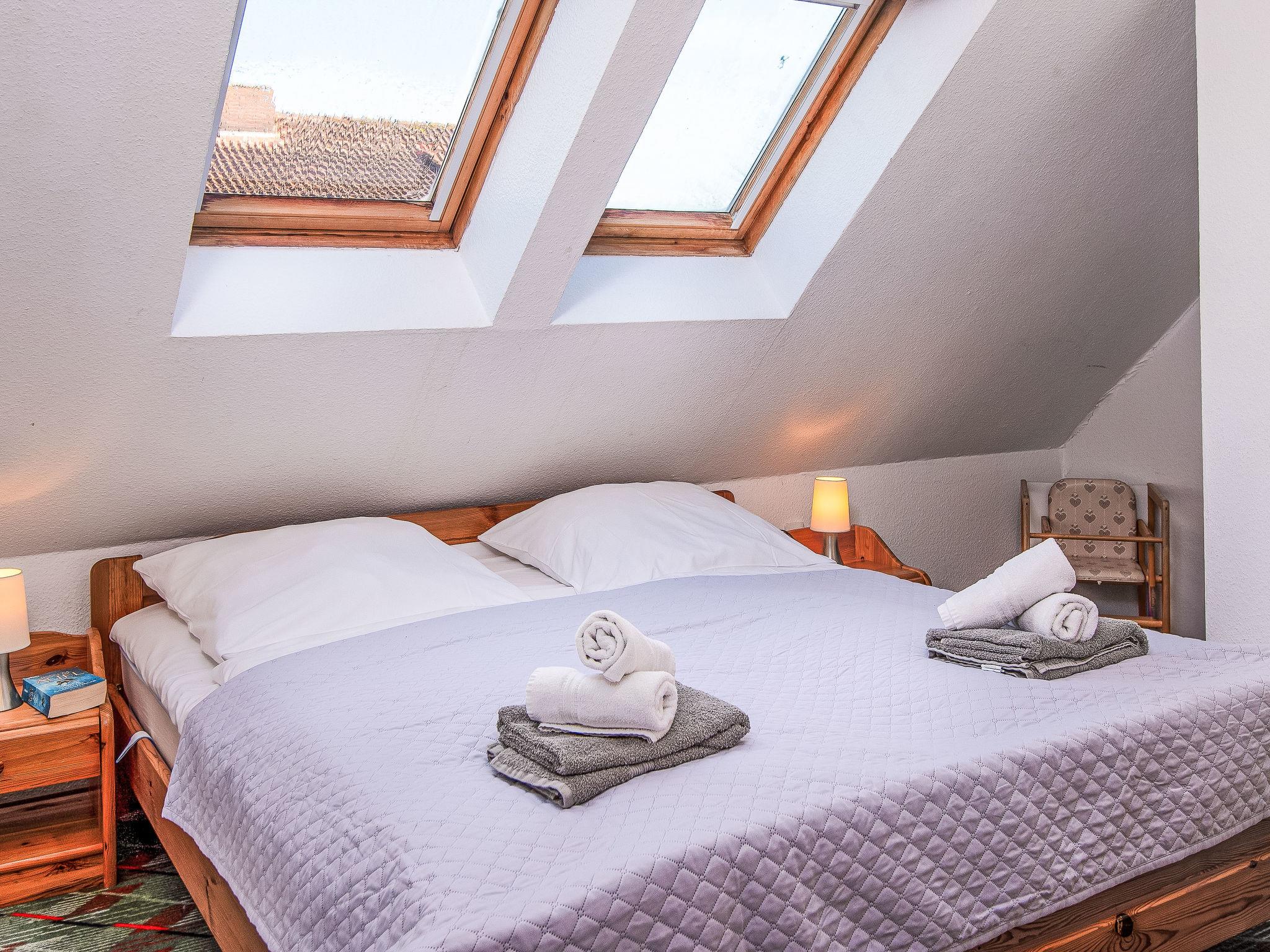 "Robbe Puck", 3-room apartment 52 m2, on the upper floor. Object suitable for 2 adults + 2 children. Simple and practical furnishings: living/dining room with sloping ceilings with dining table and cable TV (flat screen). Exit to the balcony. 1 room with sloping ceilings with 1 double bed. 1 room with sloping ceilings with 2 beds. Small kitchen (dishwasher, 4 ceramic glass hob hotplates, toaster, kettle, electric coffee machine, combination microwave). Shower/WC. Balcony. Balcony furniture. Facilities: washing machine, children's high chair, baby cot for up to 2 year olds. Internet (WiFi, free). Parking at the house. Please note: non-smokers only. Maximum 1 pet/ dog allowed.