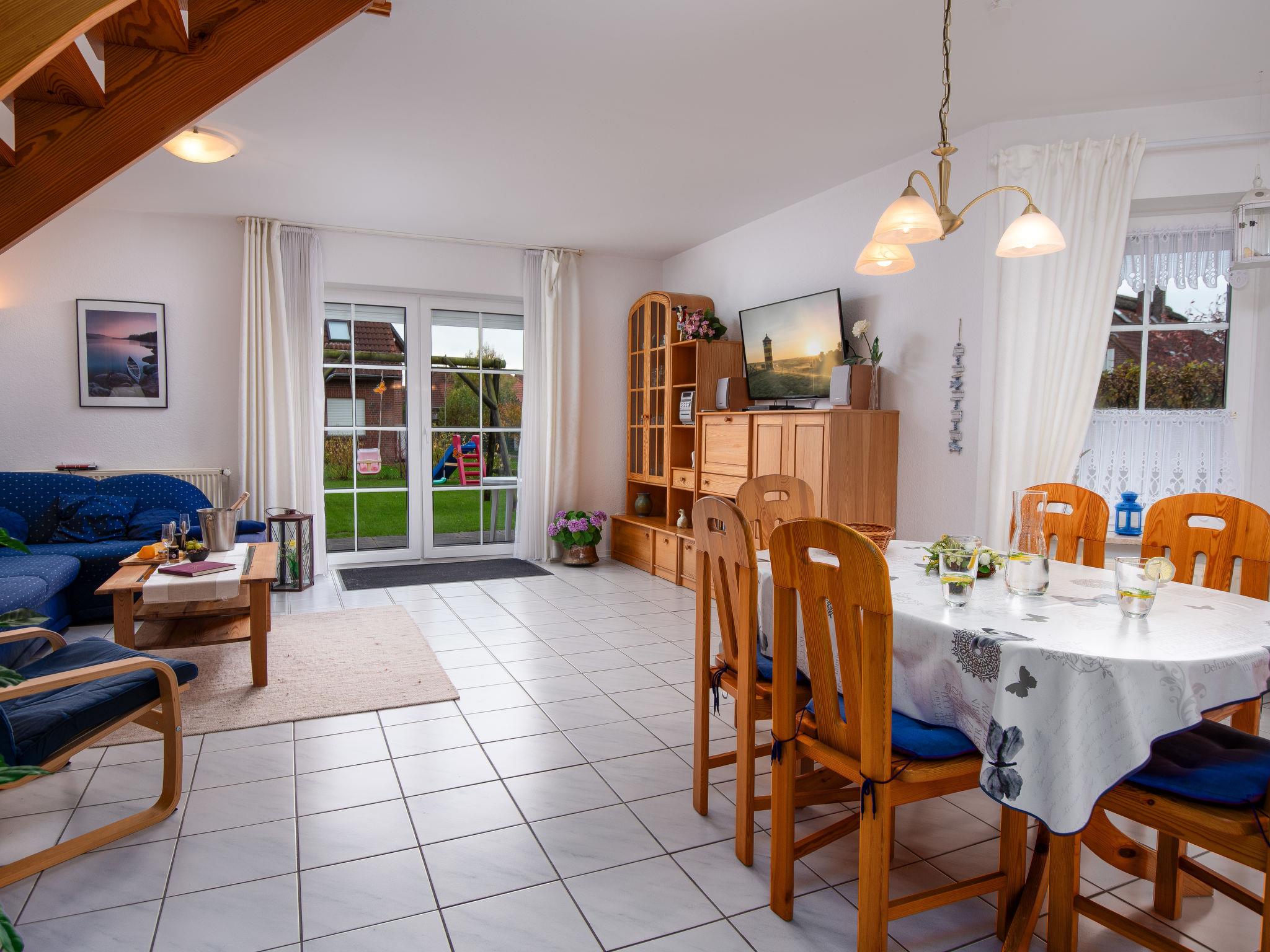 Beautiful semi-detached house "Siegerland". In the resort, in a quiet position, 1.5 km from the sea, 1.5 km from the beach. Private: large garden with lawn and flowers. In the house: central heating system. Parking at the house. Supermarket 900 m, restaurant 1 km, bakery 600 m, café 1 km, bus stop 600 m, railway station 2 km, ferry 2 km, sandy beach 1.5 km, outdoor swimming pool 14 km, indoor swimming pool 900 m. Golf course (18 hole) 8 km, minigolf 900 m.
