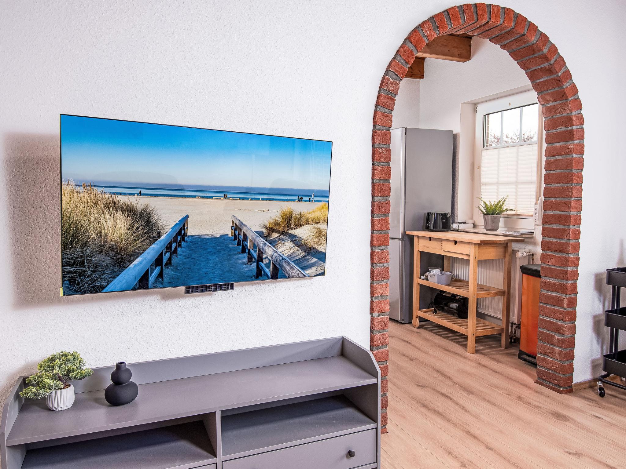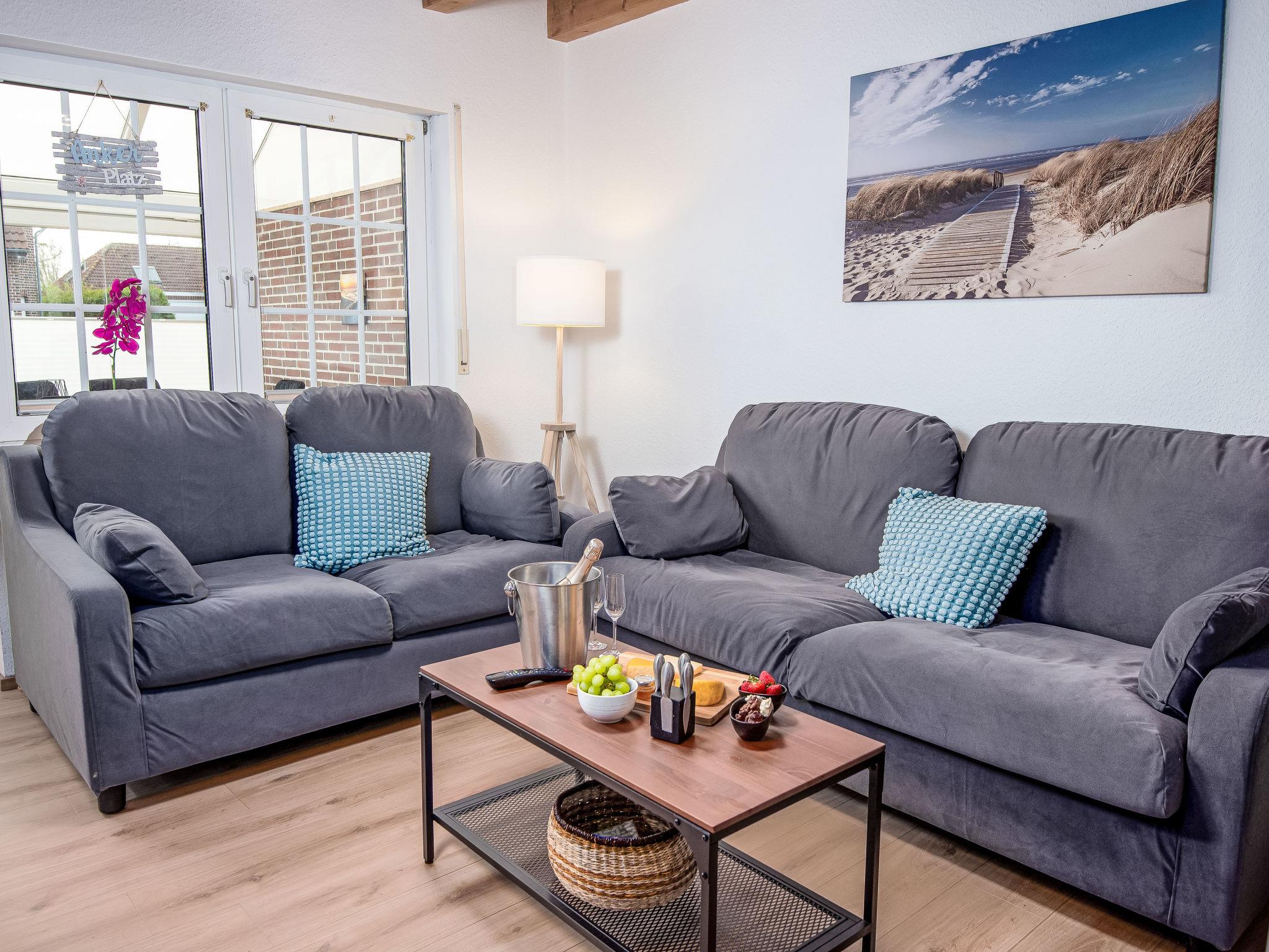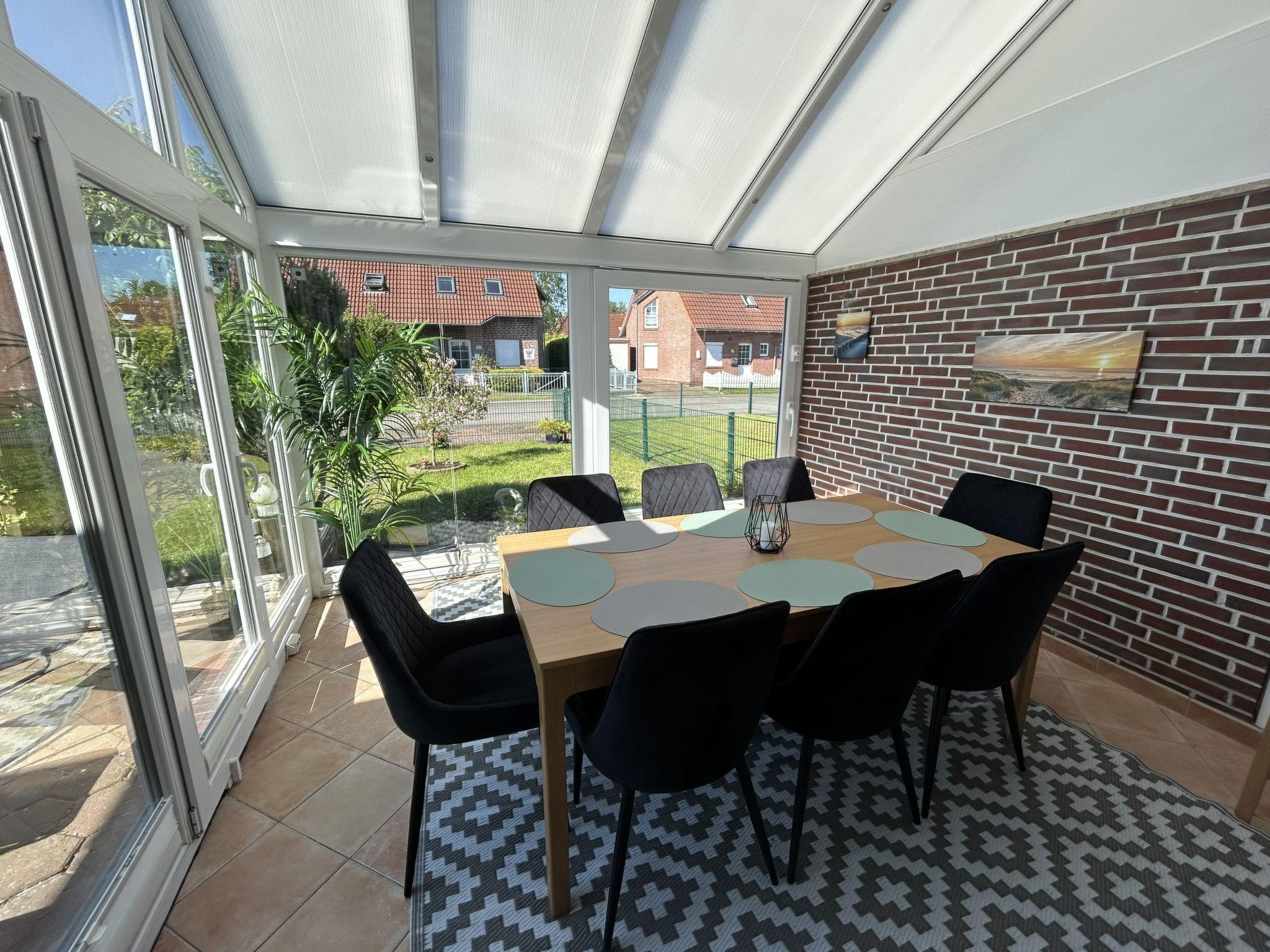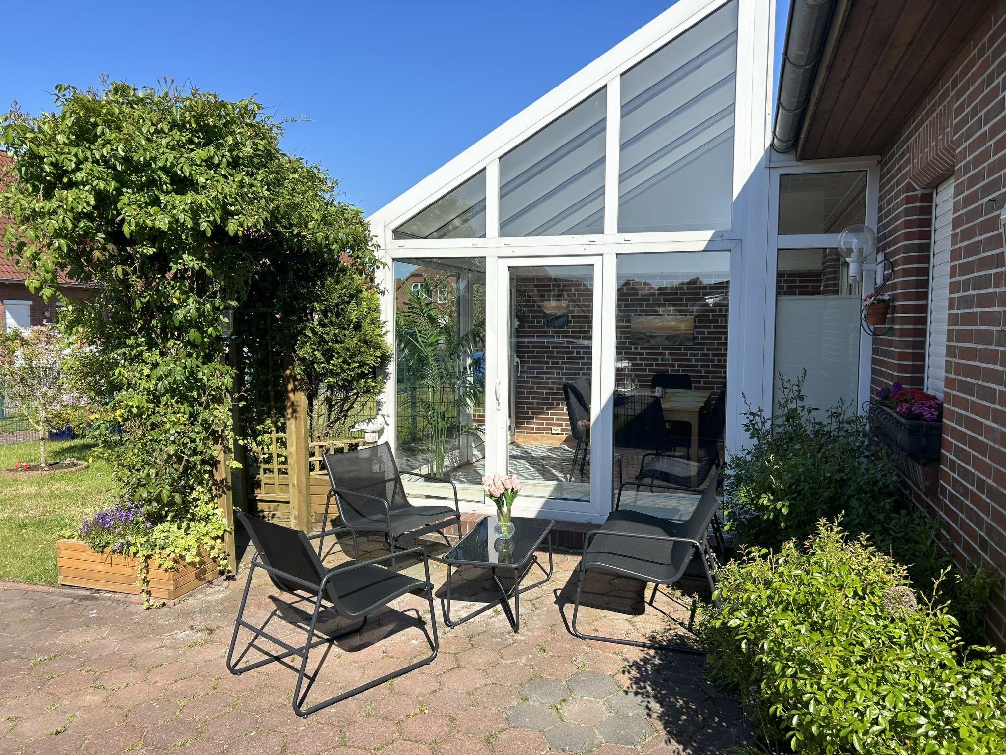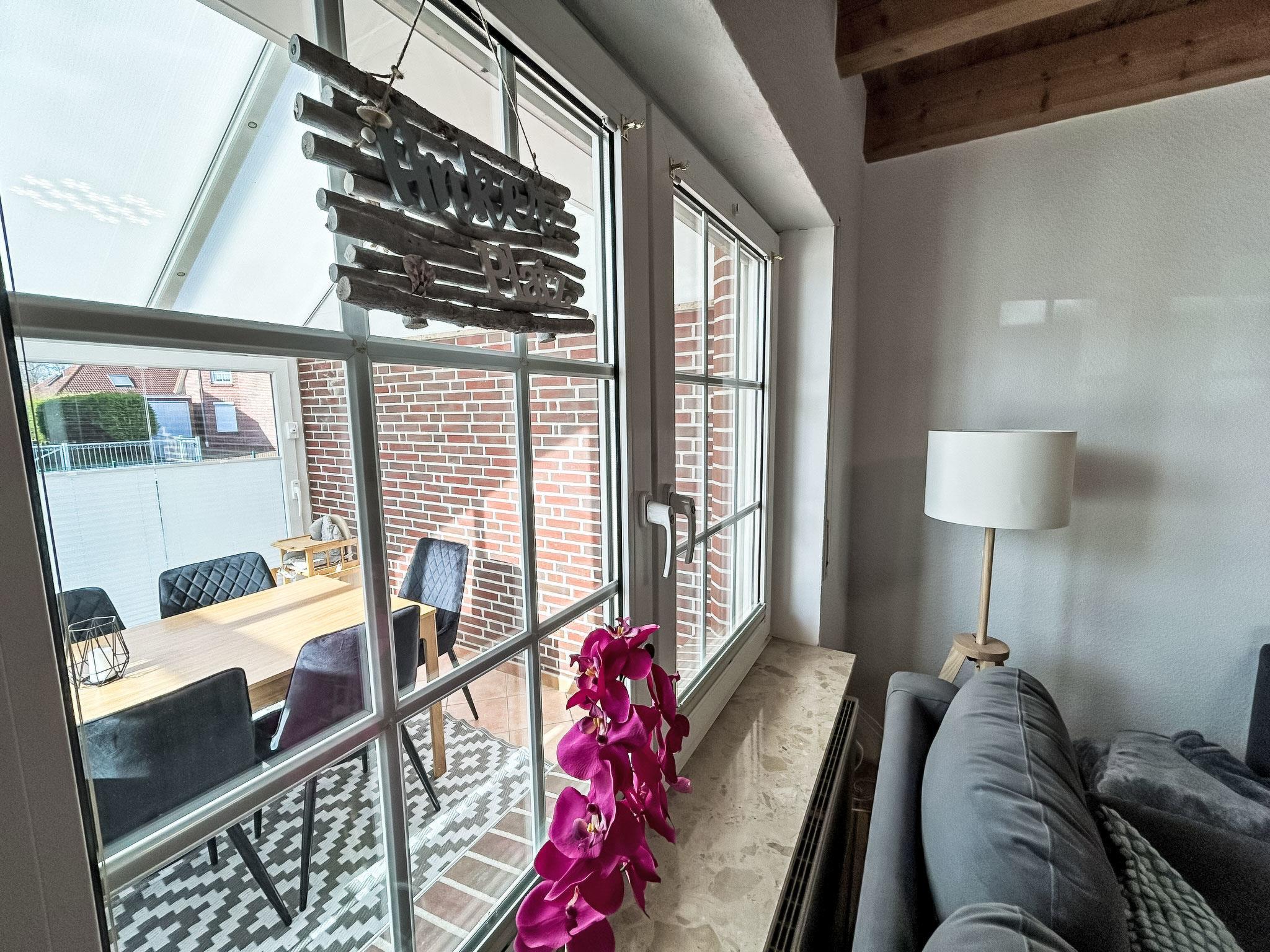 "Flunder", 6-room semi-detached house 90 m2 on 2 levels. Object suitable for 6 adults + 2 children. Partly renovated in 2024, modern and tasteful furnishings: living room with satellite TV (flat screen). 1 room with 1 double bed (2 x 90 cm, length 200 cm). 1 children's room with 1 x 2 bunk beds (90 cm, length 200 cm). Open kitchen (oven, dishwasher, 4 ceramic glass hob hotplates, toaster, kettle, electric coffee machine, Capsules for coffee machine (Senseo) extra). Shower/WC. Upper floor: 1 room with 2 beds (100 cm, length 200 cm). 1 room with 1 double bed and satellite TV (flat screen). Shower/WC. Small terrace. Terrace furniture, barbecue, conservatory. Facilities: washing machine, children's high chair. Internet (WiFi, free). Please note: suitable for families. Smoke alarm. The house has a workstation, 50mbit wireless LAN and an OLED Smart TV. The winter garden can be heated.