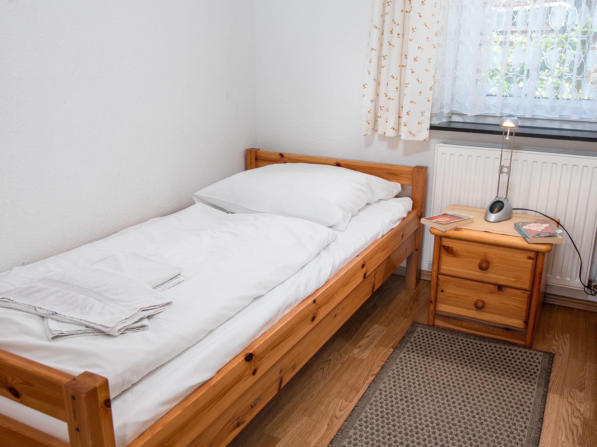 "Langeoog 12", 2-room semi-detached house 35 m2, on the ground floor. Cosy furnishings: living/dining room with satellite TV (flat screen), radio. Exit to the terrace. 1 room with 2 beds (90 cm, length 200 cm). Kitchenette (4 ceramic glass hob hotplates, toaster, kettle, microwave, electric coffee machine). Shower/WC. Terrace furniture, box-room. Please note: non-smokers only. Smoke alarm.