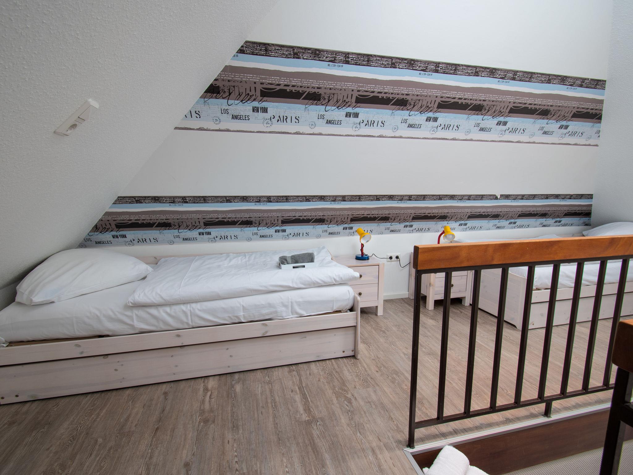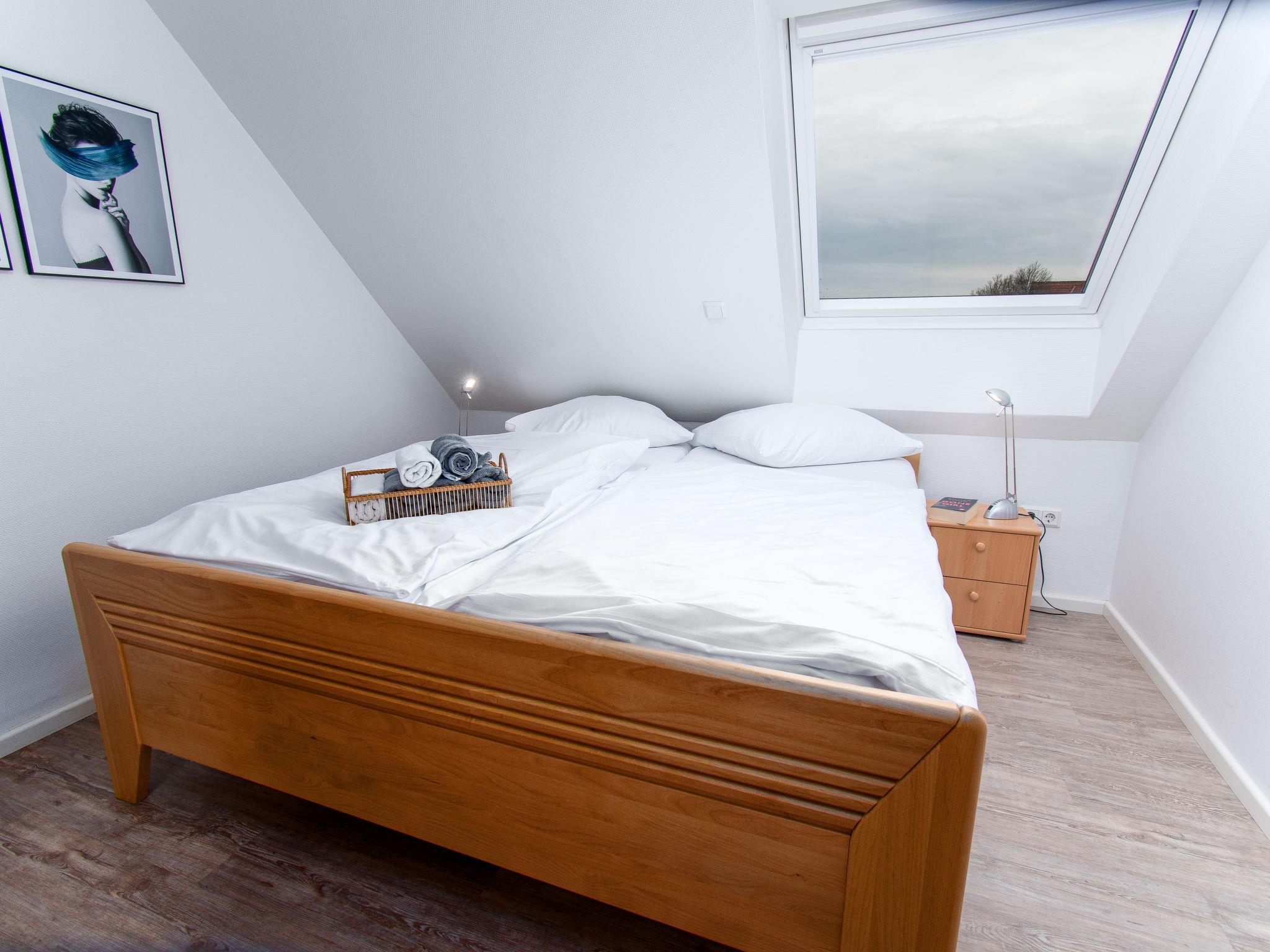 "Sanddüne", 3-room apartment 58 m2 on 2 levels on 1st floor. Tasteful and cosy furnishings: living/dining room 18 m2 with satellite TV (flat screen). Exit to the balcony. 1 room 10 m2 with 1 double bed (2 x 90 cm, length 200 cm). Kitchenette (dishwasher, 4 ceramic glass hob hotplates, toaster, microwave, electric coffee machine). Shower/WC. Upper floor: (steep stair), 1 room 10 m2, with sloping ceilings with 2 beds (90 cm, length 200 cm). Small balcony. Balcony furniture. Facilities: children's high chair (extra). Internet (WiFi, free). Please note: non-smokers only. Smoke alarm. Access to the upper floor via a staircase. DE2981.471.1