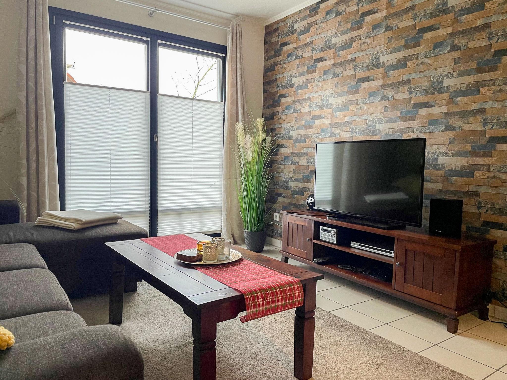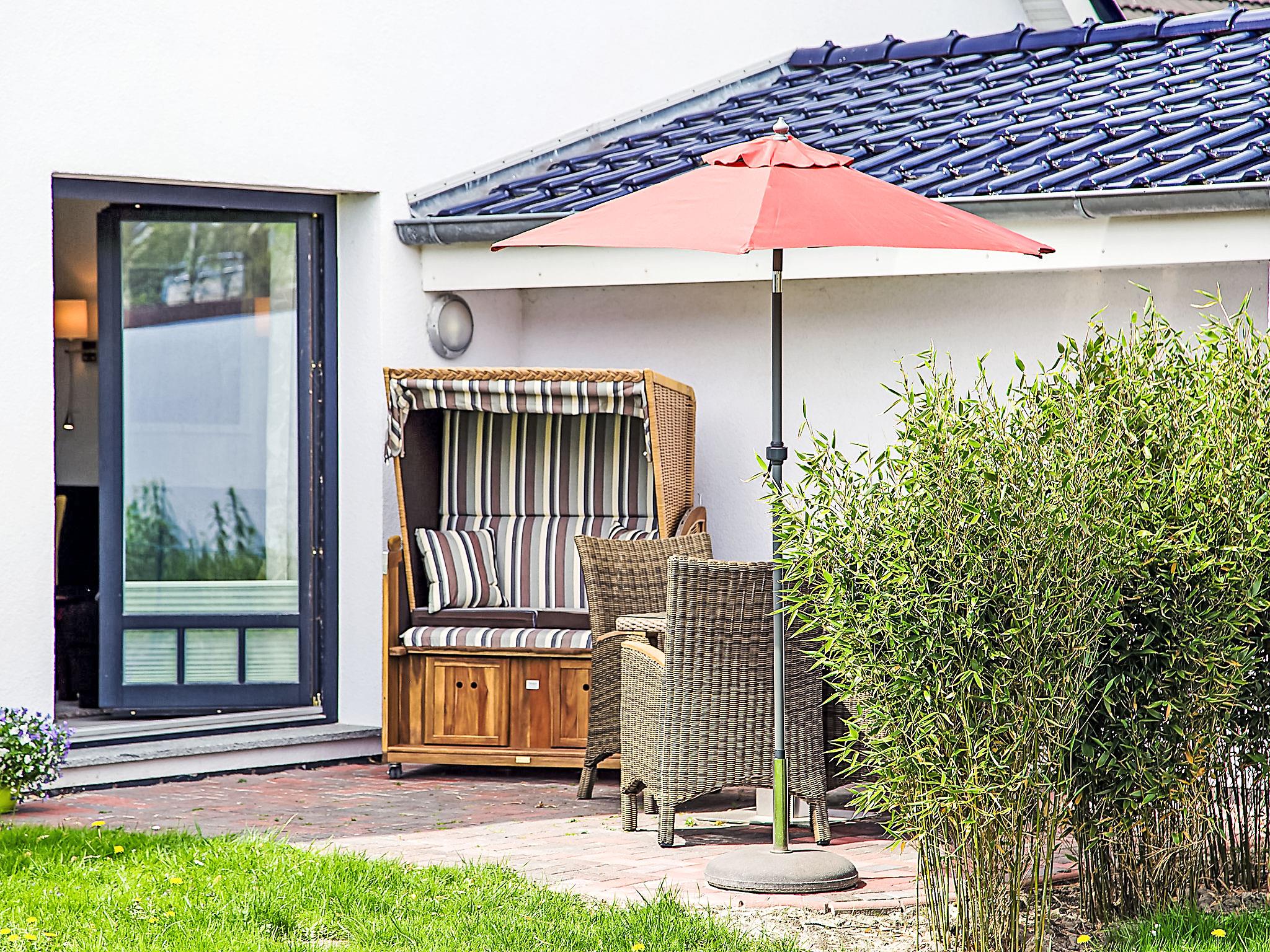 "Witthuus-Borkum", 2-room apartment 42 m2, on the ground floor. Comfortable and stylish furnishings: living/dining room 19 m2 with satellite TV (flat screen), DVD. Exit to the terrace. 1 room 11 m2 with 1 double bed (2 x 90 cm, length 200 cm). Kitchenette (oven, dishwasher, 4 ceramic glass hob hotplates, toaster, kettle, microwave, electric coffee machine). Shower/WC. Underfloor heating. Terrace 12 m2, east facing position. Terrace furniture, barbecue. Facilities: children's high chair, hair dryer. Internet (WiFi, free). Parking at the house. Please note: non-smokers only. Beach chair on the terrace. Garden (fenced) for shared use. In case of reservation of extra beds, a double sofa bed (130 cm, 200 cm long) is available in the lounge.
