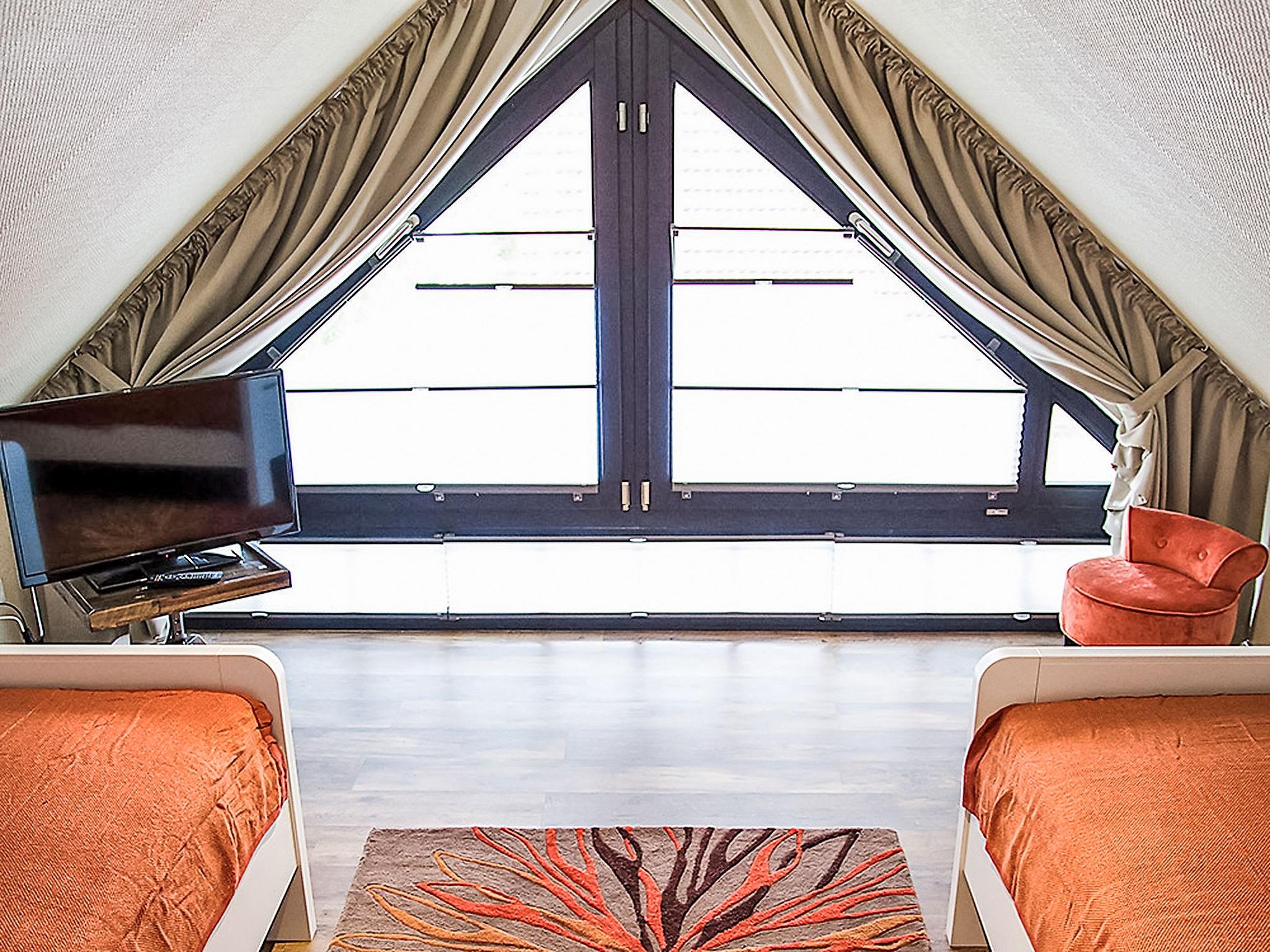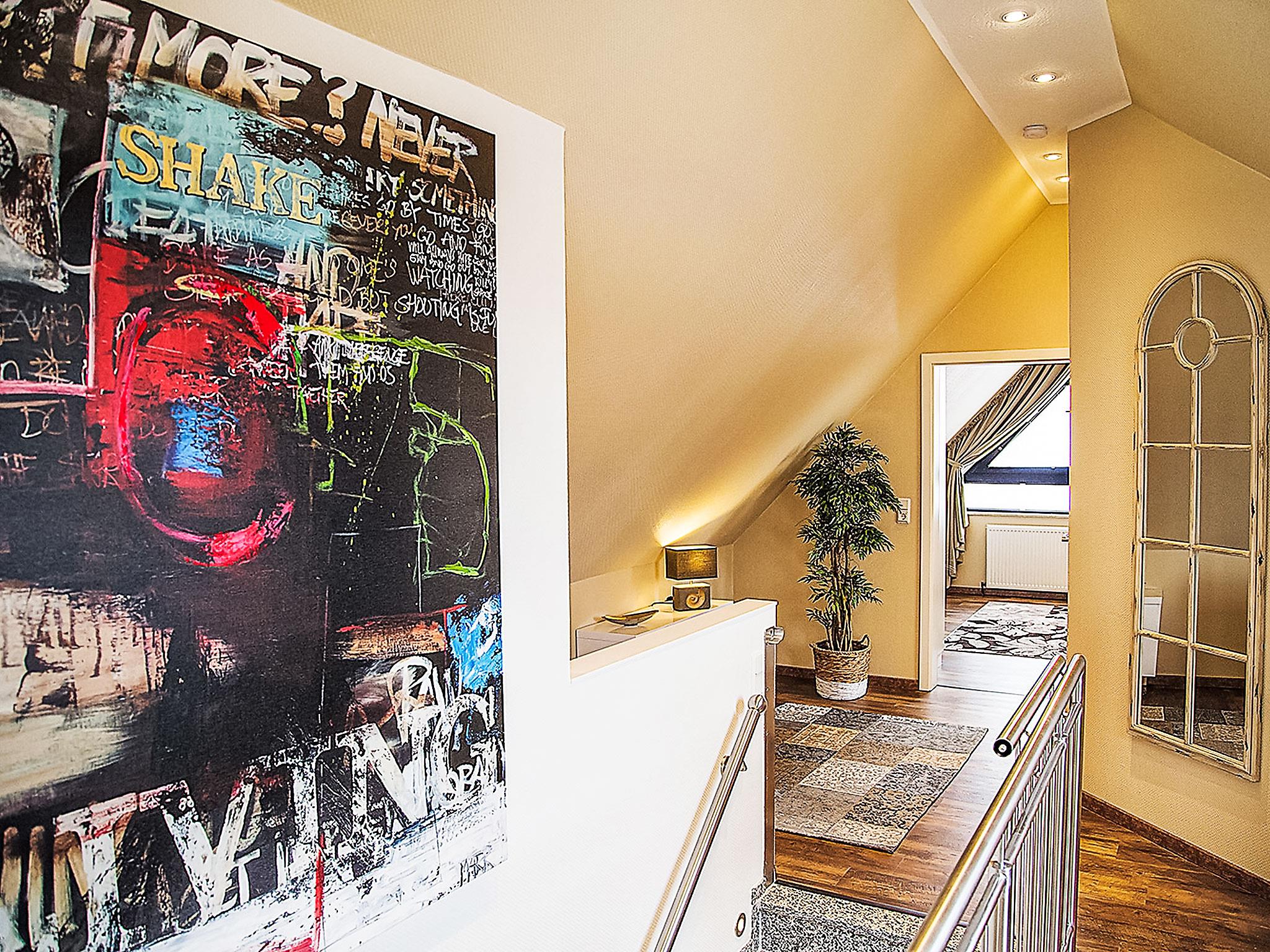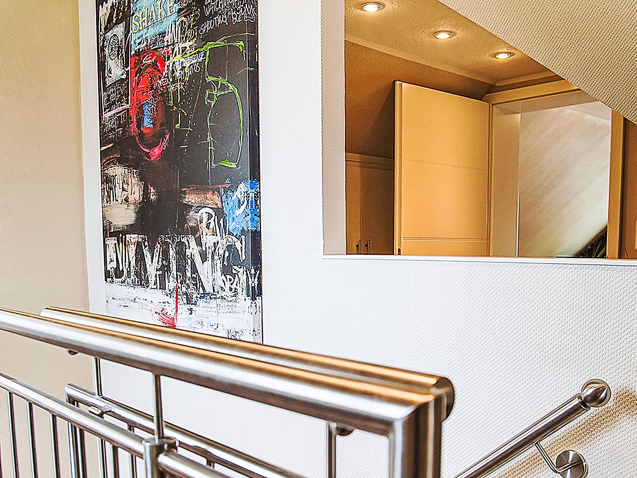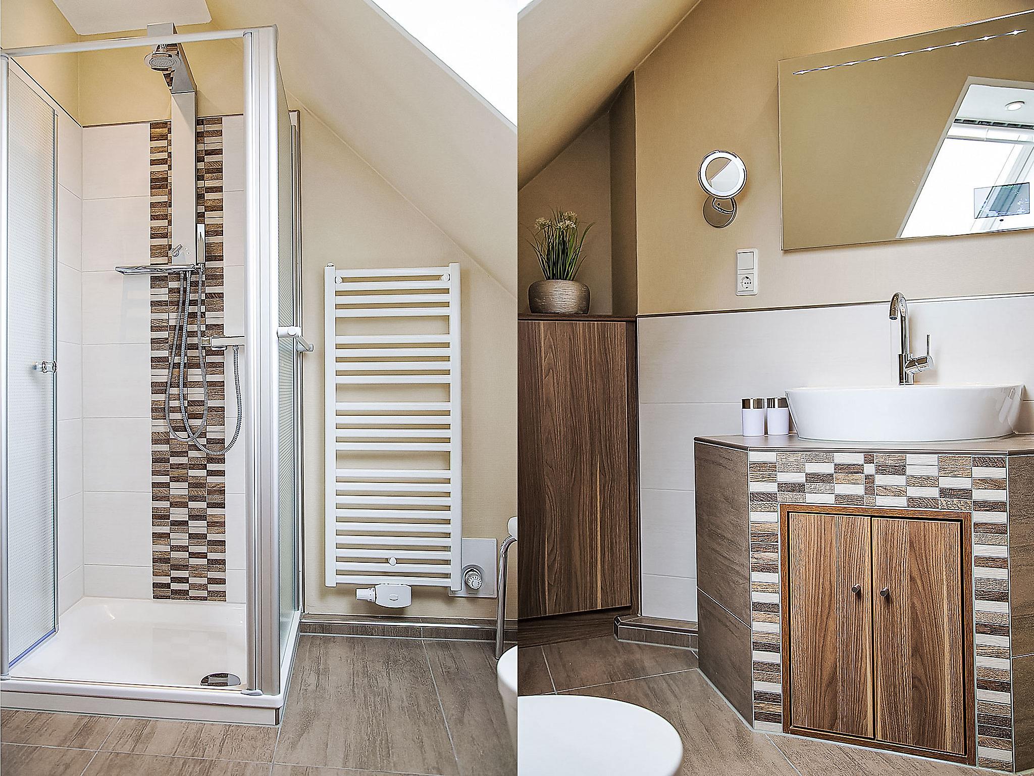 "Witthuus-Wangerooge", 3-room apartment 75 m2, on the top floor. With sloping ceilings, very comfortable and stylish furnishings: living/dining room 30 m2 with satellite TV (flat screen), radio, CD-player and DVD. 1 room 13 m2 with 1 double bed (2 x 90 cm, length 200 cm), satellite TV (flat screen). 1 room 13 m2 with 2 beds (90 cm, length 200 cm), satellite TV (flat screen). Kitchenette (oven, dishwasher, 4 induction hot plates, toaster, kettle, microwave, electric coffee machine). Shower/WC. Underfloor heating. Beautiful view of the resort. Facilities: children's high chair. Internet (WiFi, free). Parking at the house. Please note: non-smokers only.