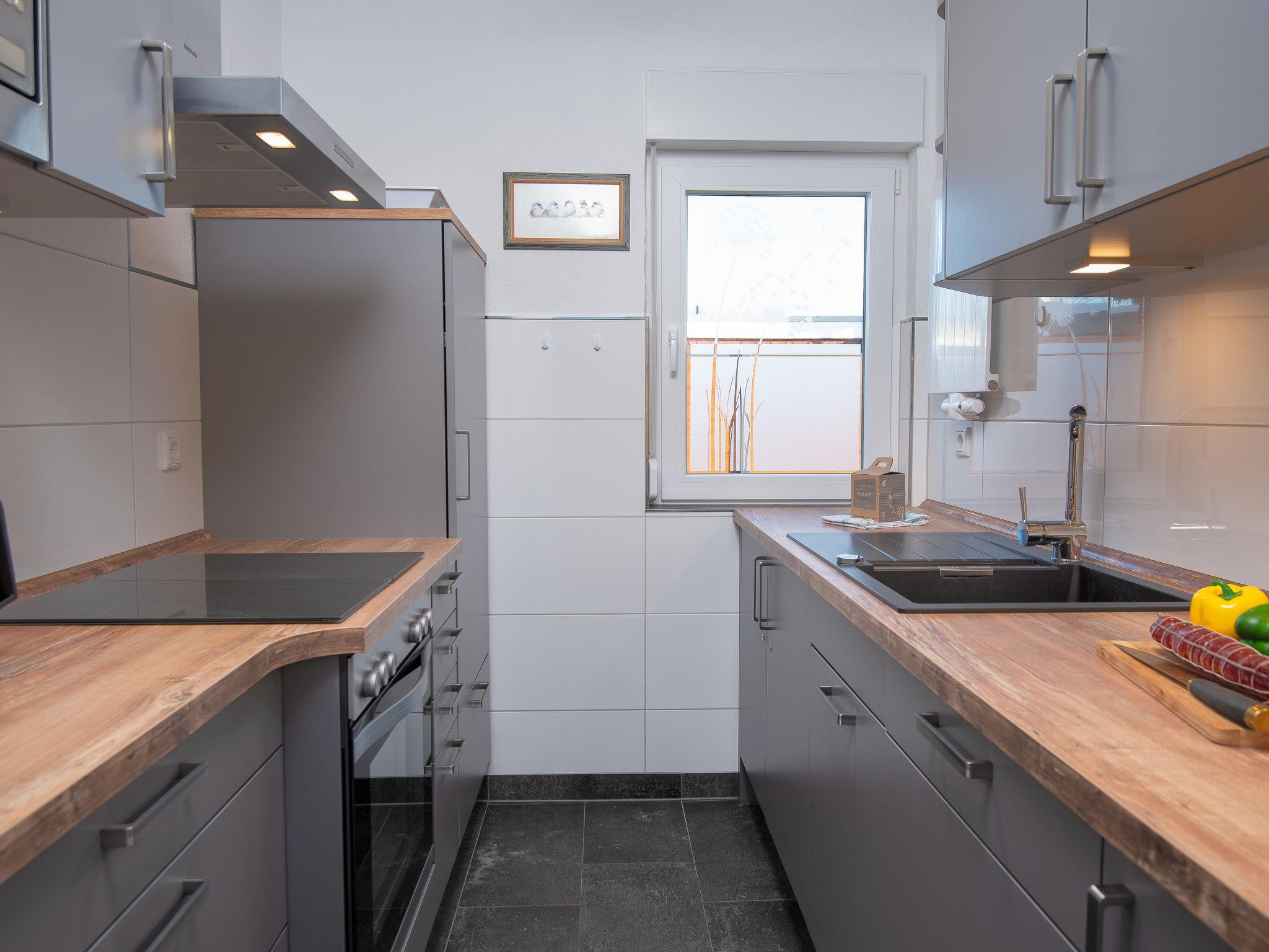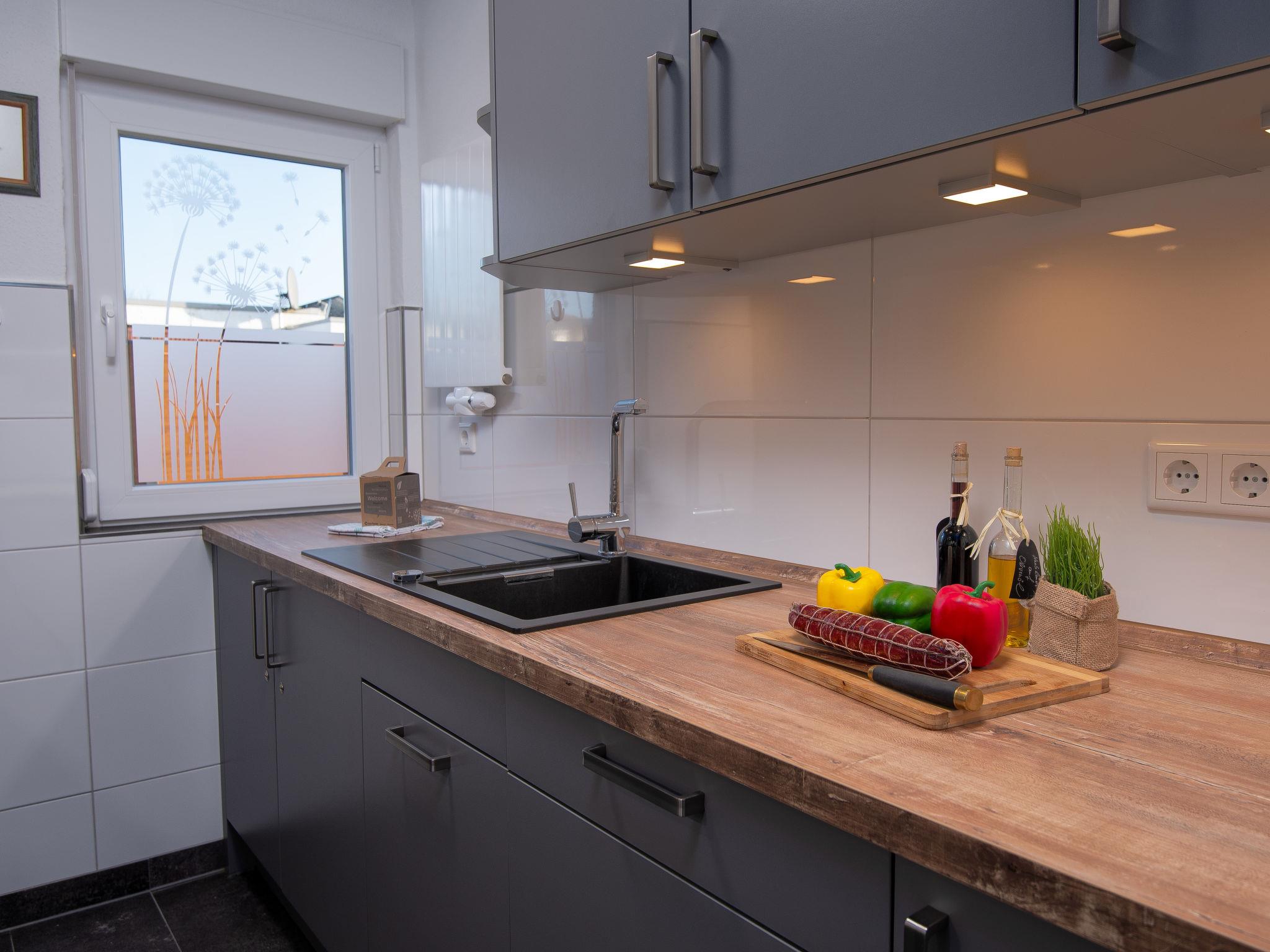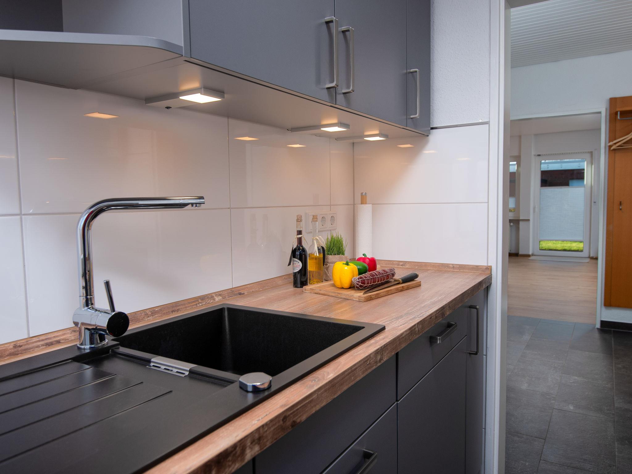 "Kotthaus", 3-room terraced house 73 m2, on the ground floor. Modern and tasteful furnishings: living/dining room 29 m2 with satellite TV (flat screen), CD-player and DVD. Exit to the terrace. 1 room 11 m2 with 1 double bed (2 x 90 cm, length 200 cm). 1 room 11 m2 with 2 beds (90 cm, length 200 cm). Kitchen (oven, dishwasher, 4 ceramic glass hob hotplates, toaster, kettle, microwave, electric coffee machine). Shower/WC, sep. WC. Terrace furniture, barbecue (portable). Facilities: children's high chair (extra). Internet (WiFi, free). Please note: non-smoking house. Smoke alarm.