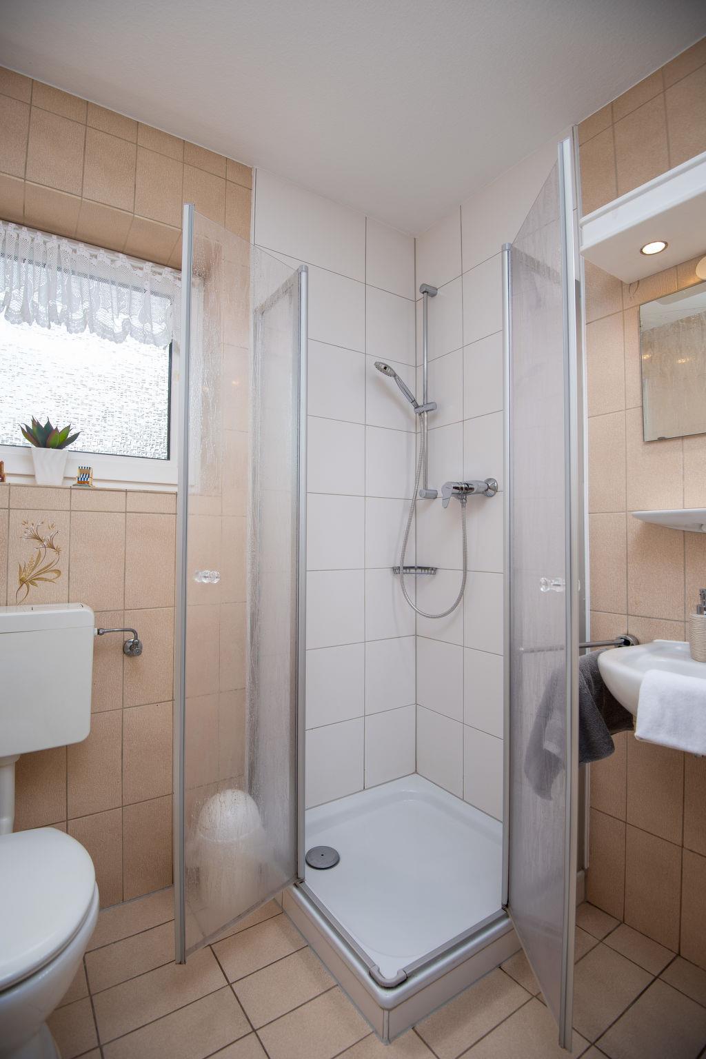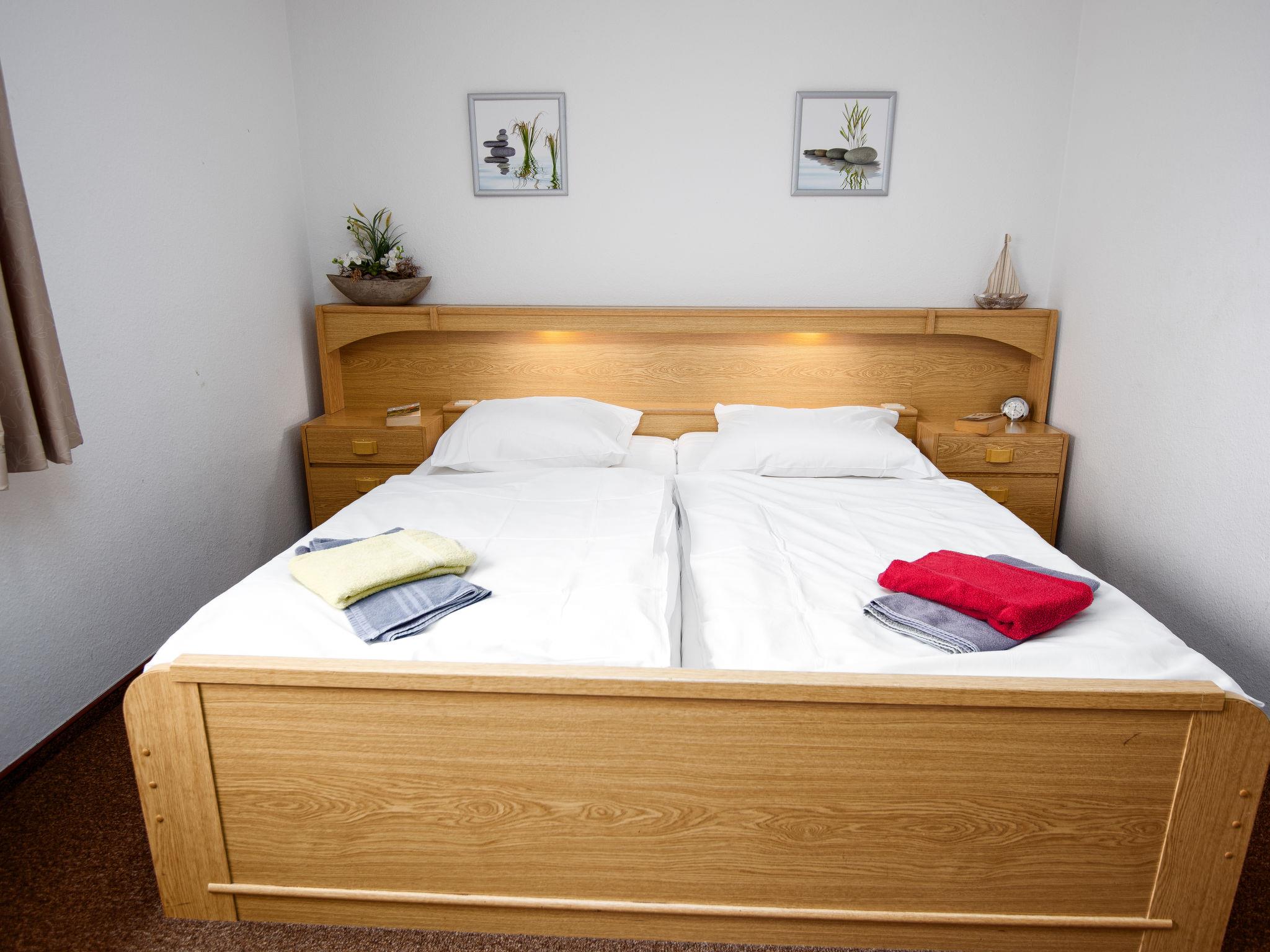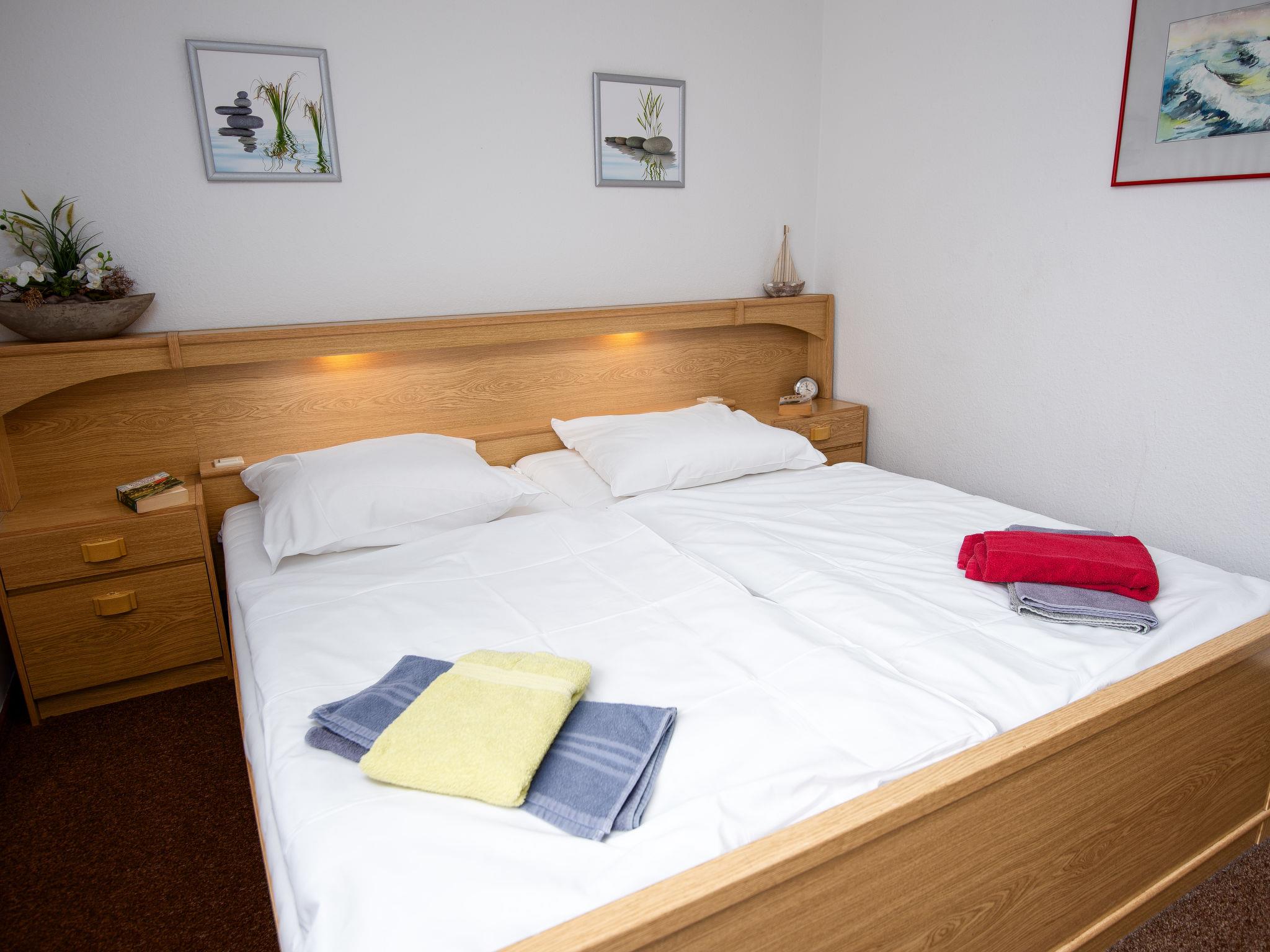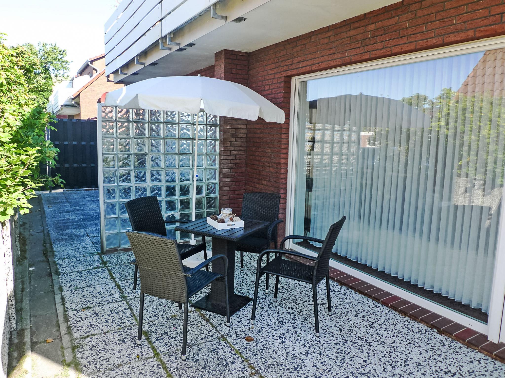 2-room apartment 47 m2, on the ground floor. Living/dining room 23 m2 with 1 double sofabed and satellite TV (flat screen), radio and electric shutters. Exit to the terrace. 1 room 11 m2 with 1 double bed (2 x 90 cm, length 200 cm). Kitchenette (oven, dishwasher, 4 ceramic glass hob hotplates, toaster, kettle, microwave, electric coffee machine). Shower/WC. Terrace 8 m2. Terrace furniture. Facilities: children's high chair. Internet (WiFi, free). Please note: non-smokers only. Smoke alarm. DE11361