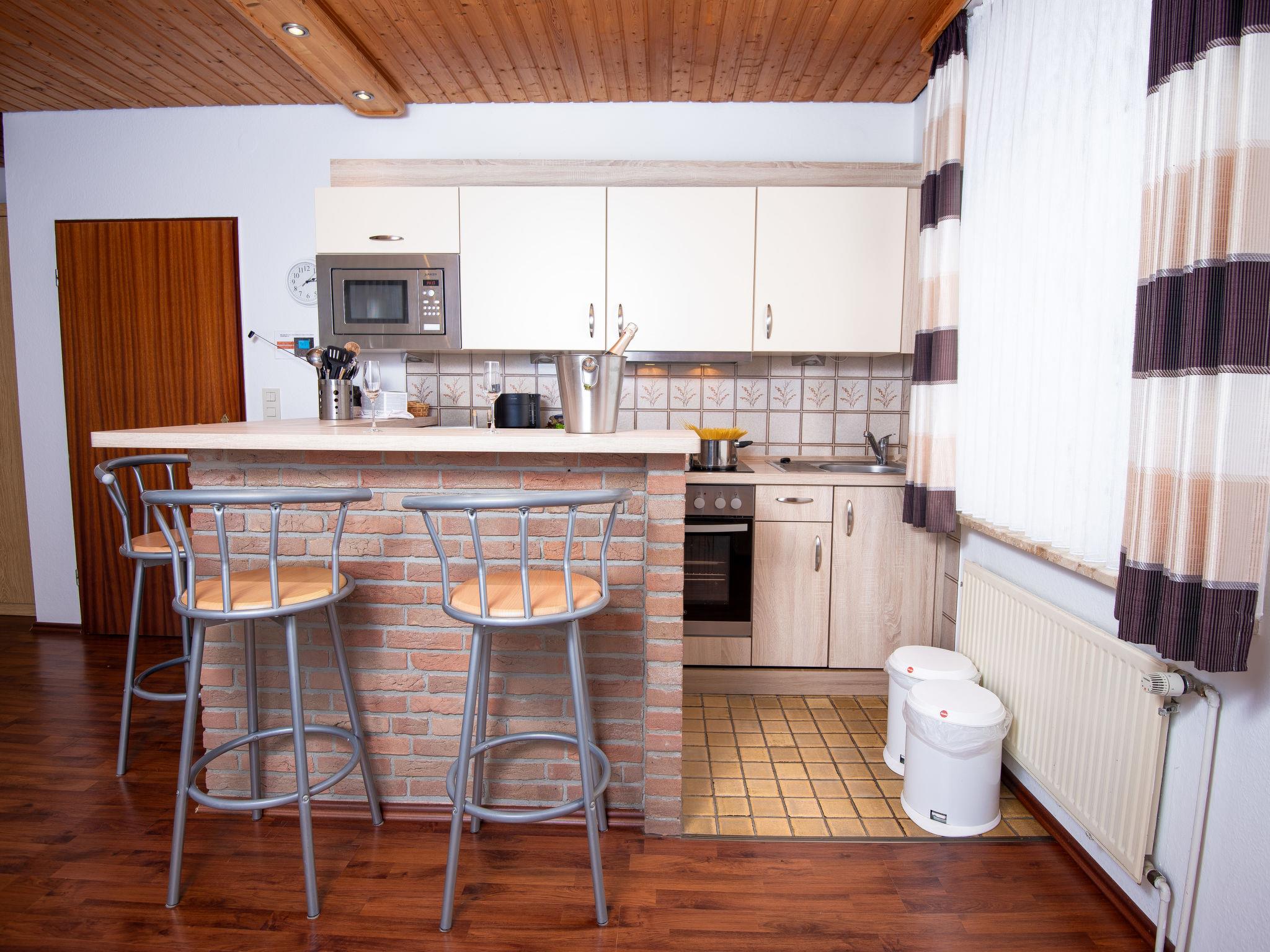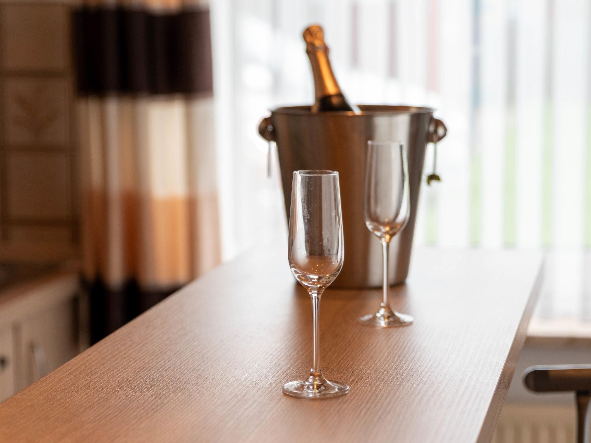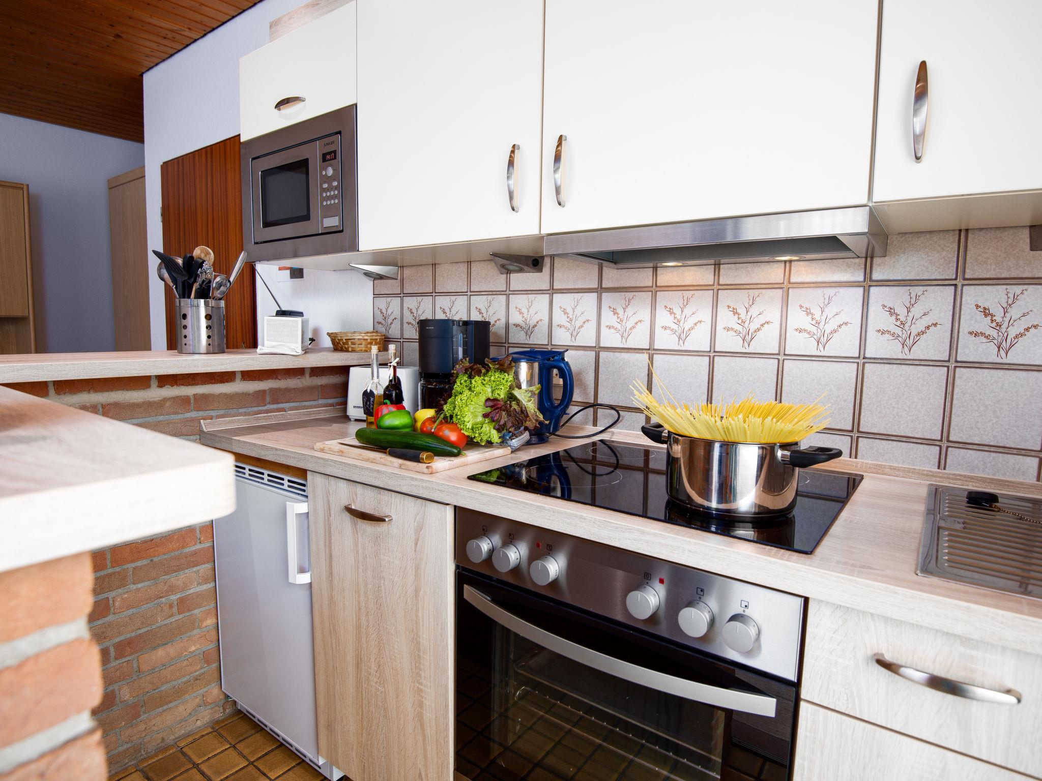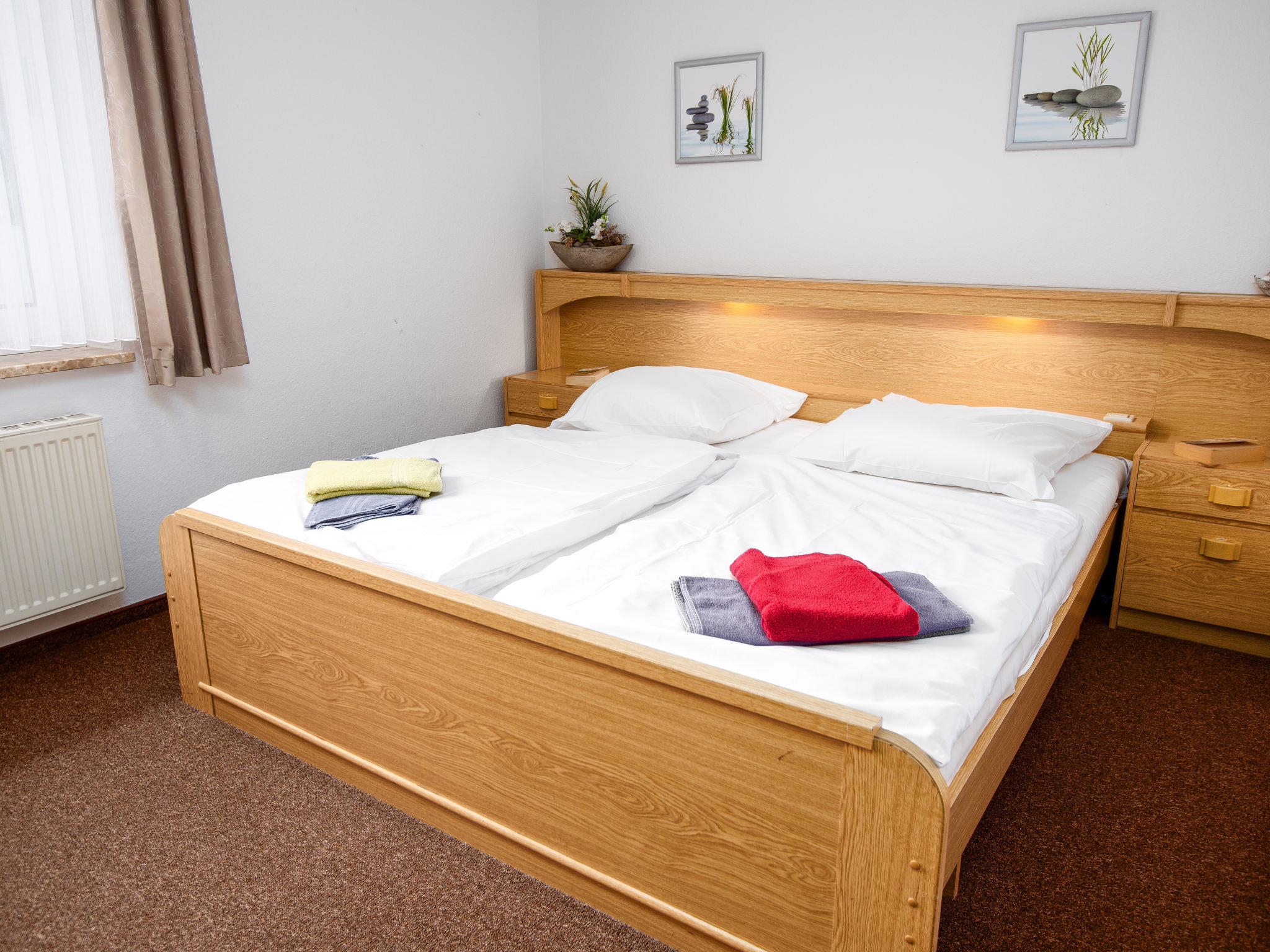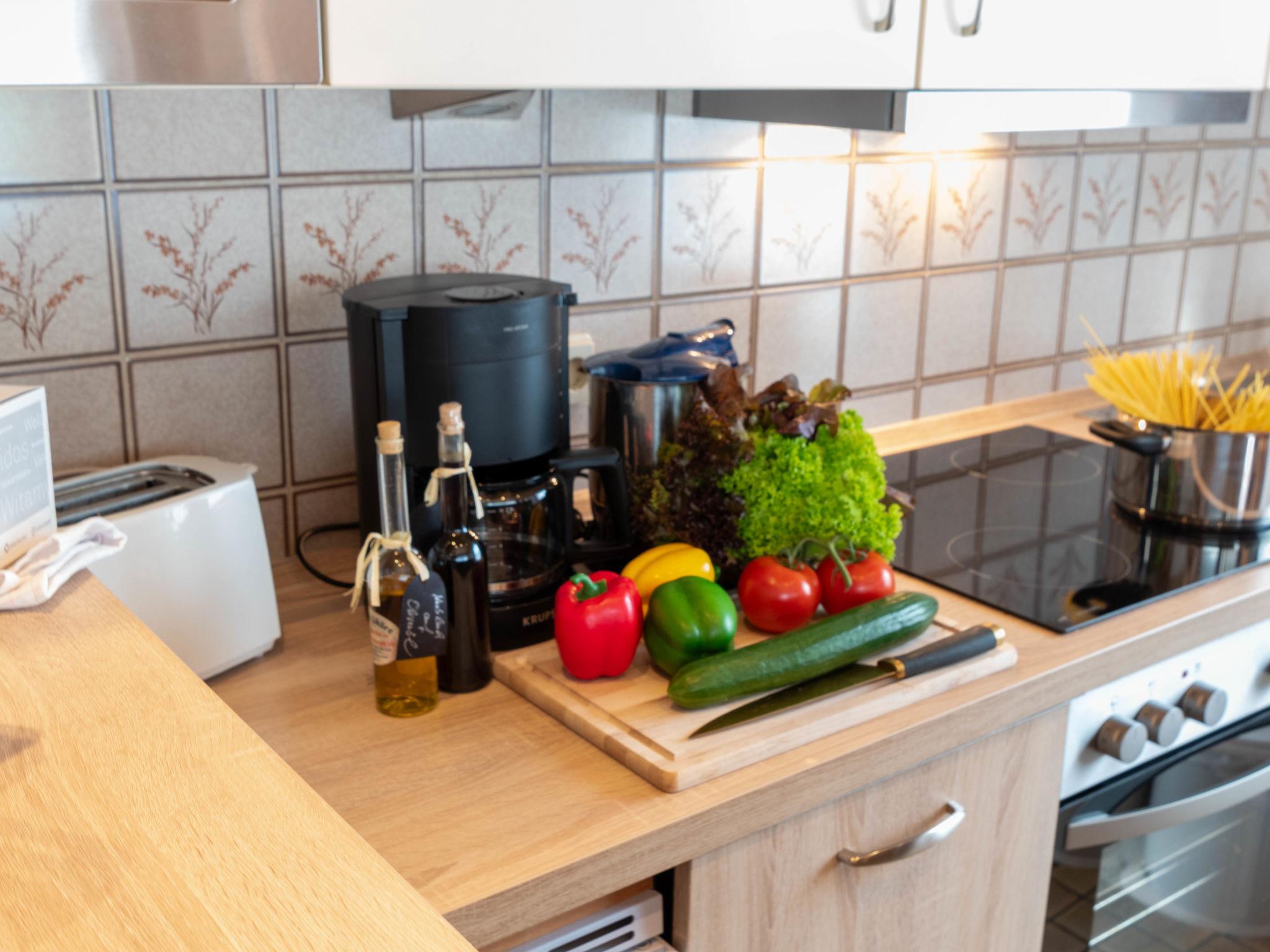2-room apartment 47 m2, on the ground floor. Living/dining room 23 m2 with 1 double sofabed and satellite TV (flat screen), radio and electric shutters. Exit to the terrace. 1 room 11 m2 with 1 double bed (2 x 90 cm, length 200 cm). Kitchenette (oven, dishwasher, 4 ceramic glass hob hotplates, toaster, kettle, microwave, electric coffee machine). Shower/WC. Terrace 8 m2. Terrace furniture. Facilities: children's high chair. Internet (WiFi, free). Please note: non-smokers only. Smoke alarm. DE11361