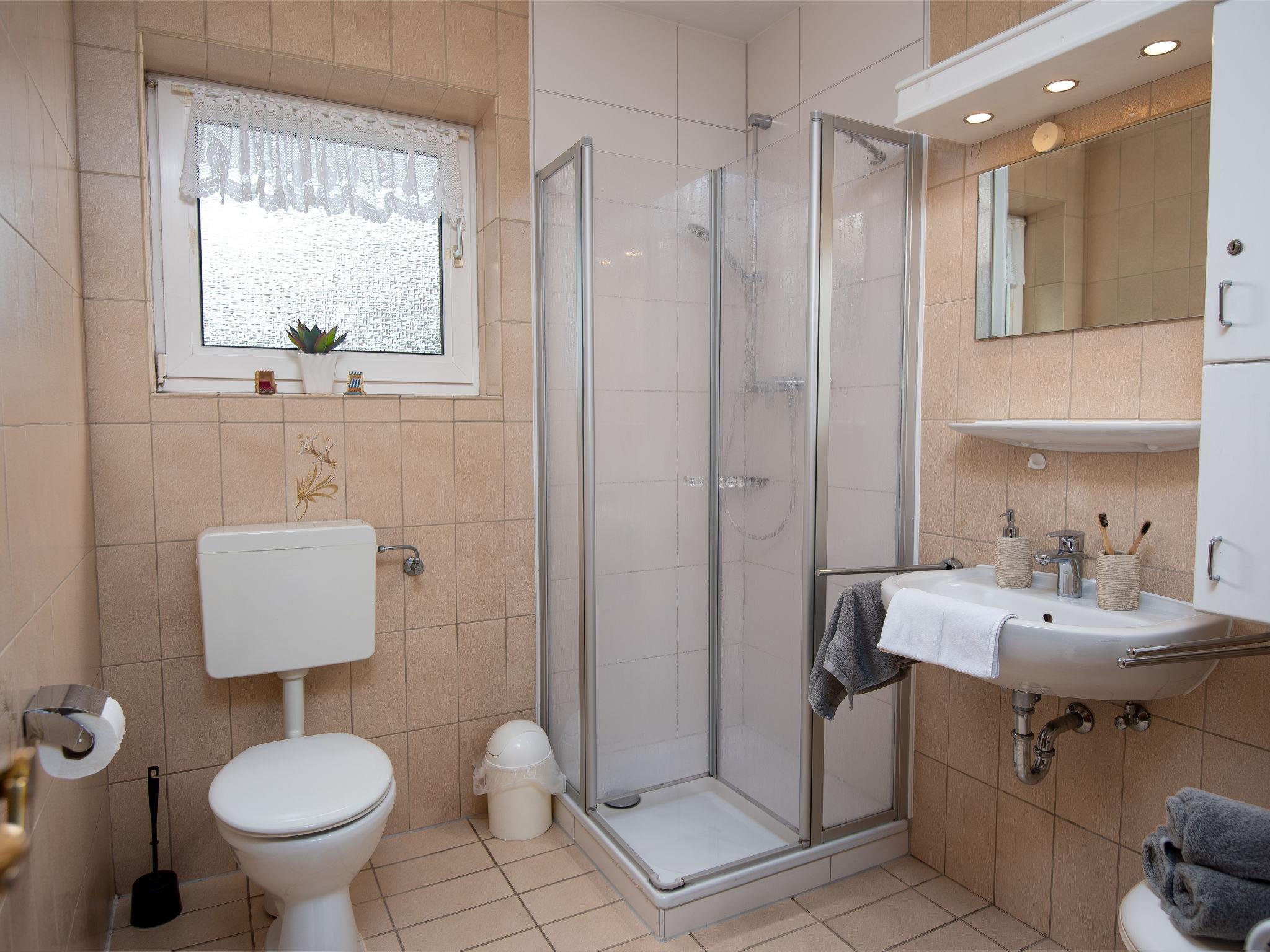 Apartment house "Am Koper Sand". In the resort, 200 m from the centre, 350 m from the sea, from the beach. In the house: central heating system, washing machine (for shared use, extra). Parking at the house. Supermarket 1.6 km, restaurant 200 m, bakery 200 m, café, bus stop 200 m, railway station 1.5 km, ferry 1.5 km, sandy beach 350 m, outdoor swimming pool 14 km, indoor swimming pool 500 m. Golf course (18 hole) 8 km, surf school 700 m, tennis 2.5 km.