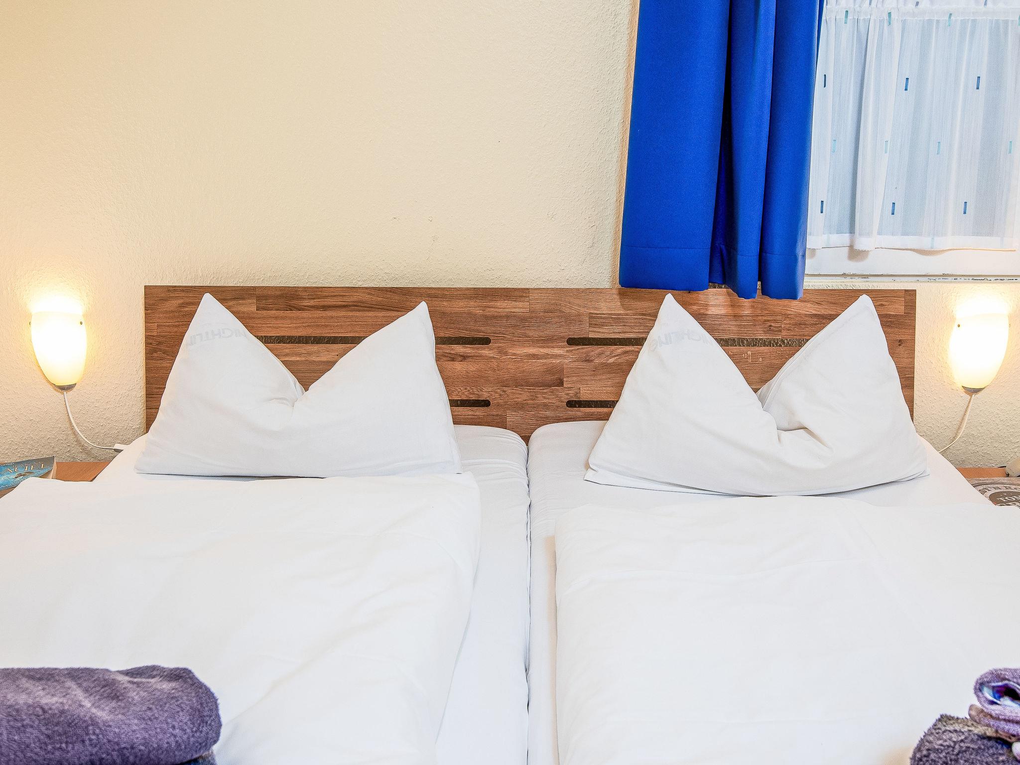 "Kiel", 4-room terraced house 55 m2, on the ground floor. Cosy furnishings: living/dining room with satellite TV (flat screen), hi-fi system and DVD. Exit to the terrace. 1 room with 1 double bed (2 x 90 cm, length 200 cm). 1 room with 1 x 2 bunk beds (90 cm, length 200 cm). 1 small room with 1 bed (90 cm, length 200 cm). Kitchenette (4 hot plates, dishwasher, toaster, kettle, electric coffee machine, combination microwave). Shower/WC. Terrace 12 m2, lawn. Terrace furniture. Facilities: children's high chair (extra). Please note: non-smokers only. Maximum 1 small pet/ dog allowed. Smoke alarm.