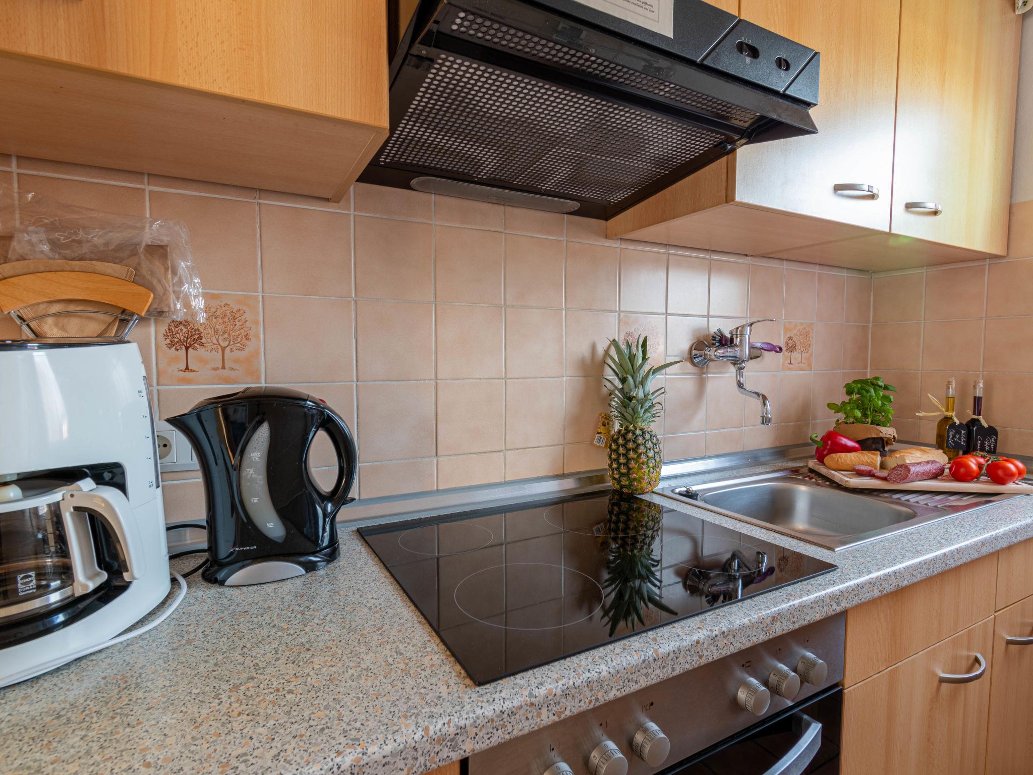 3-room terraced house 48 m2, on the ground floor. Cosy furnishings: living/dining room with satellite TV (flat screen), radio. Exit to the terrace. 1 room with 1 double bed (2 x 90 cm, length 200 cm). 1 room with 1 x 2 bunk beds (90 cm, length 200 cm). Kitchenette (oven, 4 ceramic glass hob hotplates, toaster, kettle, microwave, electric coffee machine). Shower/WC. Terrace furniture. Facilities: children's high chair (extra), hair dryer. Please note: non-smoking house. Smoke alarm.