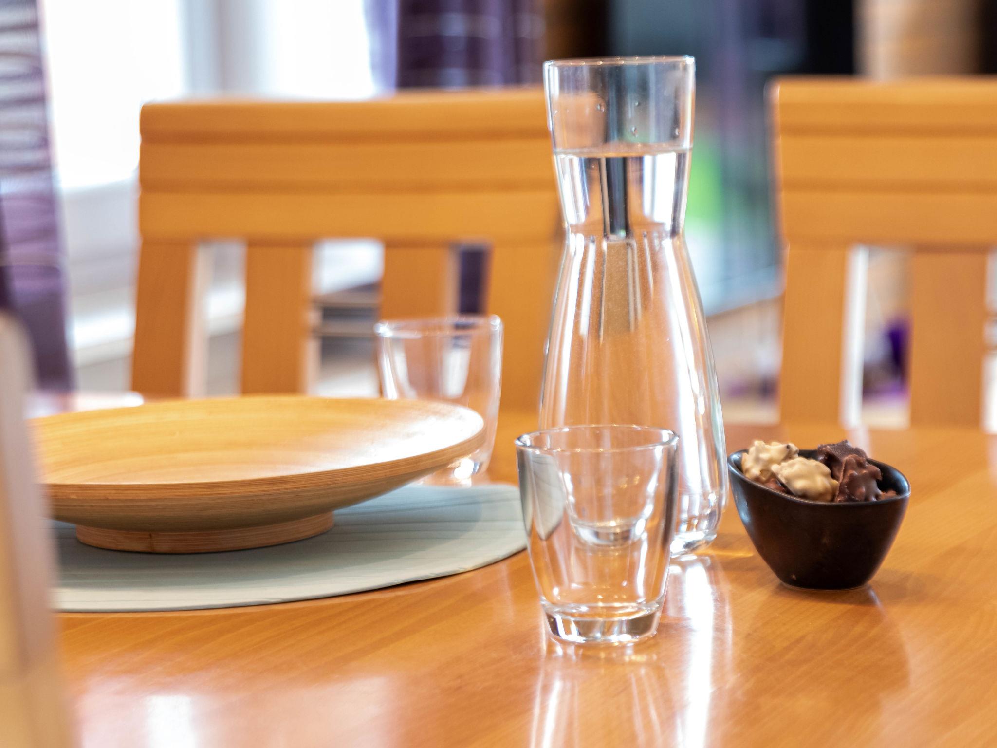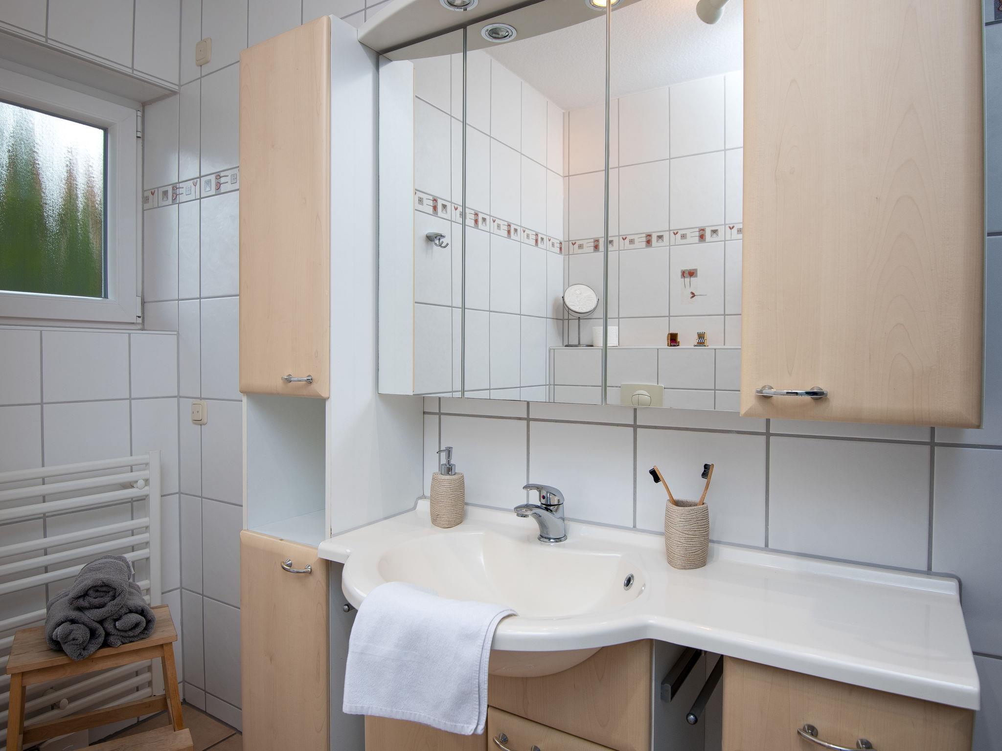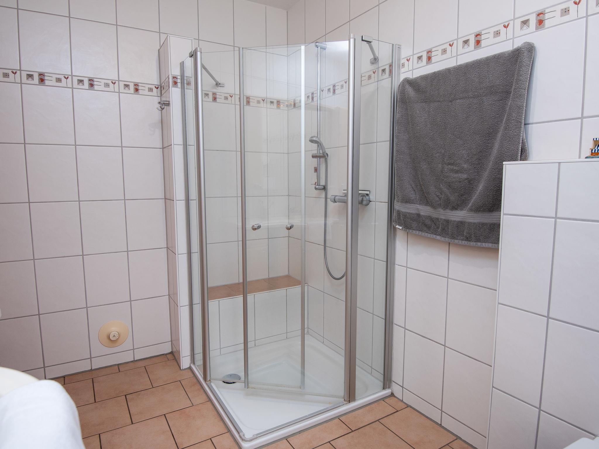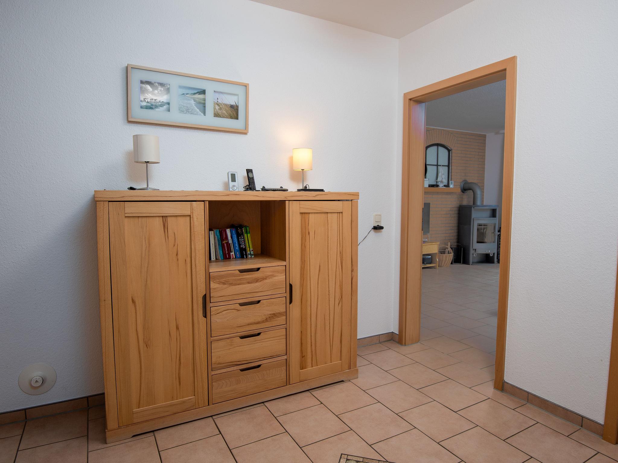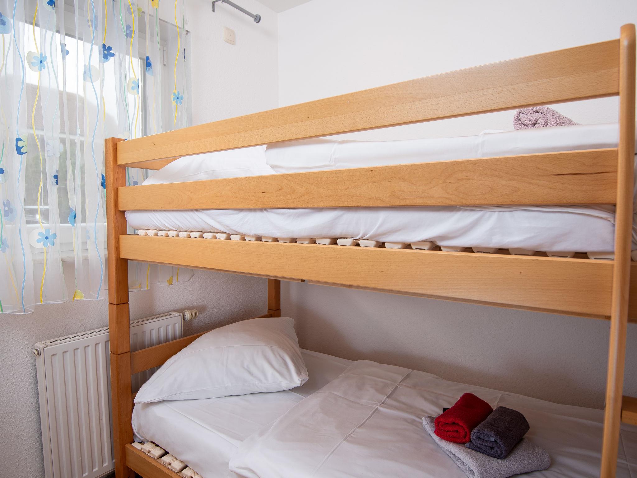 3-room apartment 65 m2, on the ground floor. Tasteful and cosy furnishings: living/dining room with satellite TV (flat screen), radio, DVD and electric shutters. Exit to the terrace. 1 room with 1 double bed (2 x 90 cm, length 200 cm). 1 room with 1 x 2 bunk beds (90 cm, length 200 cm). Kitchenette (oven, dishwasher, 4 ceramic glass hob hotplates, toaster, kettle, microwave, electric coffee machine, Capsules for coffee machine (Senseo) extra). Shower/WC, sep. WC. Terrace furniture, barbecue (portable). Facilities: washing machine, children's high chair (extra). Internet (WiFi, free). Please note: non-smokers only. Smoke alarm.