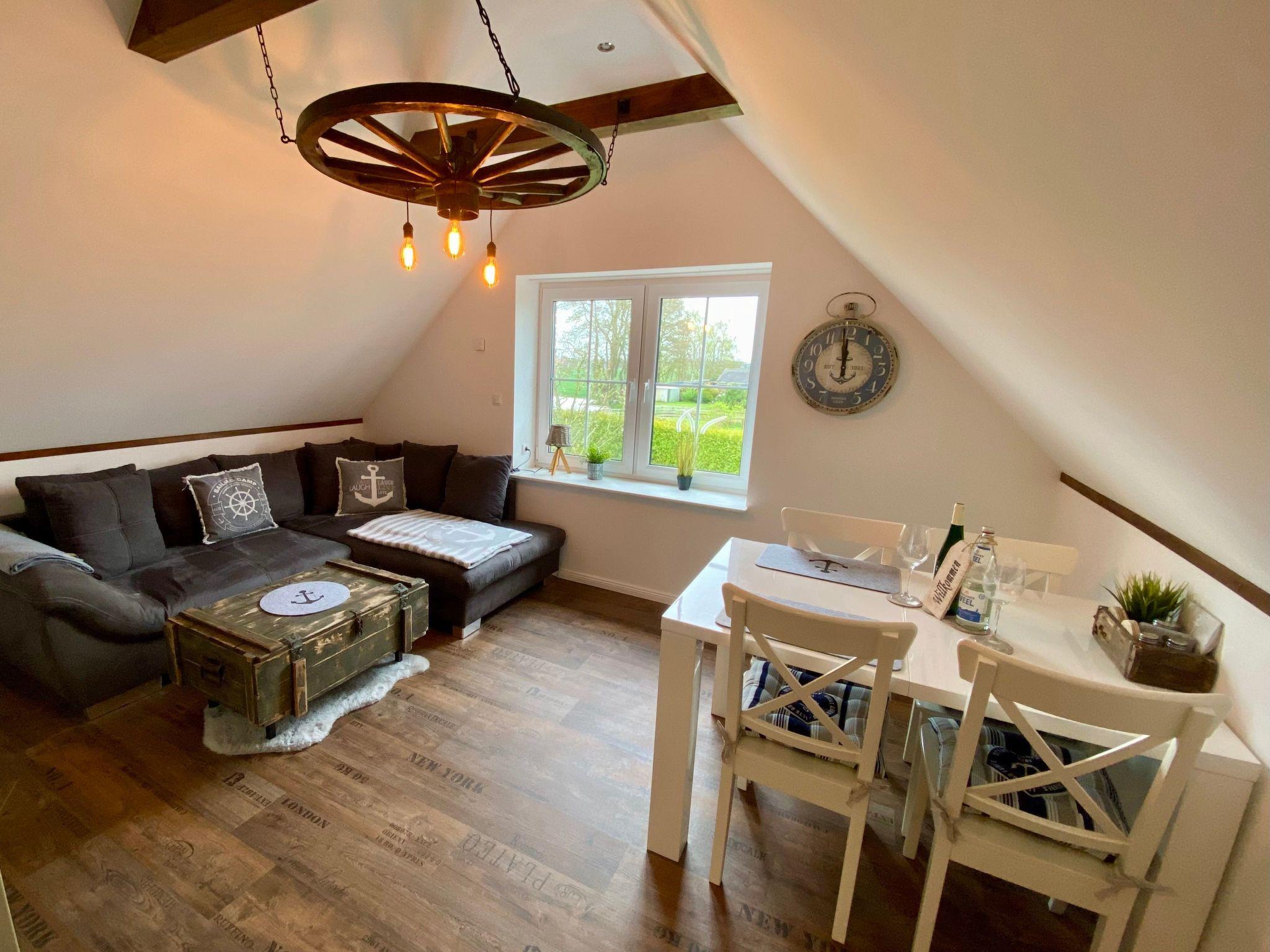 Modern and cosy holiday flat AHOI in Dithmarschen, Mühlenstraße 20 in 25764 Norddeich. This lovingly furnished attic flat not only offers cosiness and comfort, but also a range of amenities that will make your stay unforgettable.