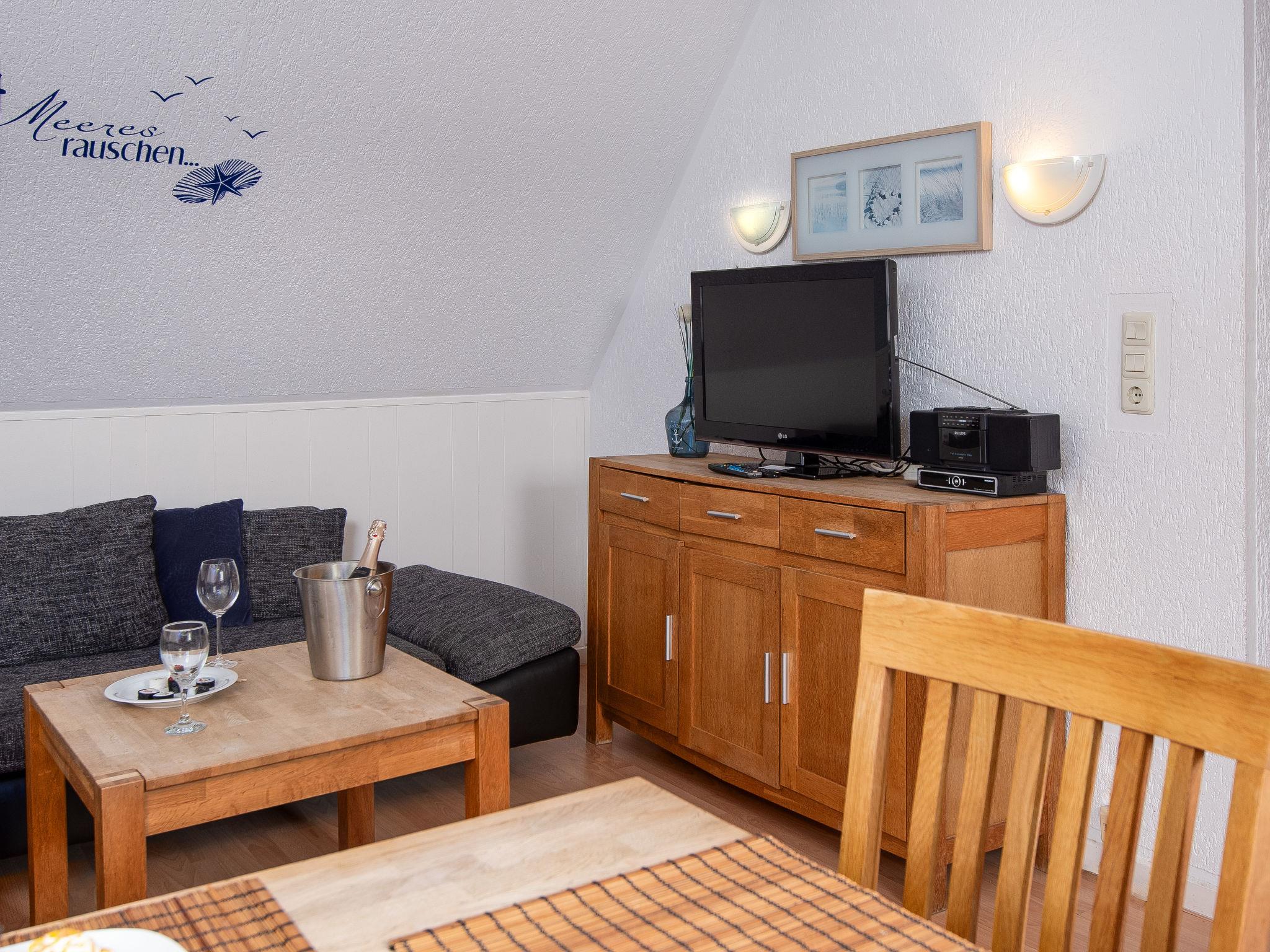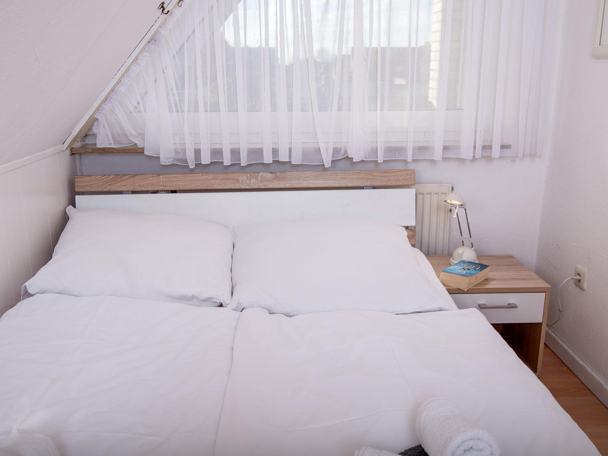 "Schwalbennest III", 4-room apartment 70 m2 on 1st floor. With sloping ceilings, very simple furnishings: living/dining room 17 m2 with digital TV, flat screen and radio. 1 room 10 m2 with 1 double bed (2 x 80 cm, length 200 cm). 1 room 6 m2 with 1 french bed (140 cm, length 200 cm). 1 room 7 m2 with 1 french bed (1 x 140 cm, length 200 cm). Kitchenette (oven, dishwasher, 4 ceramic glass hob hotplates, toaster, kettle, microwave, electric coffee machine). Shower/WC, sep. WC. Facilities: children's high chair (extra). Parking at 20 m. Please note: fridge without freezer, non-smokers only. Maximum 2 small pets/ dogs allowed. Smoke alarm. Patio on the ground floor.