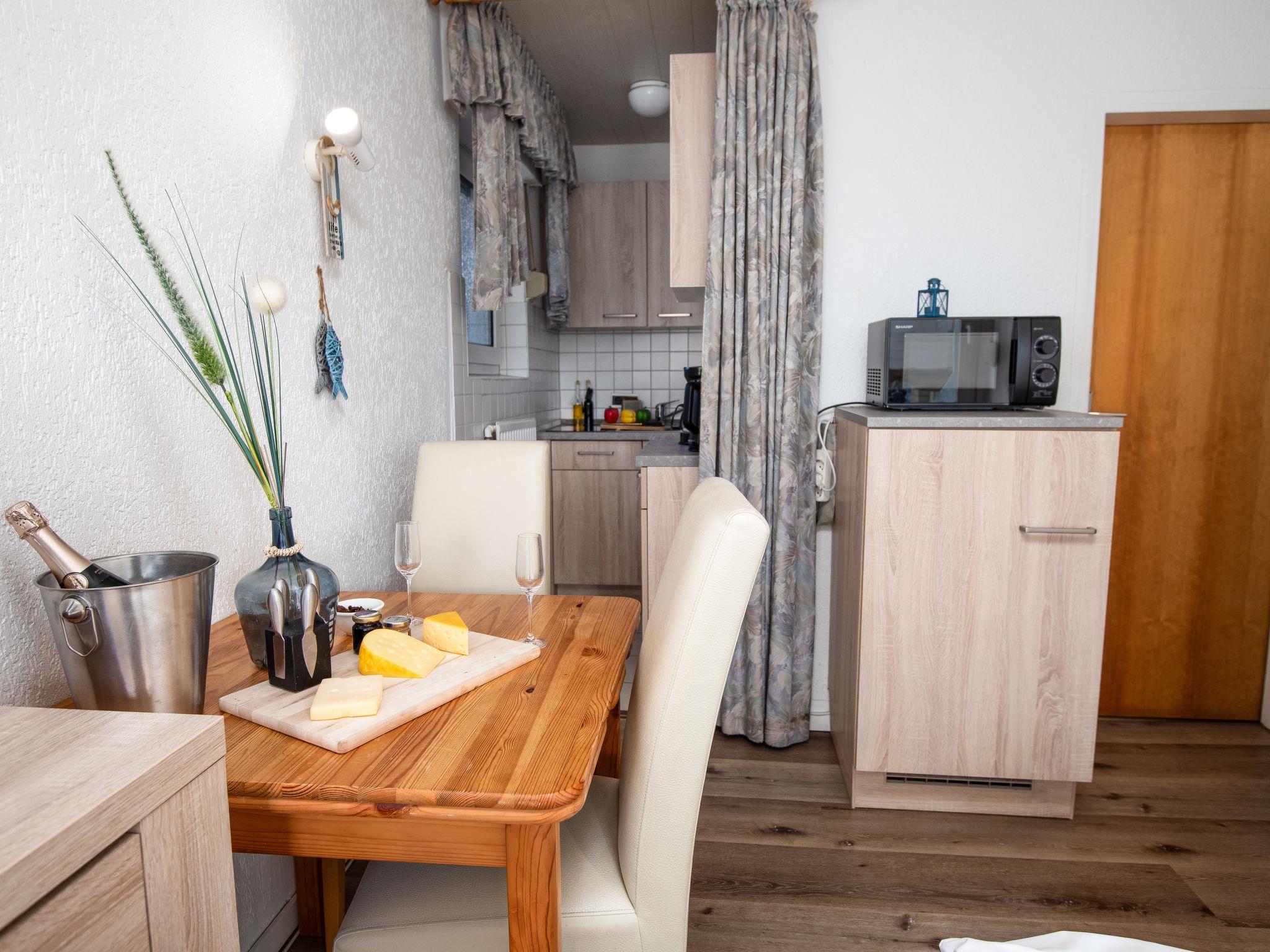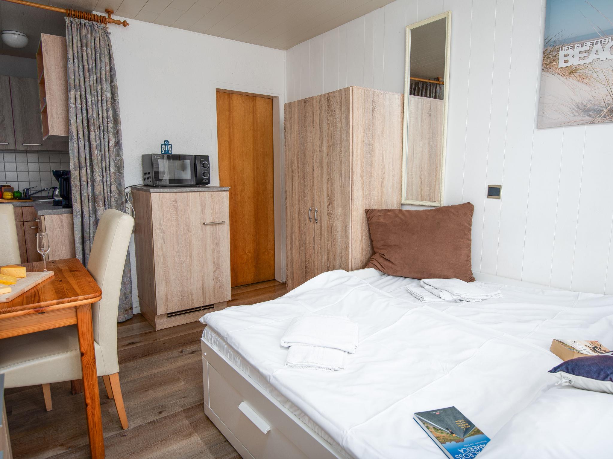 "Schwalbennest V", 1-room apartment 15 m2, on the ground floor. Very simple furnishings: living/sleeping room 10 m2 with 1 sofabed (120 cm, length 190 cm), digital TV and radio. Small kitchenette 2 m2 (2 hot plates, dishwasher, toaster, kettle, microwave, electric coffee machine). Shower/WC. Sitting area. Facilities: children's high chair (extra). Parking at 20 m. Please note: fridge without freezer, non-smokers only. Maximum 1 small pet/ dog allowed. Smoke alarm. Il divano letto è un divano letto in soggiorno. Non c'è una camera da letto. Questo appartamento molto piccolo non è adatto ad anziani o persone con mobilità ridotta.