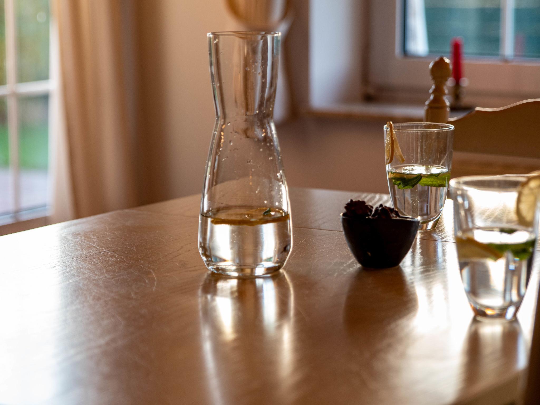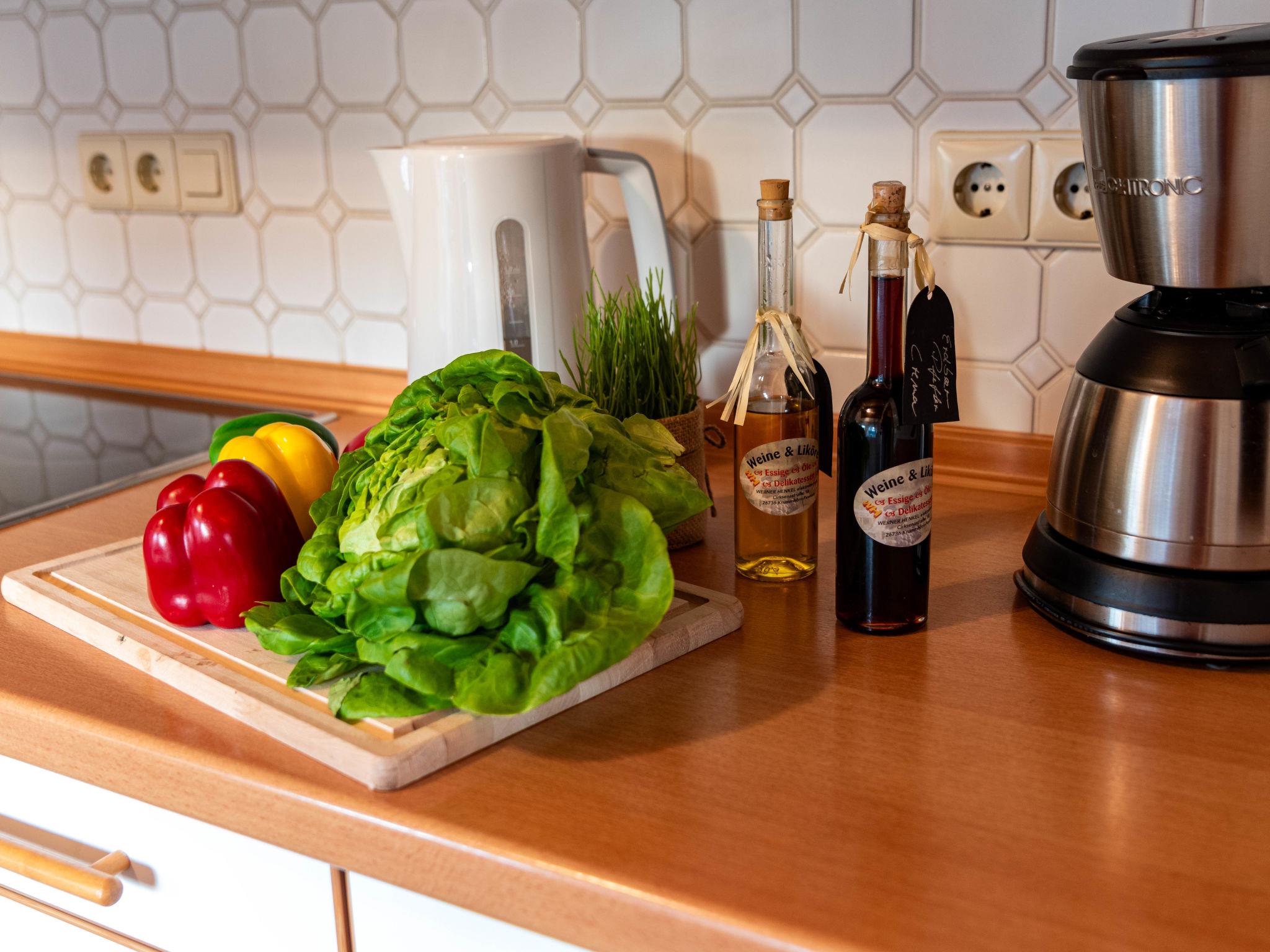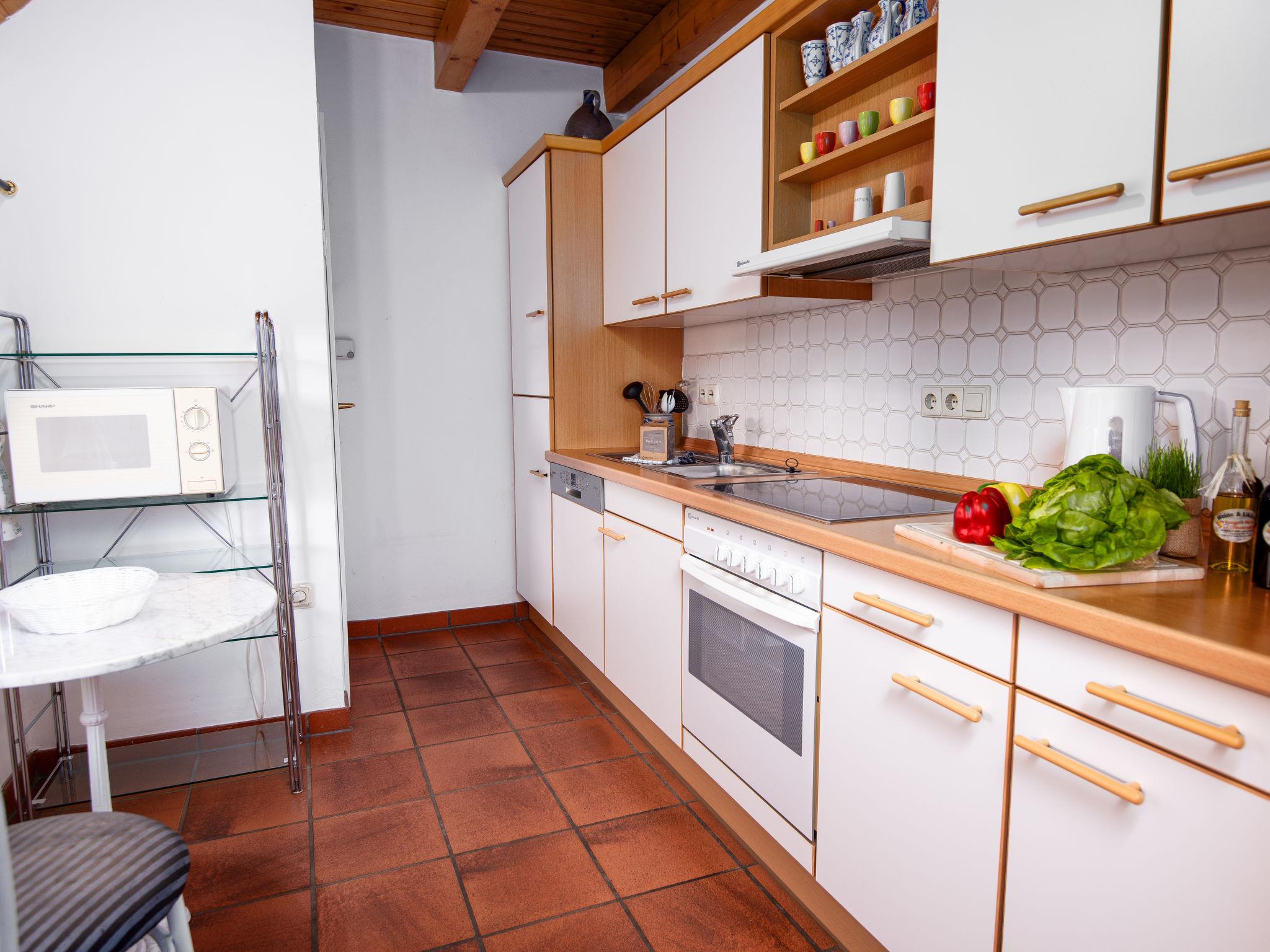 "Sonnenschein", 4-room house 75 m2 on 2 levels, on the ground floor. Tasteful furnishings: living room 18 m2 with open-hearth fireplace and satellite TV (flat screen), hi-fi system and DVD. Open dining room. 1 room 11 m2 with 1 double bed (2 x 90 cm, length 200 cm). Kitchen (oven, dishwasher, 4 ceramic glass hob hotplates, toaster, kettle, microwave, freezer, electric coffee machine). Sep. WC. Upper floor: (spiral staircase), 1 room 22 m2, with sloping ceilings with 1 double bed (2 x 90 cm, length 200 cm). Bath/shower/WC, double hand-basin. Terrace 20 m2. Terrace furniture. Facilities: children's high chair (extra). Please note: non-smoking house. Maximum 1 small pet/ dog allowed. Smoke alarm.