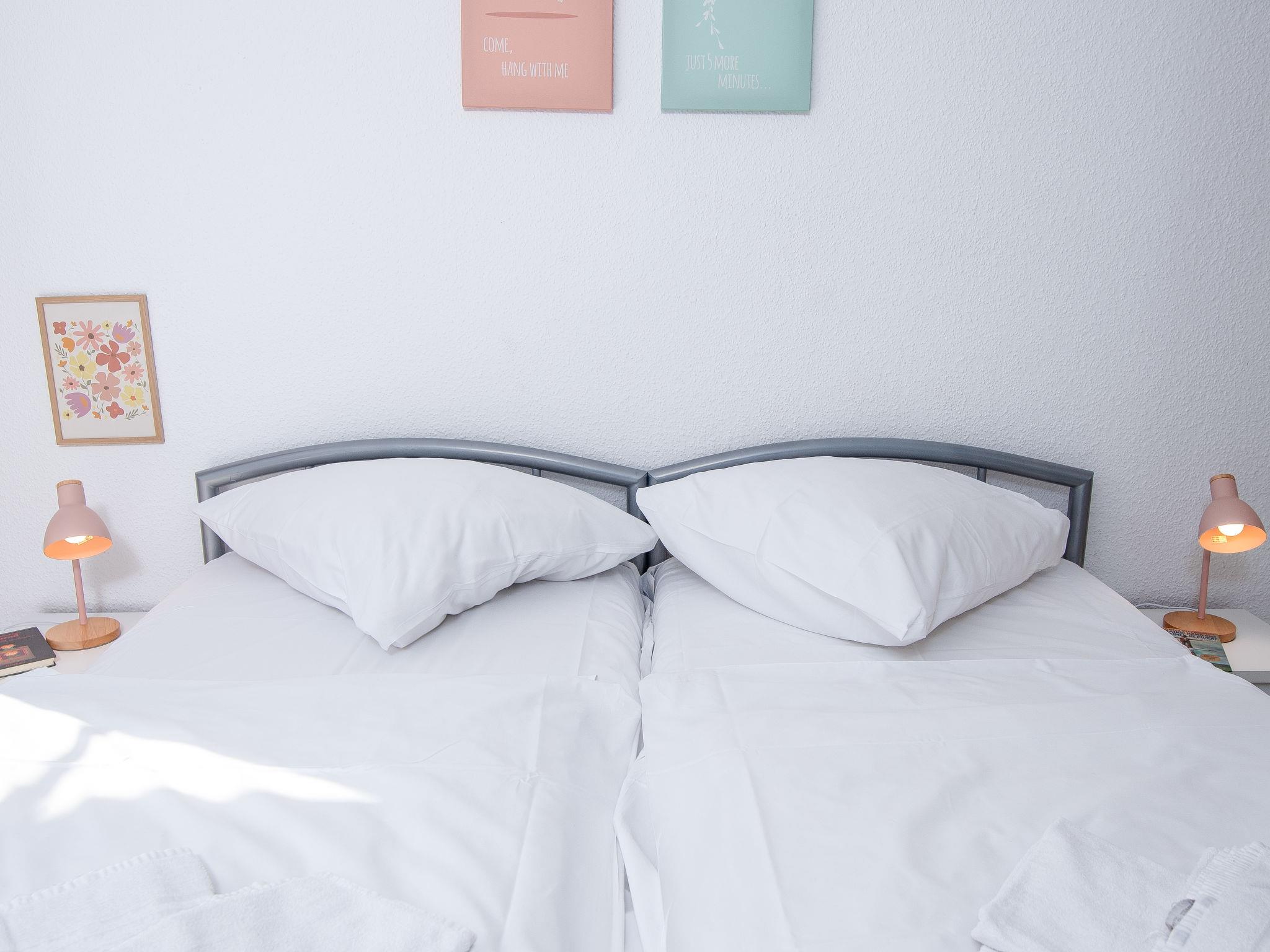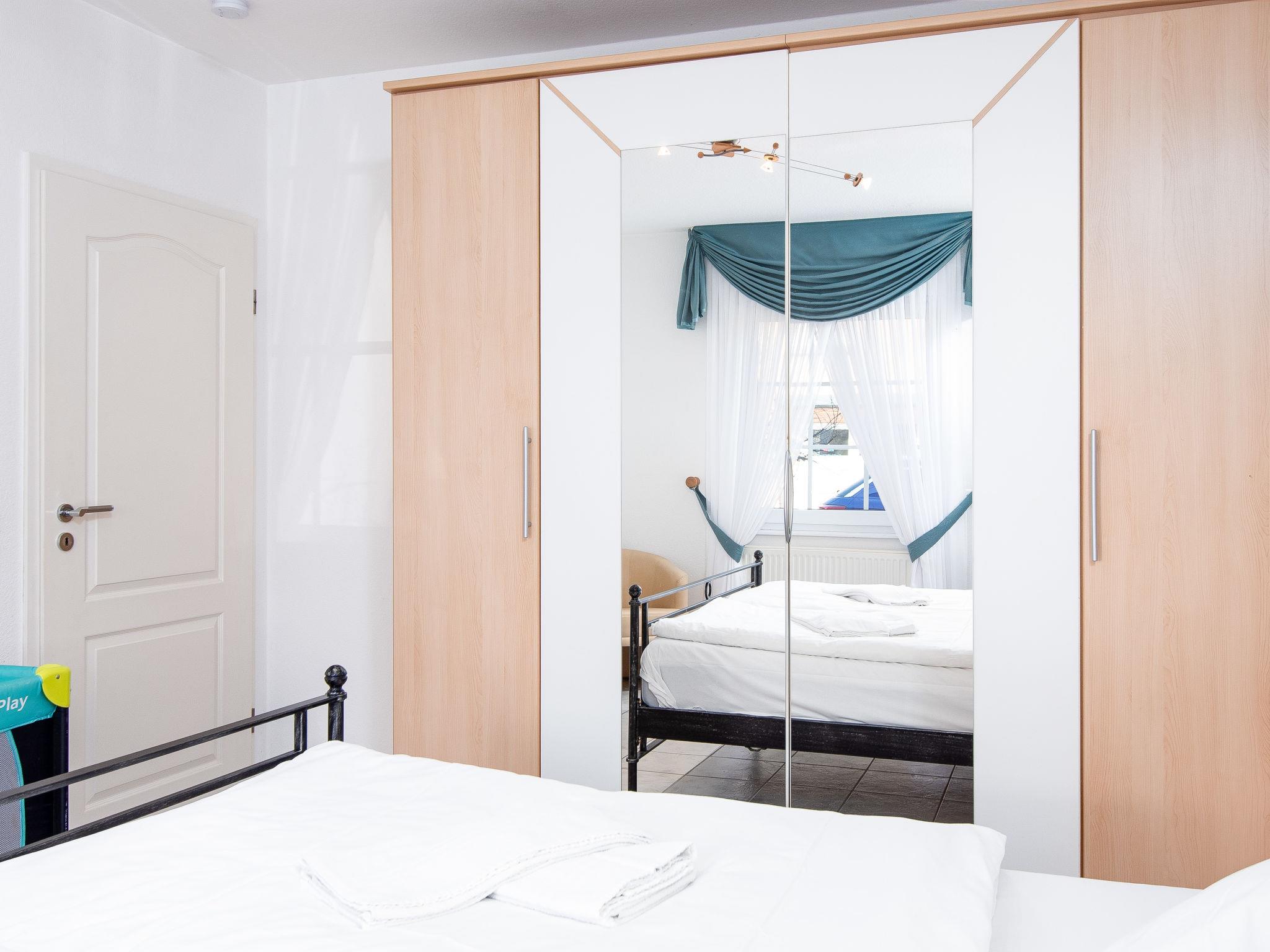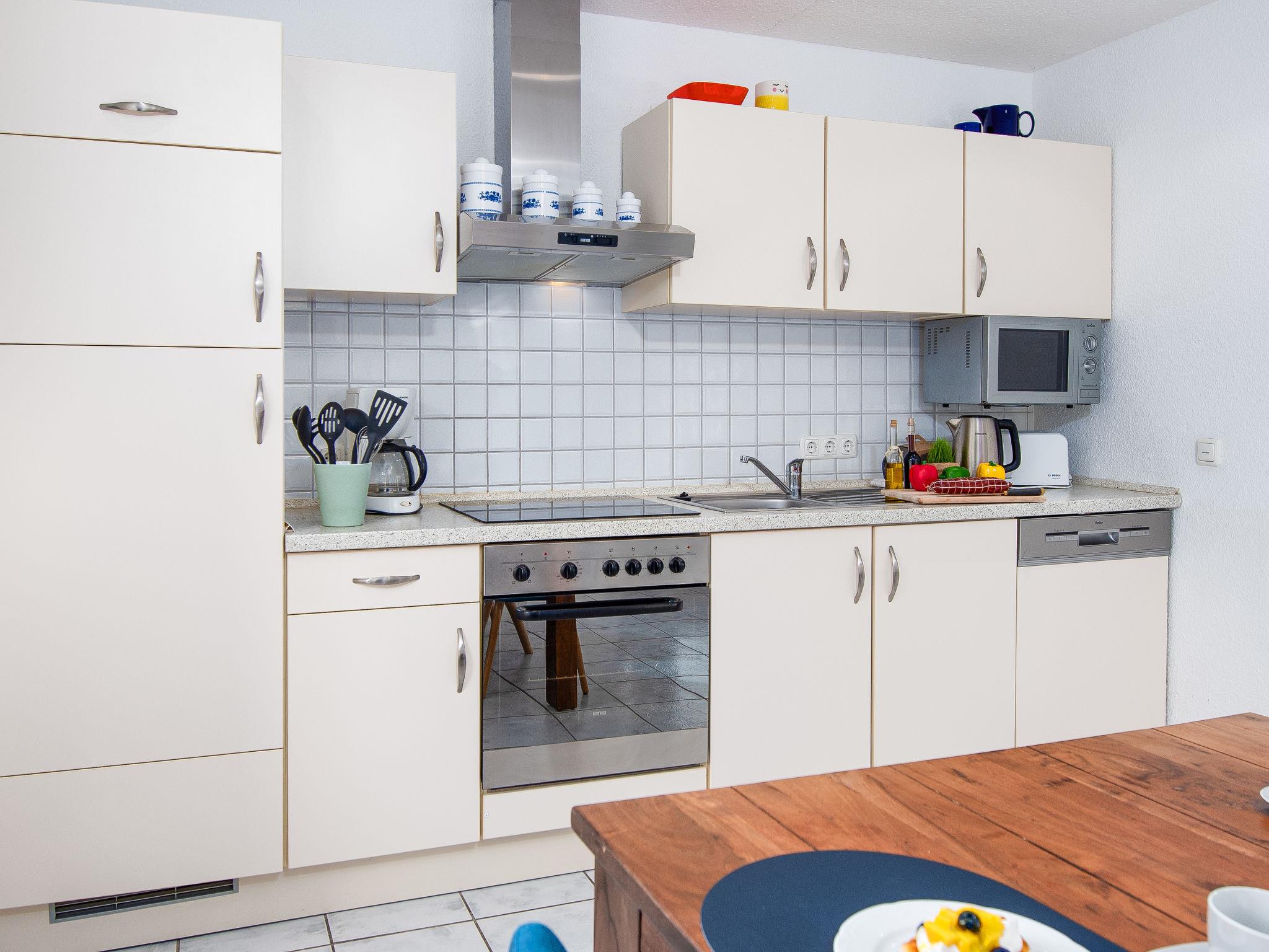 "Spiekeroog", 3-room apartment 80 m2, on the ground floor. Modern and tasteful furnishings: living/dining room 35 m2 with satellite TV (flat screen), hi-fi system, DVD and electric shutters. 1 room 13 m2 with 1 double bed (2 x 90 cm, length 200 cm). 1 room 13 m2 with 2 beds (90 cm, length 200 cm). Exit to the terrace. Open kitchen (oven, dishwasher, 4 ceramic glass hob hotplates, toaster, kettle, microwave, freezer, electric coffee machine). Bath/shower/WC. Terrace 12 m2. Terrace furniture. Facilities: children's high chair (extra). Internet (WiFi, free). Please note: non-smokers only. Smoke alarm.