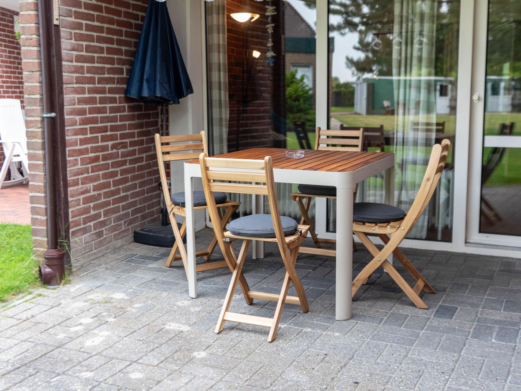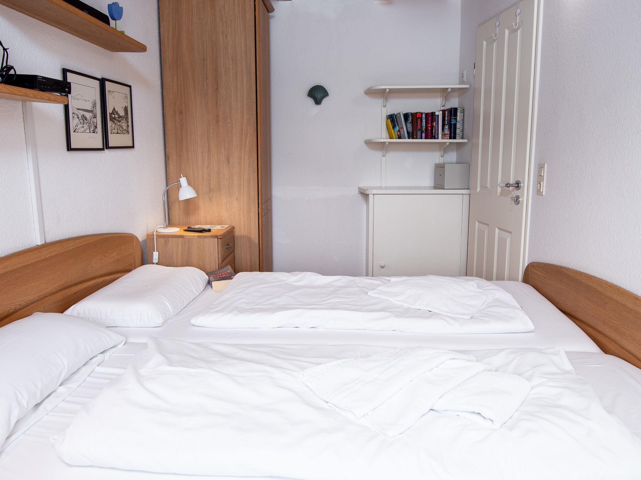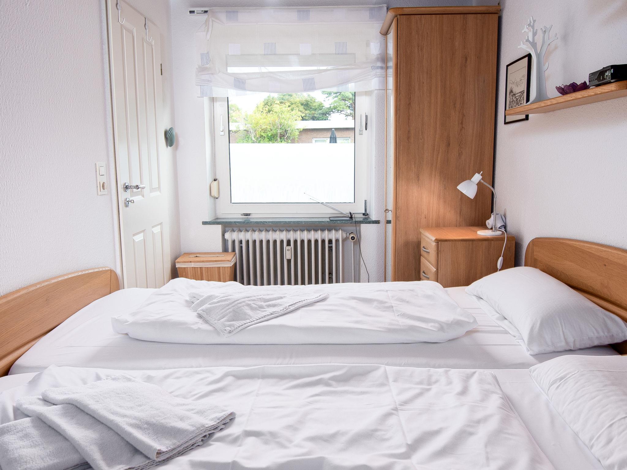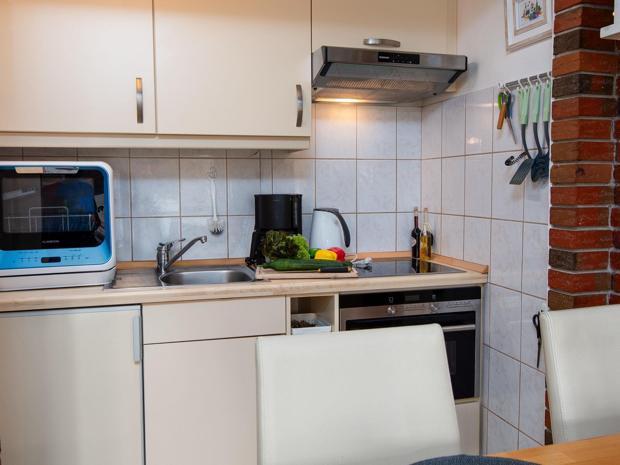 "Klaffmuschel", 3-room terraced house 50 m2, on the ground floor. Beautiful and tasteful furnishings: living/dining room 18 m2 with satellite TV (flat screen), CD-player and DVD. Exit to the terrace. 1 room 8 m2 with 1 double bed (2 x 90 cm, length 200 cm). 1 room 7 m2 with 2 beds (90 cm, length 200 cm). Kitchenette (oven, dishwasher, 4 ceramic glass hob hotplates, toaster, kettle, electric coffee machine, Capsules for coffee machine (Nespresso Vertuo) extra). Shower/WC. Terrace 8 m2. Terrace furniture. Facilities: children's high chair (extra). Internet (WiFi, free). Please note: non-smoking house. Smoke alarm. The double room has a smart projector with TV function.