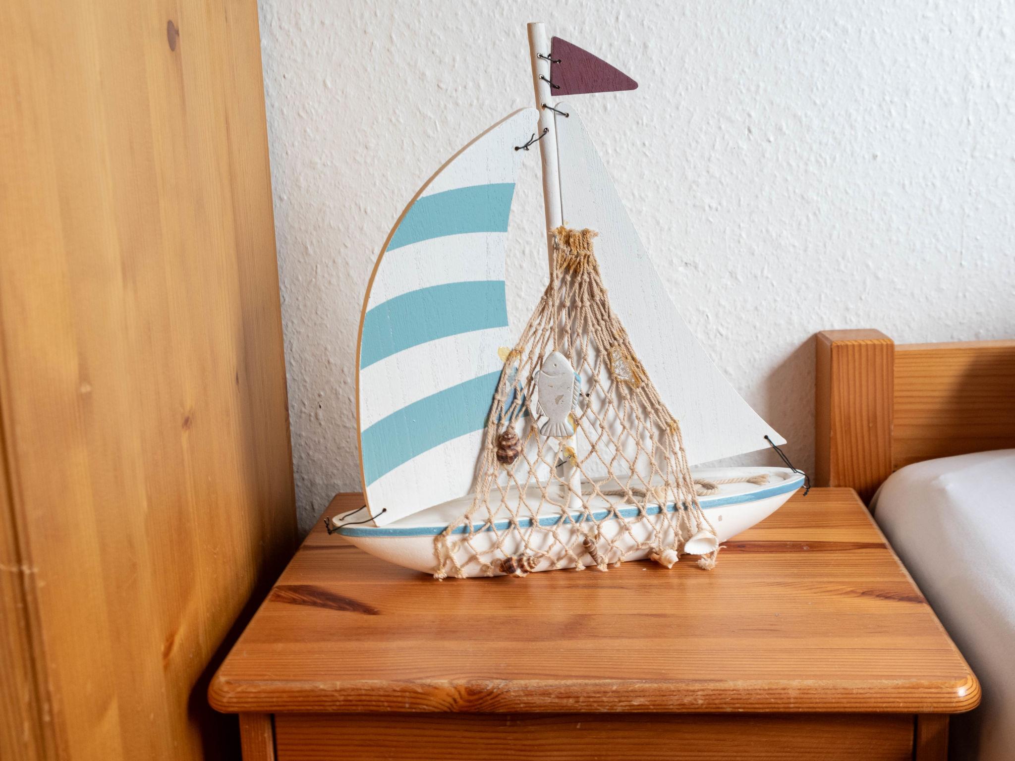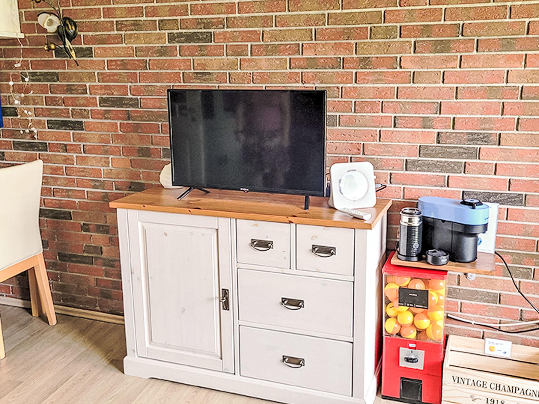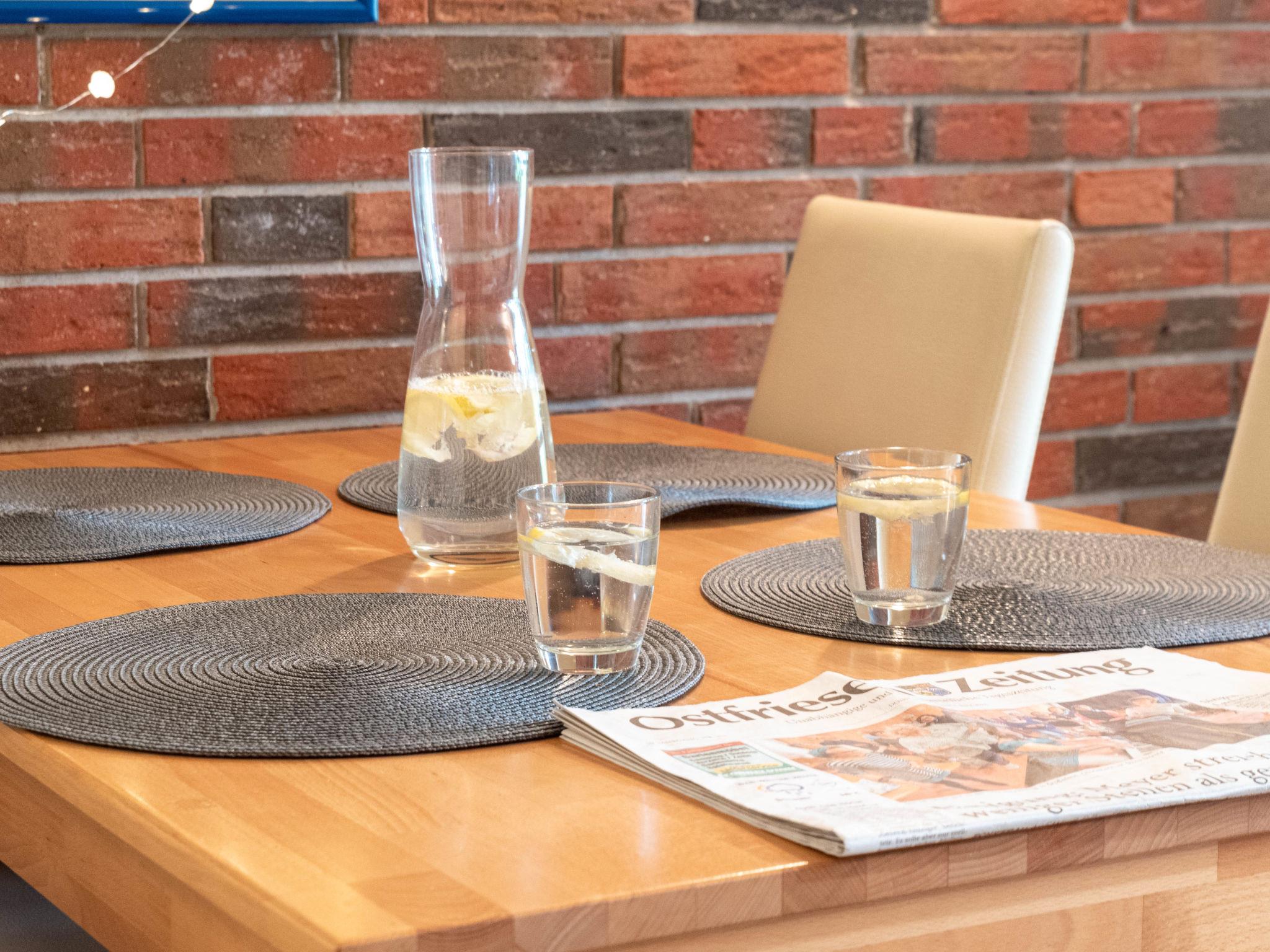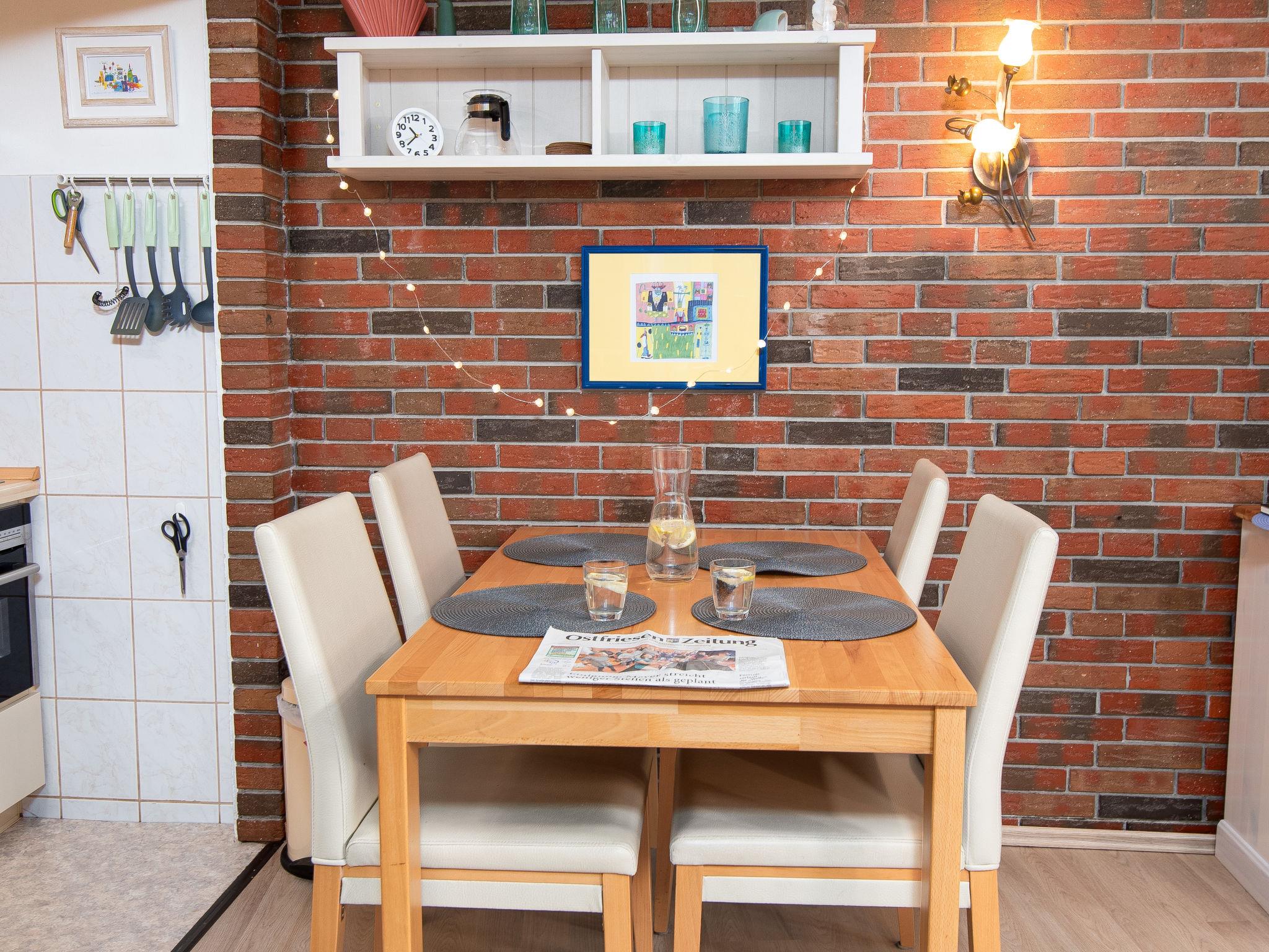 "Klaffmuschel", 3-room terraced house 50 m2, on the ground floor. Beautiful and tasteful furnishings: living/dining room 18 m2 with satellite TV (flat screen), CD-player and DVD. Exit to the terrace. 1 room 8 m2 with 1 double bed (2 x 90 cm, length 200 cm). 1 room 7 m2 with 2 beds (90 cm, length 200 cm). Kitchenette (oven, dishwasher, 4 ceramic glass hob hotplates, toaster, kettle, electric coffee machine, Capsules for coffee machine (Nespresso Vertuo) extra). Shower/WC. Terrace 8 m2. Terrace furniture. Facilities: children's high chair (extra). Internet (WiFi, free). Please note: non-smoking house. Smoke alarm. The double room has a smart projector with TV function.