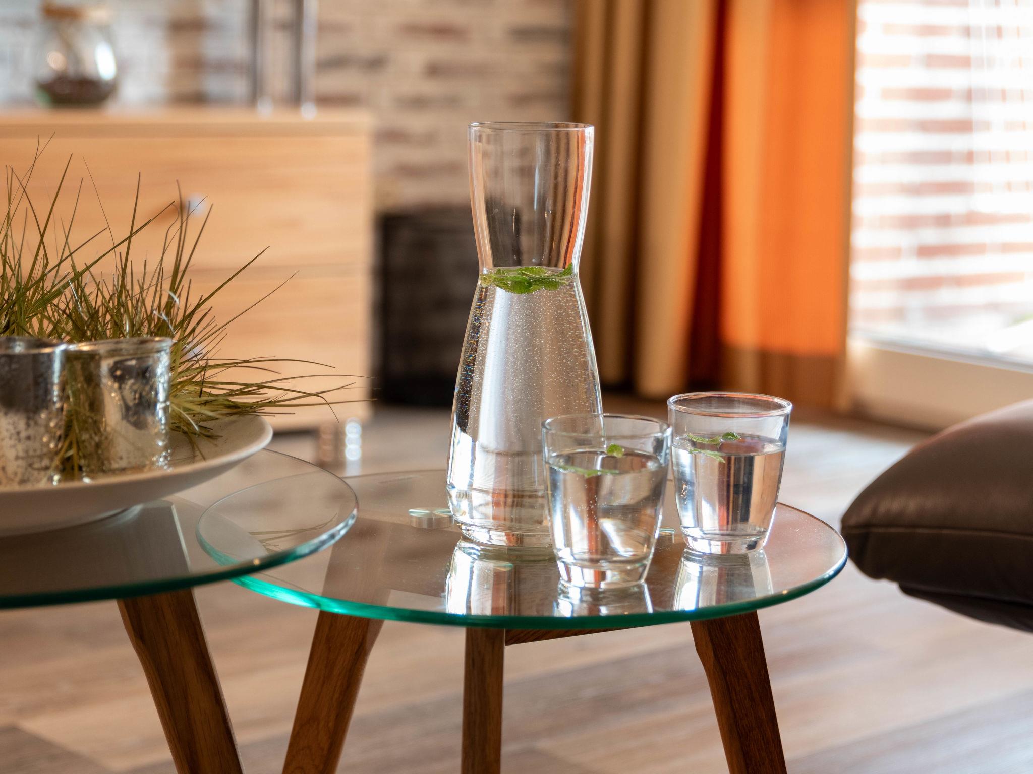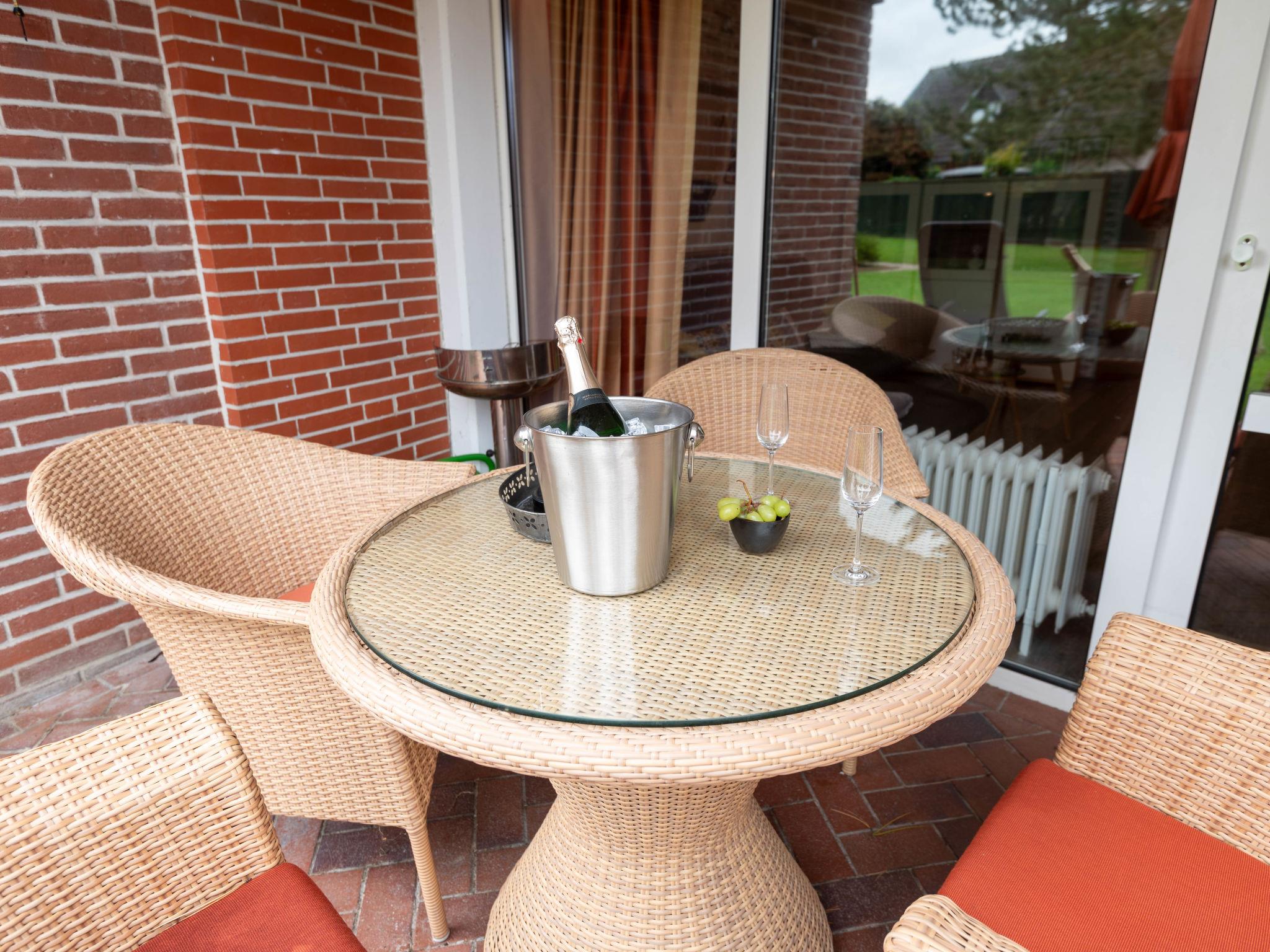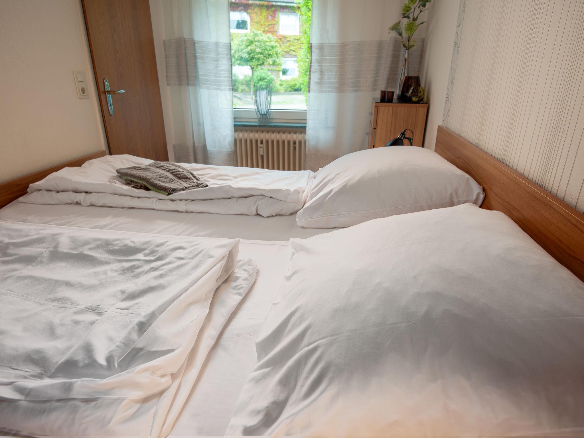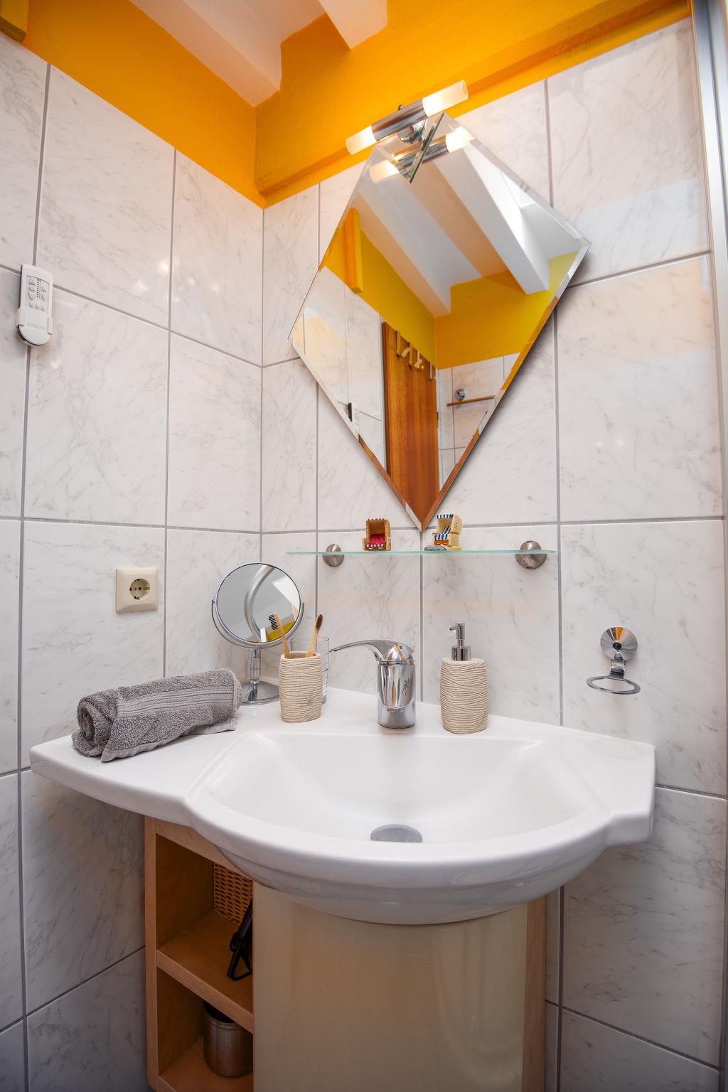 "Samtmuschel", 3-room terraced house 54 m2, on the ground floor. Beautiful furnishings: living/dining room 16 m2 with satellite TV (flat screen), hi-fi system. Exit to the terrace. 1 room 8 m2 with 1 double bed (2 x 90 cm, length 200 cm). 1 room 7 m2 with 2 beds (90 cm, length 190 cm). Kitchenette (4 ceramic glass hob hotplates, toaster, kettle, electric coffee machine) with dining table. Shower/WC. Terrace 11 m2. Terrace furniture, barbecue (portable). Facilities: children's high chair (extra). Internet (WiFi, free). Please note: fridge without freezer, non-smoking house. Smoke alarm.
