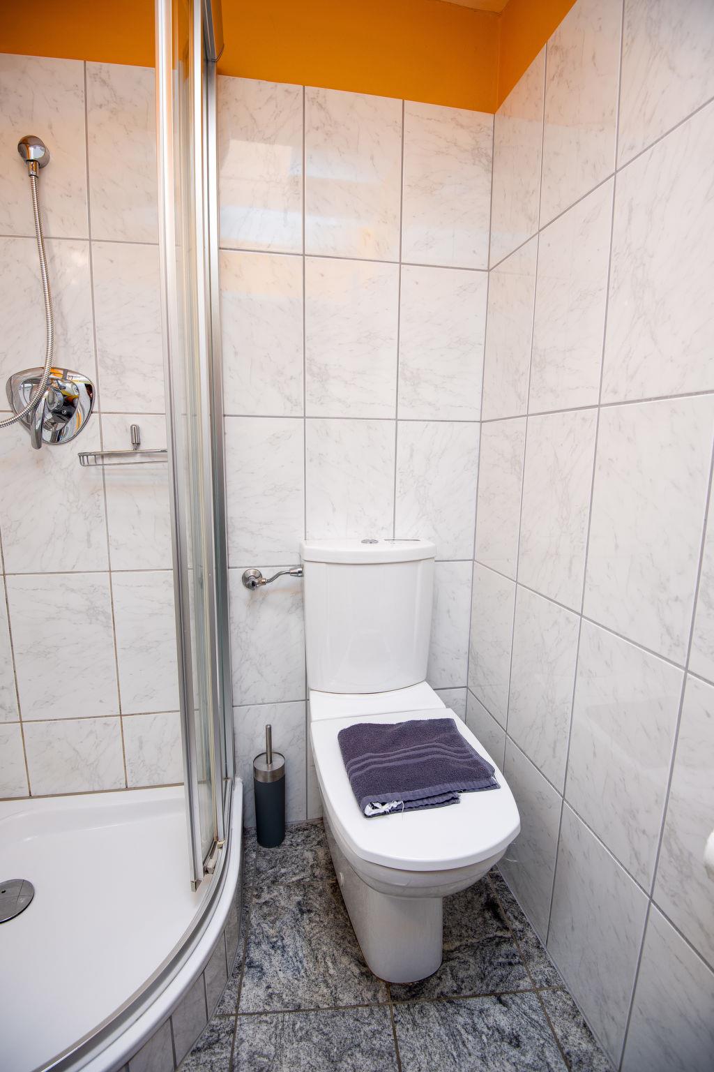 Terraced house "Muschelhaus". In the resort, 800 m from the sea, 800 m from the beach, in a cul-de-sac. For shared use: garden with lawn. In the house: central heating system, washing machine, tumble dryer (for shared use, extra). Parking at the house. Supermarket, restaurant 800 m, bakery, bus stop 450 m, railway station "Norddeich" 1.8 km, ferry 2 km, sandy beach 800 m, outdoor swimming pool 14 km, indoor swimming pool 850 m. Golf course (18 hole) 8 km, surf school 1 km, tennis 2 km, minigolf 800 m.